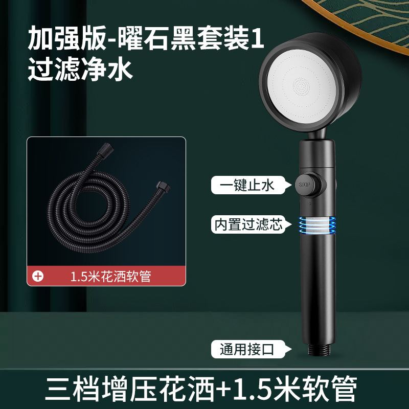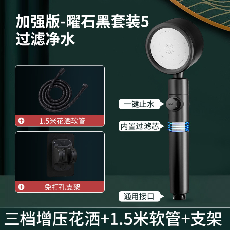 • [블랙] 라이스프레이 3단 슈퍼차저 필터샤워 + 1.5m샤워파이프 + 샤워브라켓
