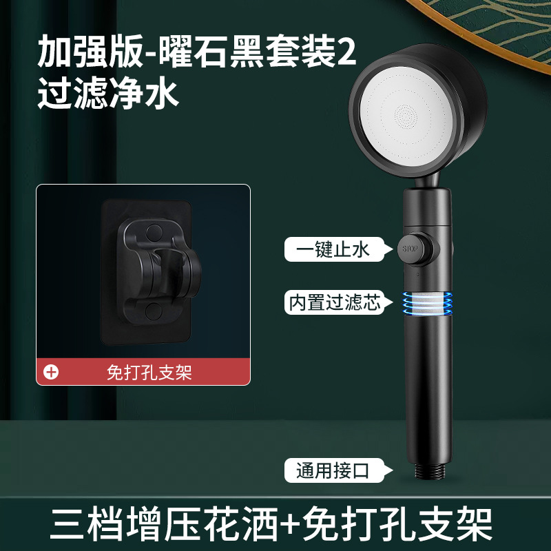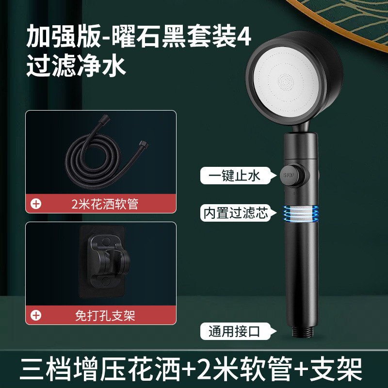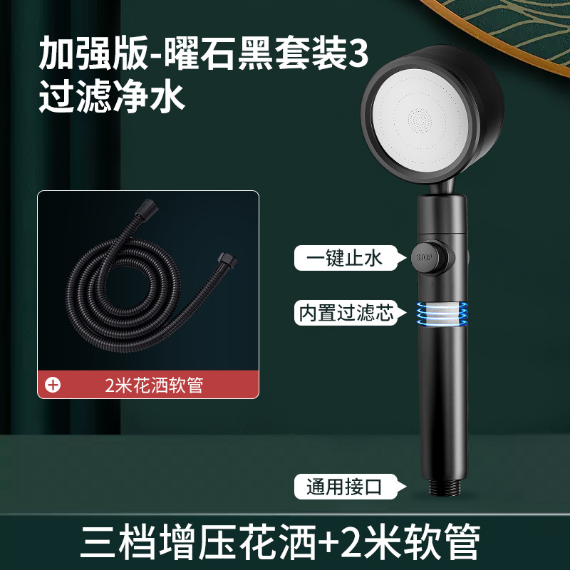 • [블랙] 라이스프레이 3단 슈퍼차저 필터샤워 + 2m샤워파이프 + 샤워브라켓