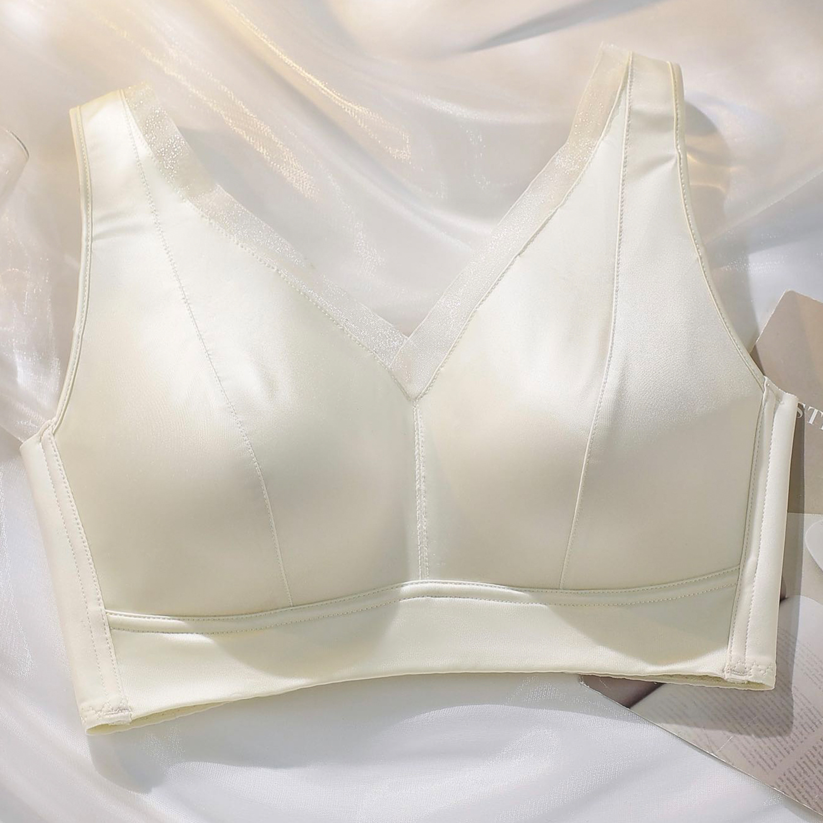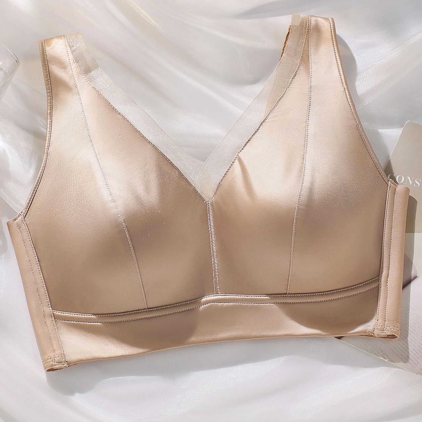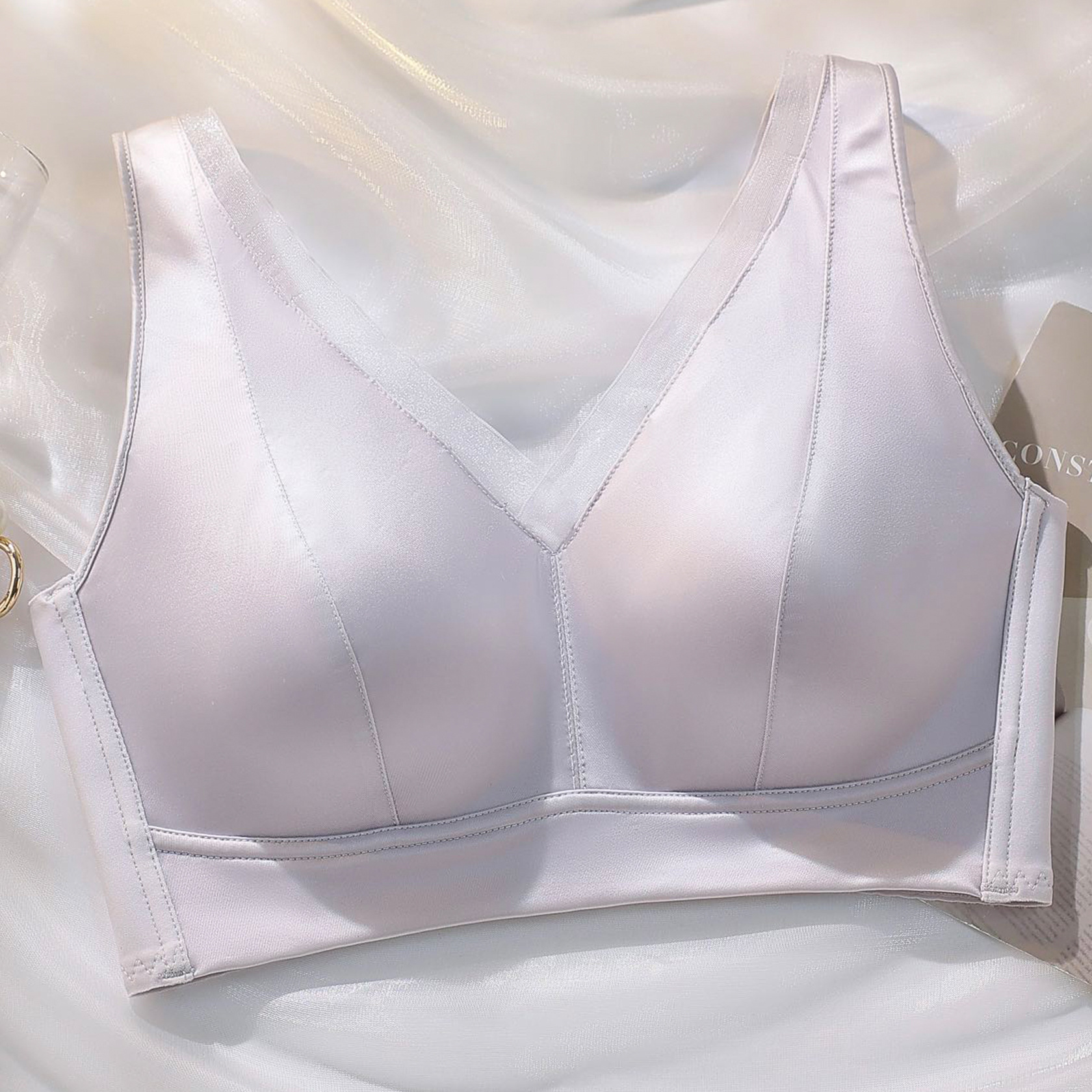 스틸 링이없는 새틴 V 넥 속옷 부드러운 지원 사이드 풀업 비 마킹 속옷 편안한 통기성 속옷 여성용스토어 가기