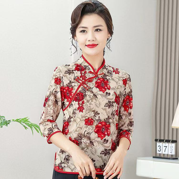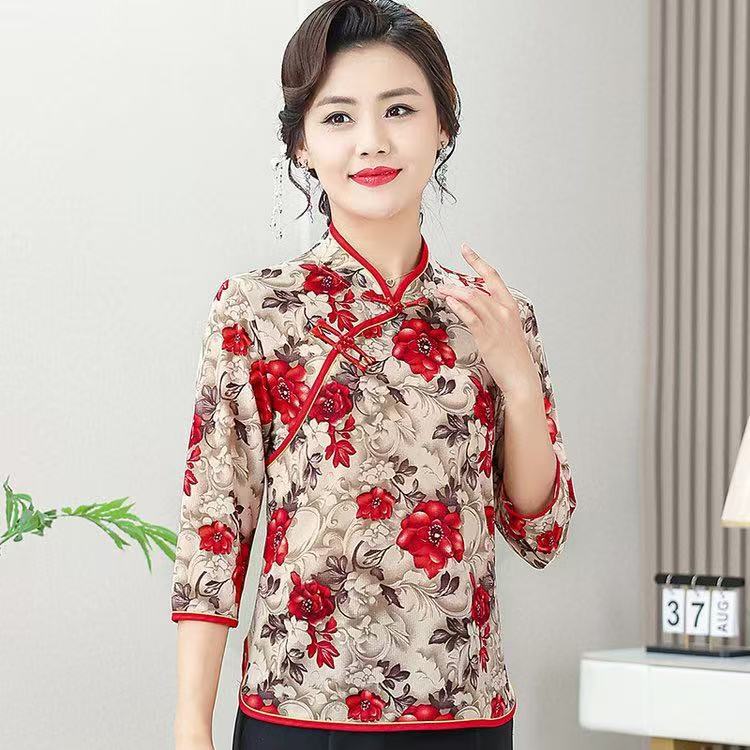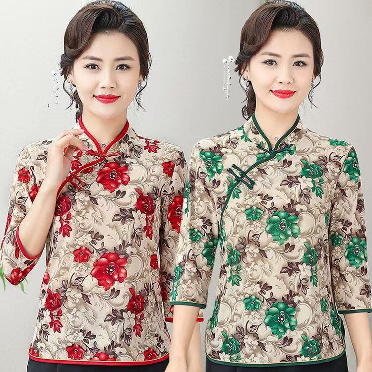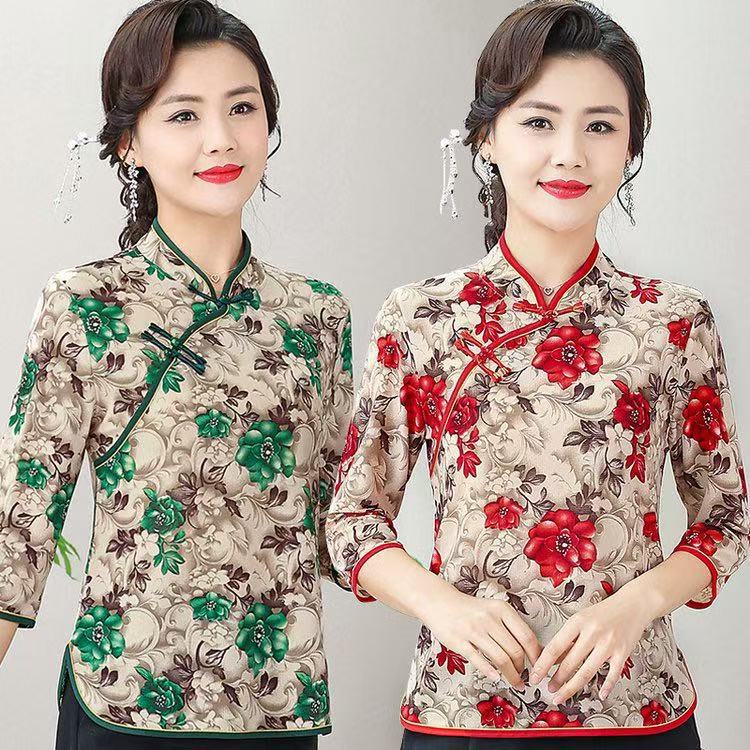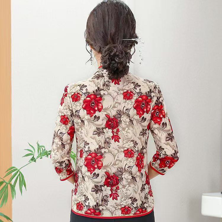 어머니의 봄과 가을 7 점 소매 cheongsam 재킷 중국 스타일 복고풍 여성 자수 중국 컬러 기반스토어 가기