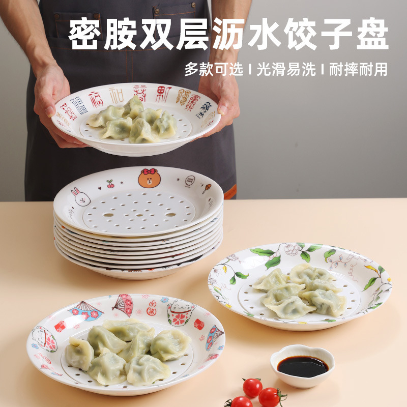 멜라민 만두 배수구 더블 레이어 과일 접시 식기 상업용 가정용 크리 에이 티브 라운드 과일 접시 만두