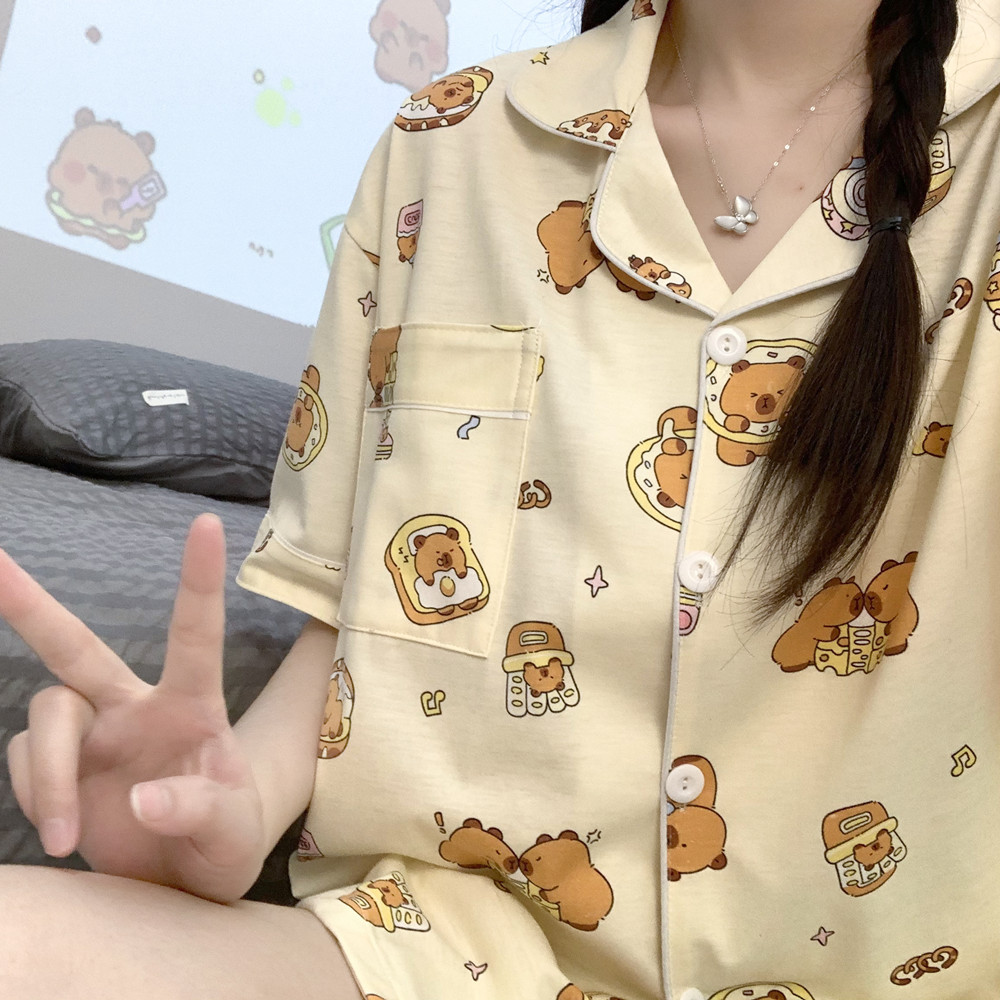 • 니트 면 카피바라 3종 세트 - 반팔 + 반바지 + 긴바지