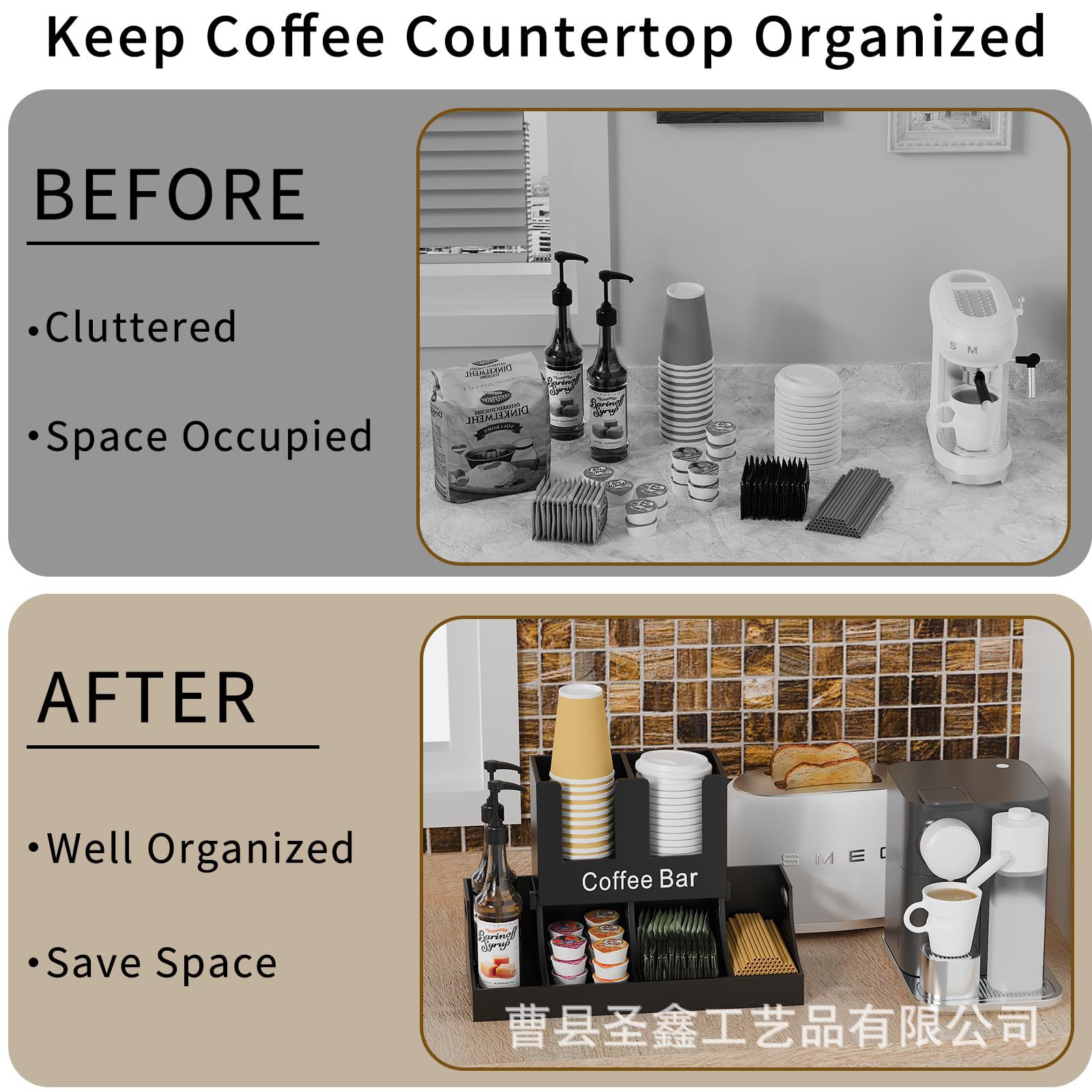 나무 커피 스테이션 저장 상자 두 배 층 우유 차 가게 종이컵 홀더 구획 시럽 커피 캡슐 차 컵 저장 상자