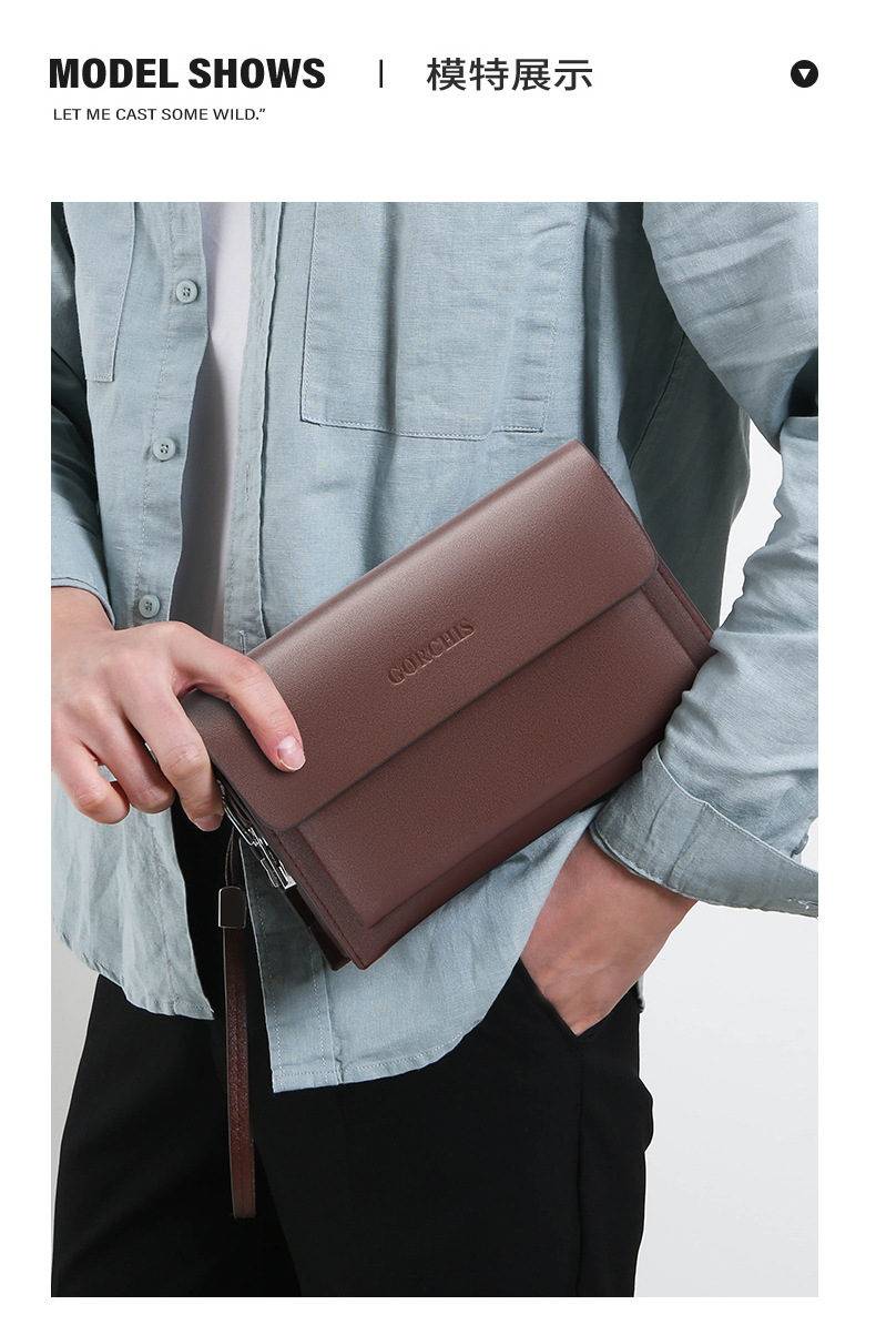 새로운 남성 클러치 백 조합 잠금 도난 방지 클러치 백 대용량 비즈니스 캐주얼 긴 지갑 가죽 트렌디 남성용 가방