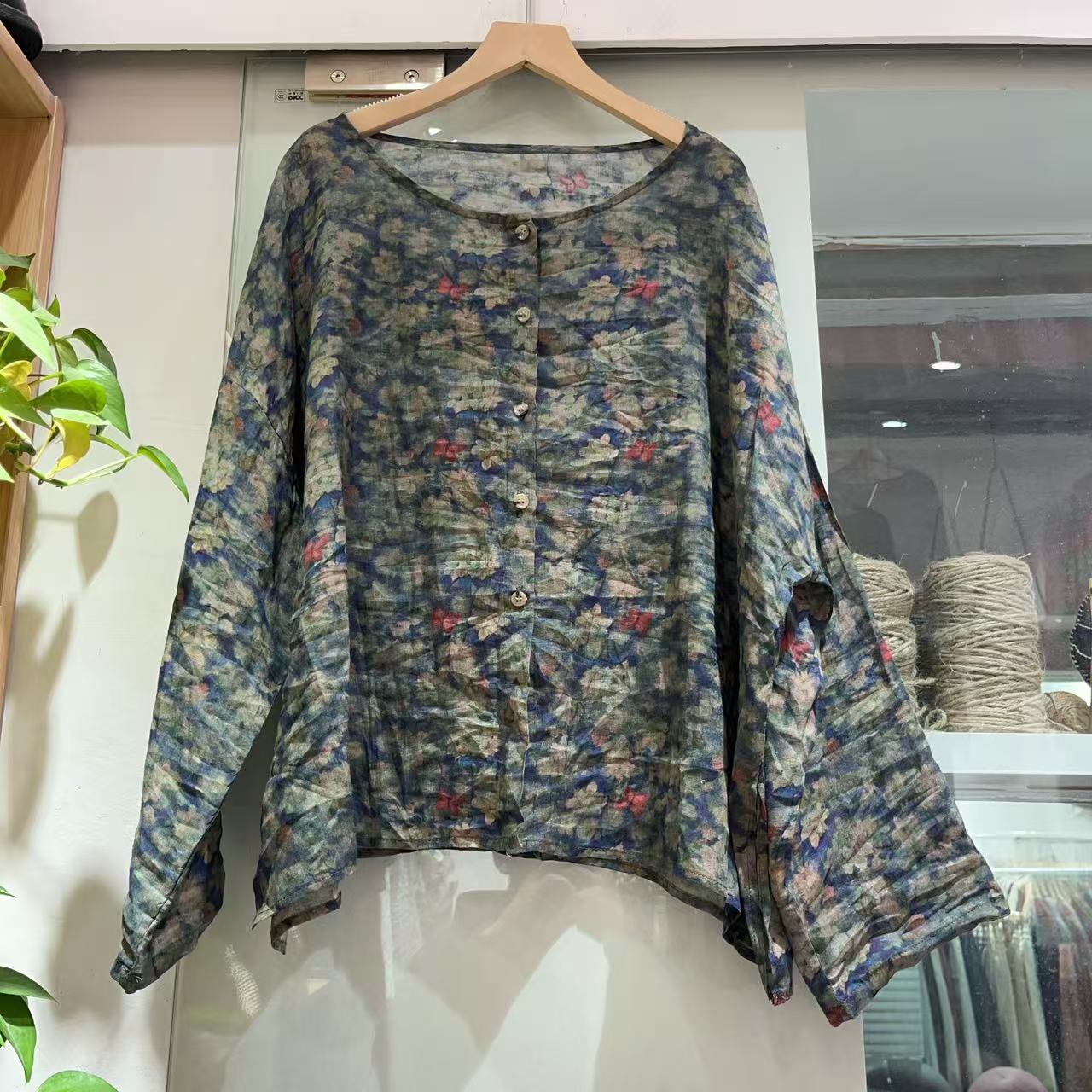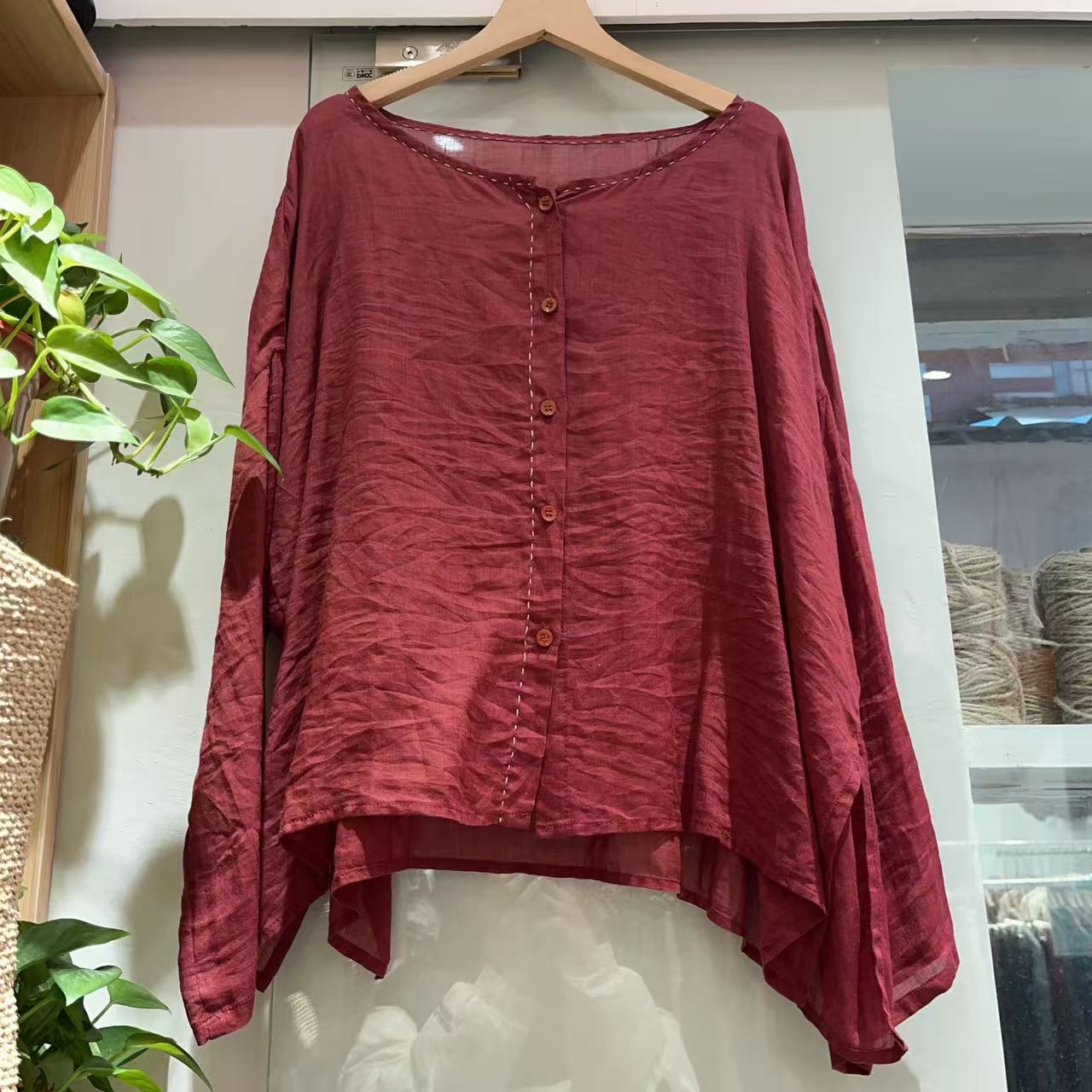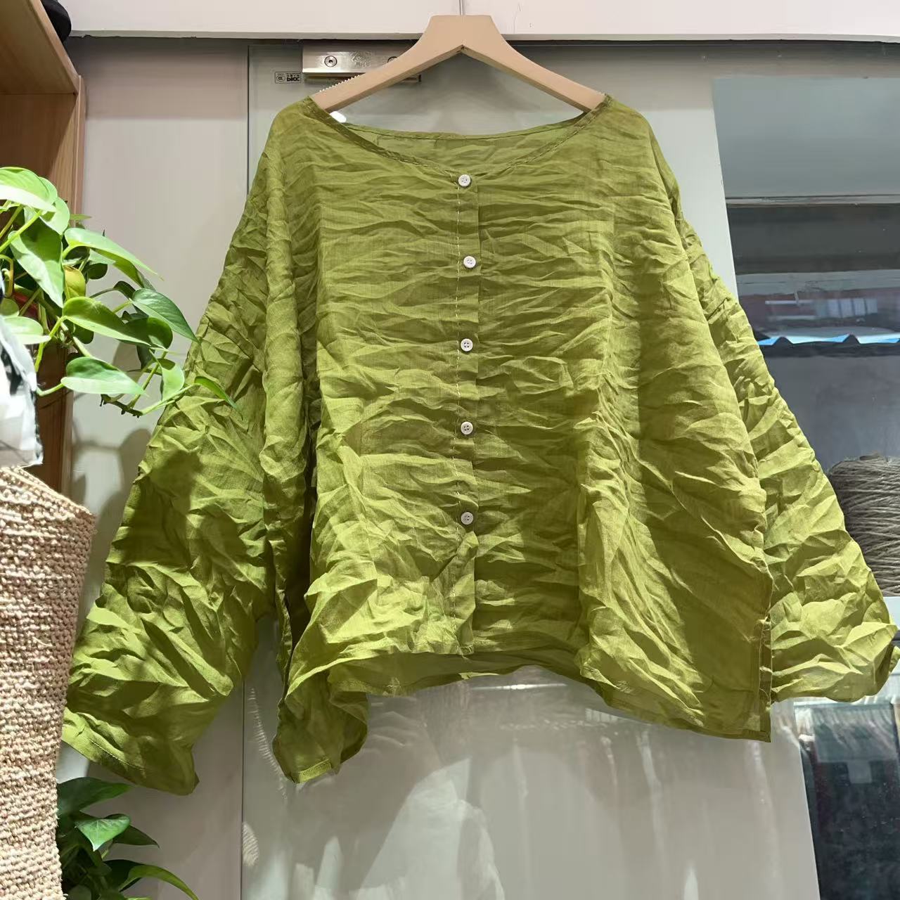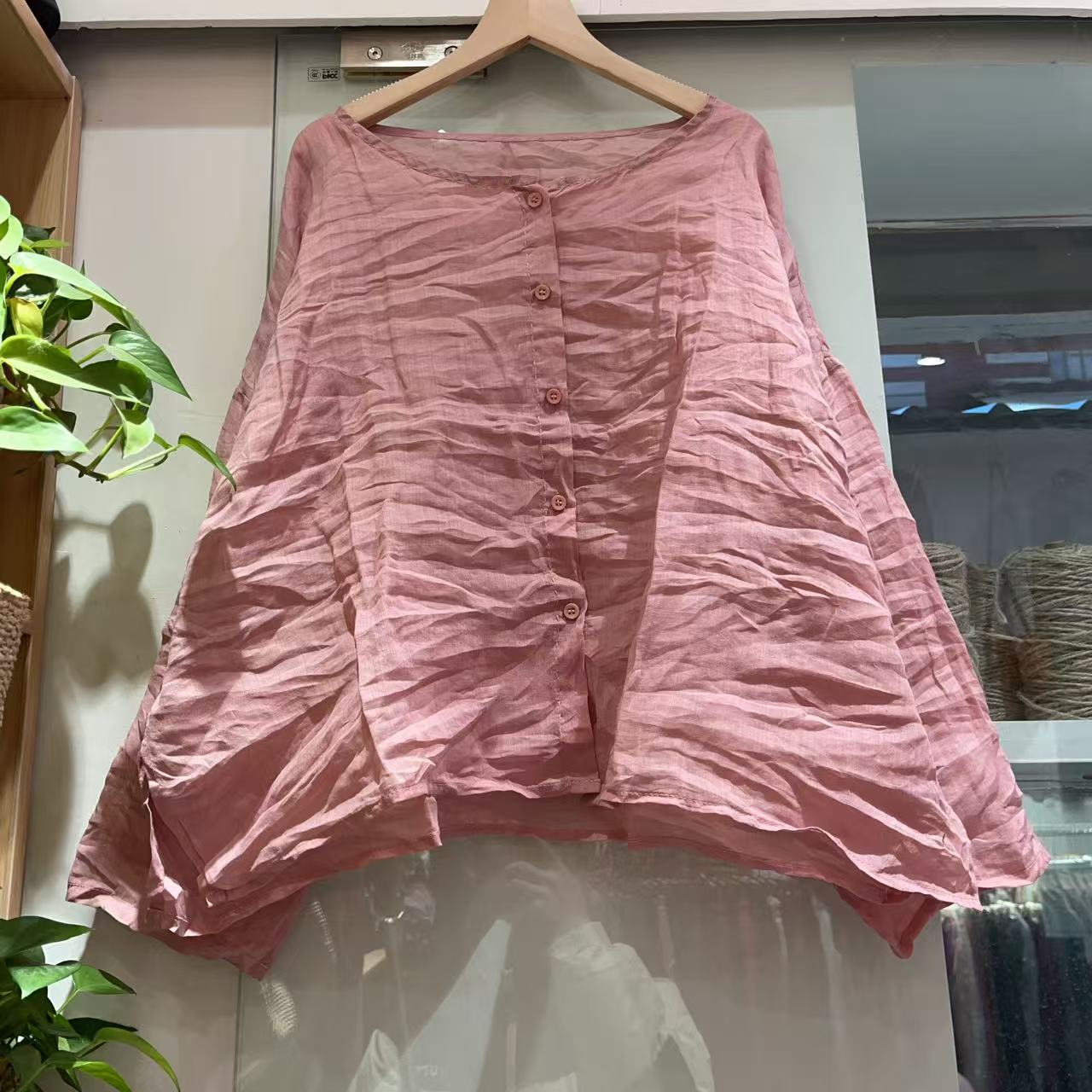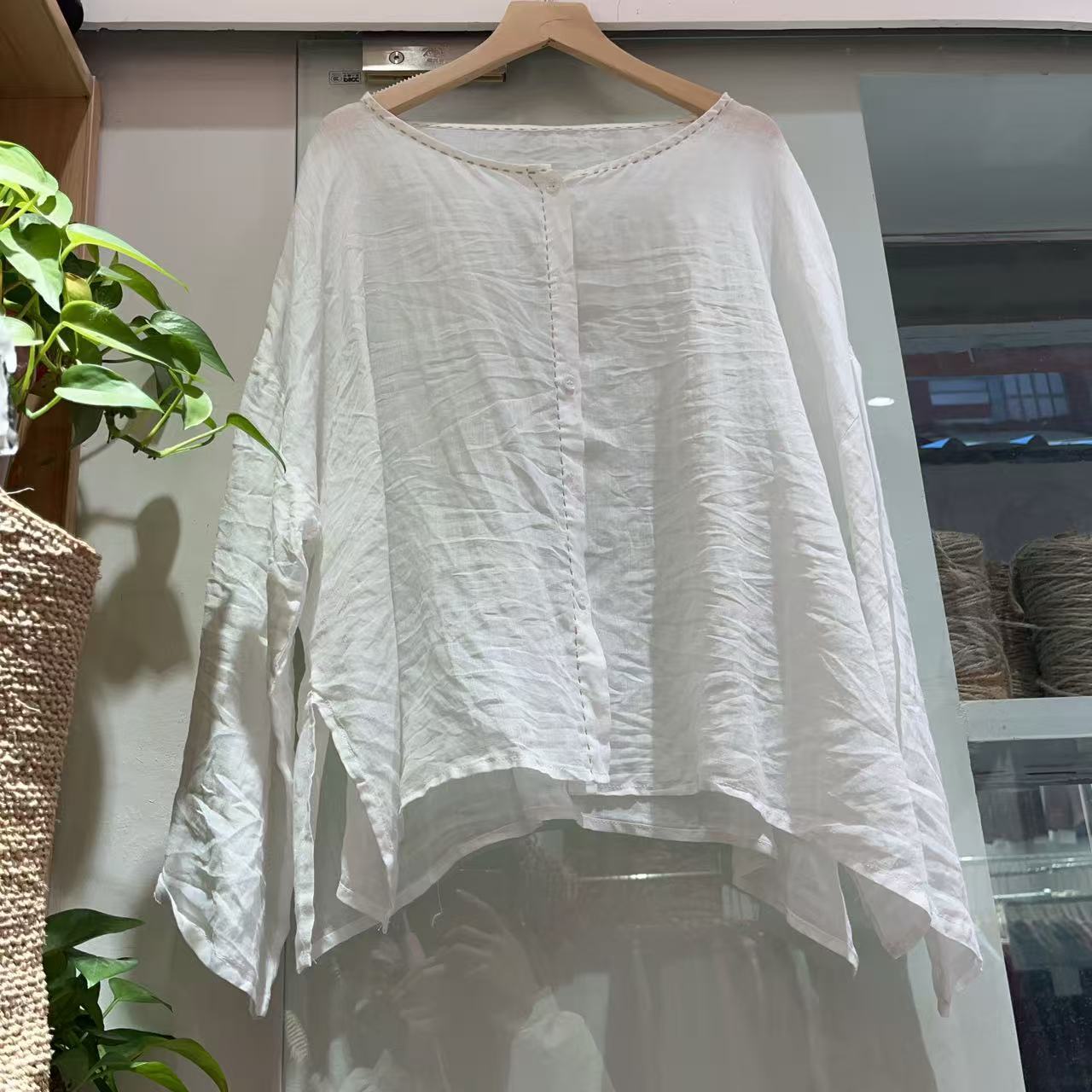 라미 싱글 레이어 라운드 넥 슬릿 셔츠(길이 60) 패셔너블하고 심플한 여름 통기성 및 땀 흡수성 대형 사이즈스토어 가기