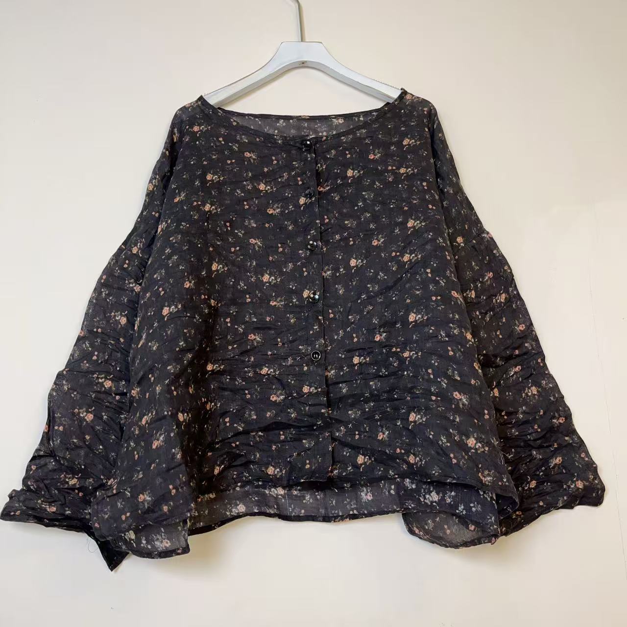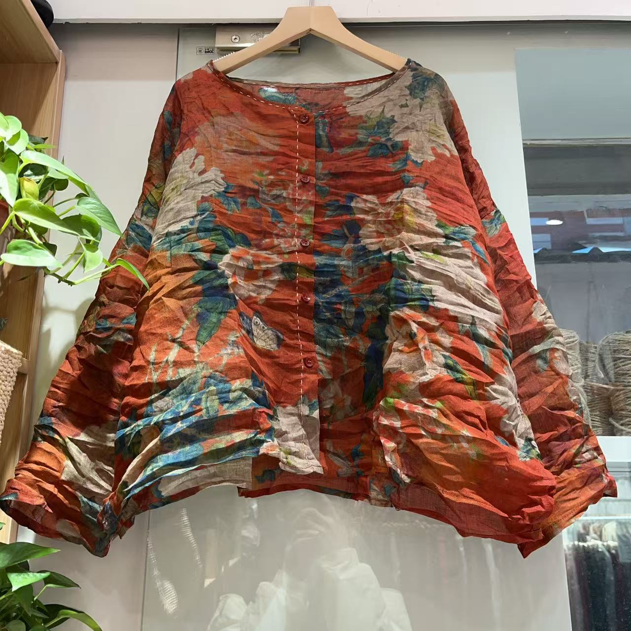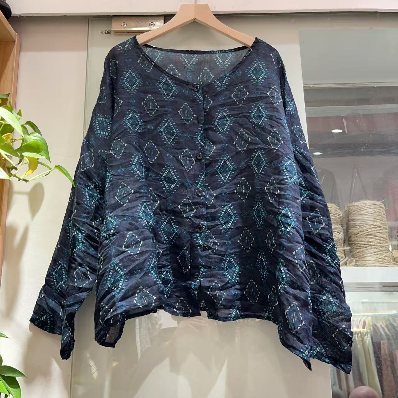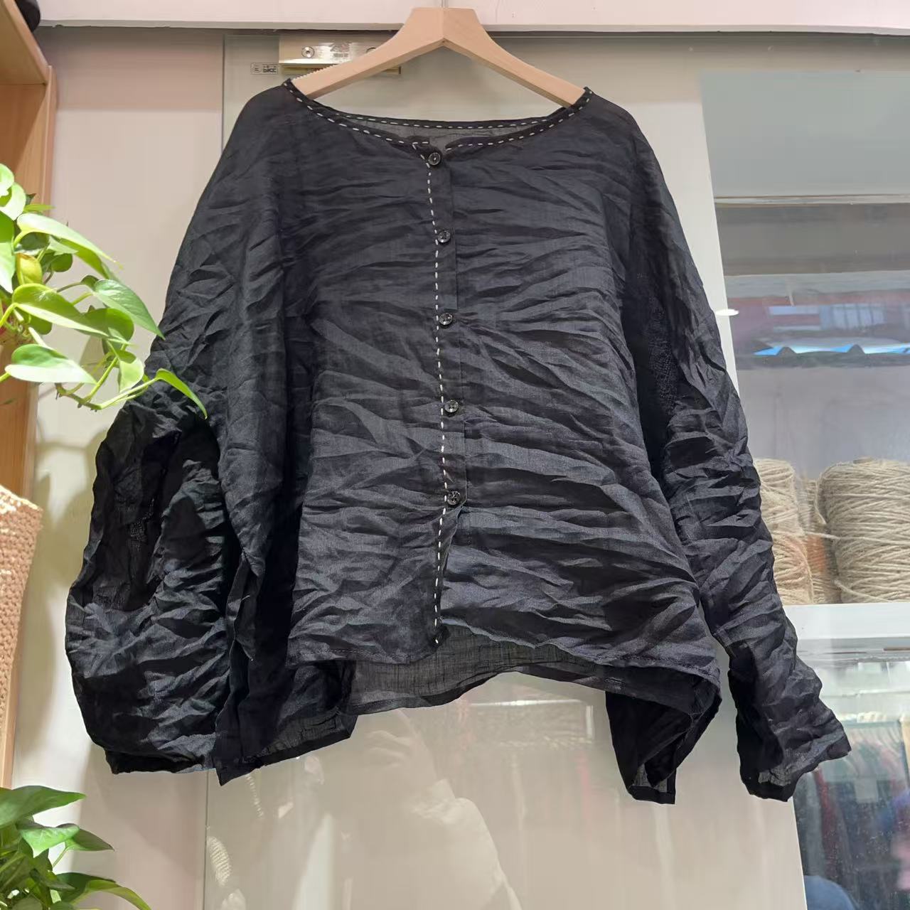 라미 싱글 레이어 라운드 넥 슬릿 셔츠(길이 60) 패셔너블하고 심플한 여름 통기성 및 땀 흡수성 대형 사이즈스토어 가기