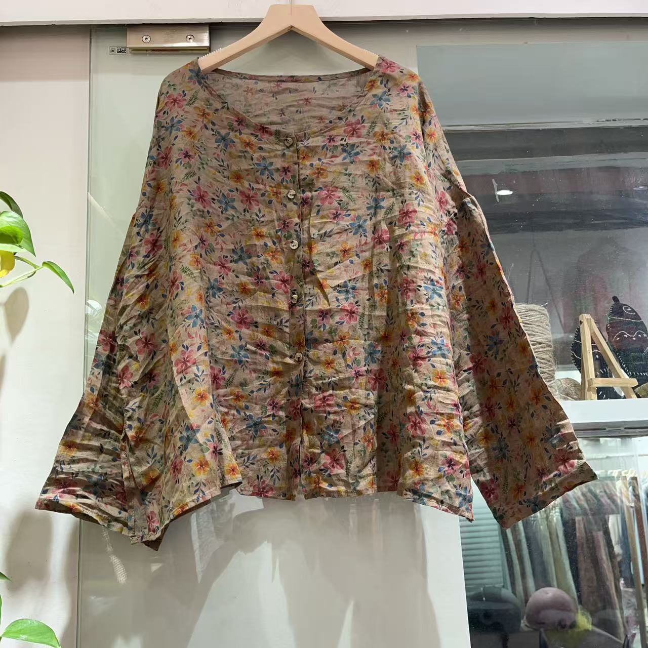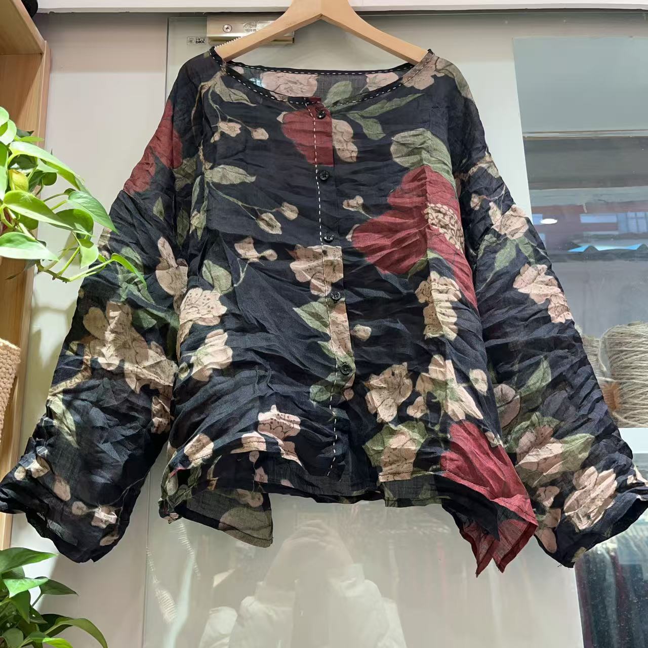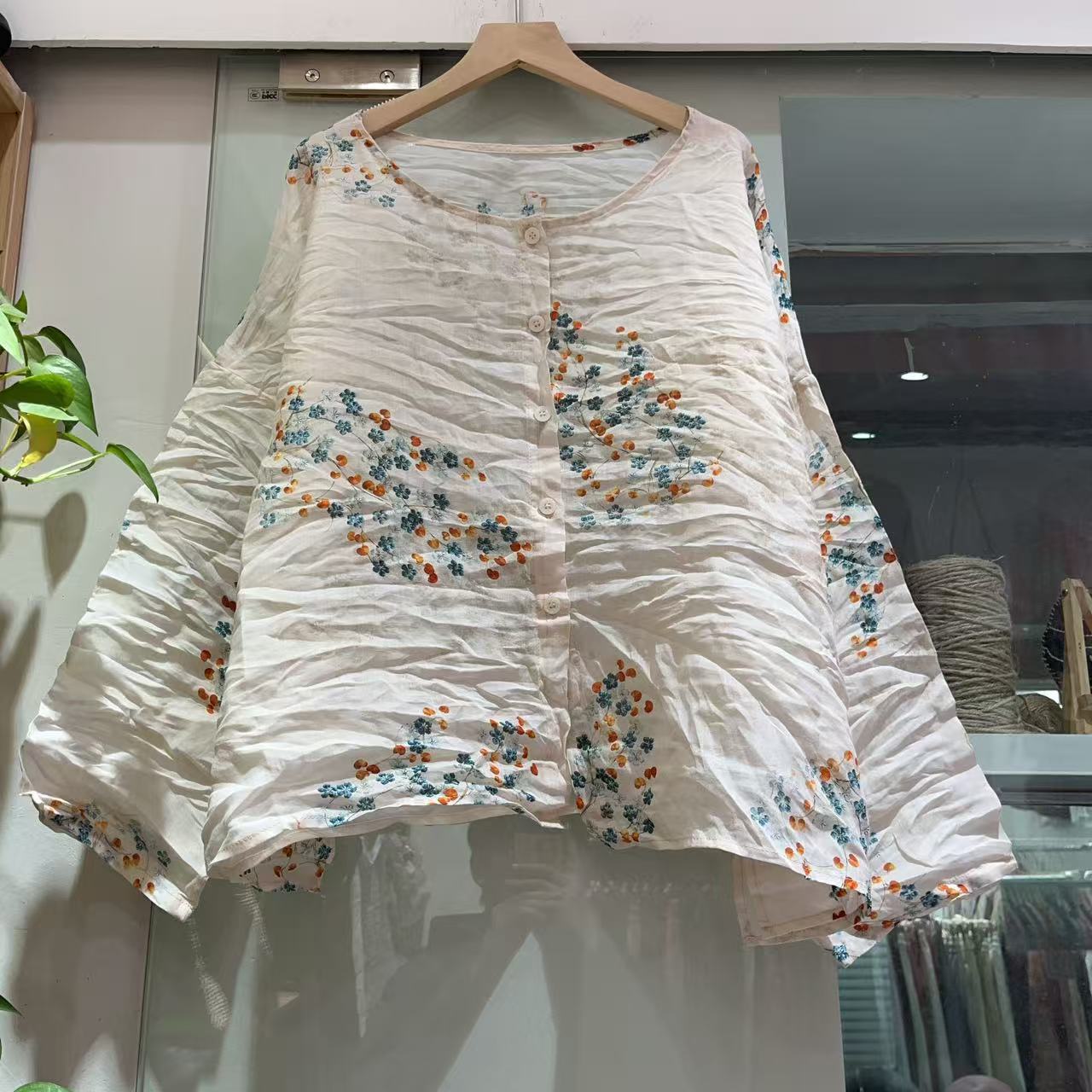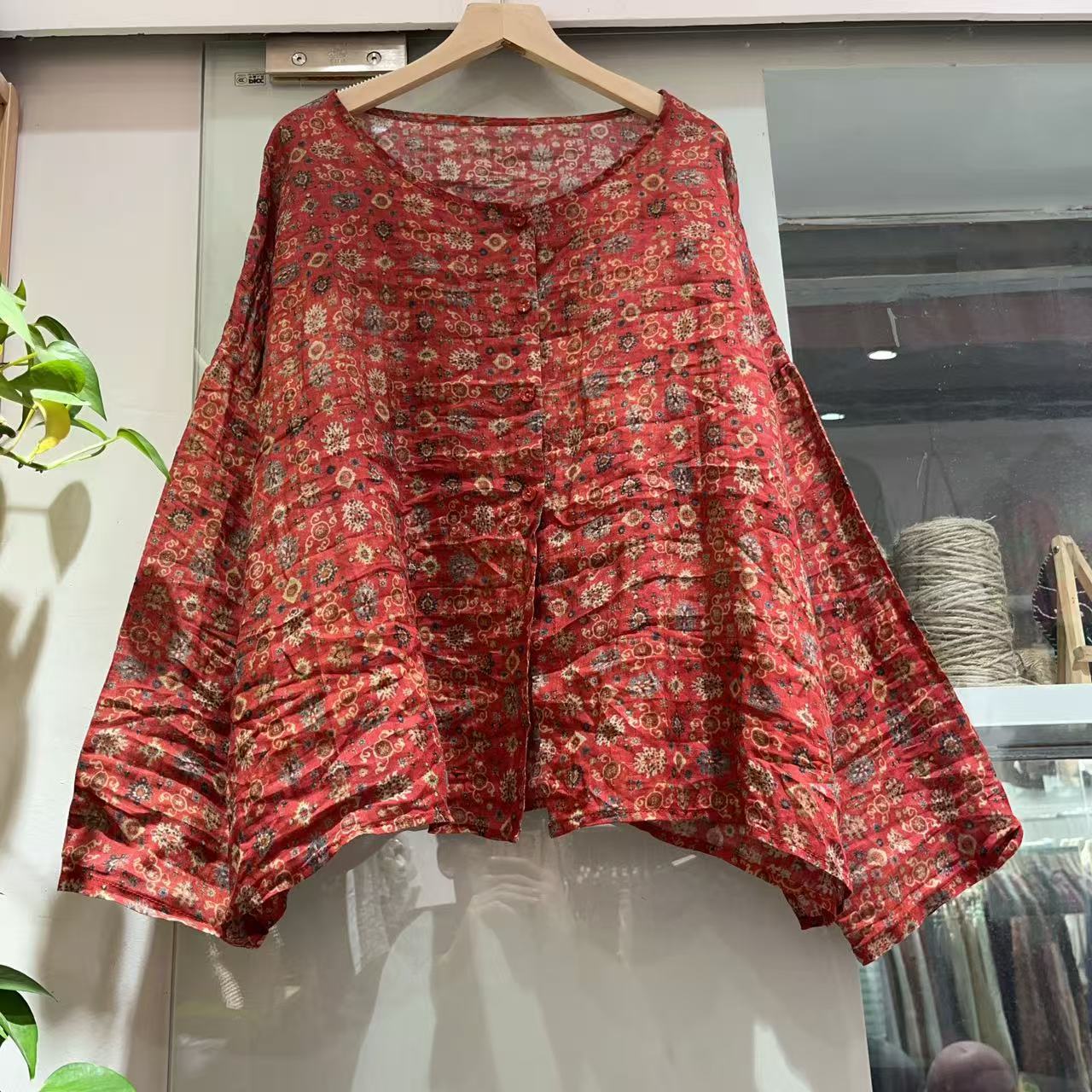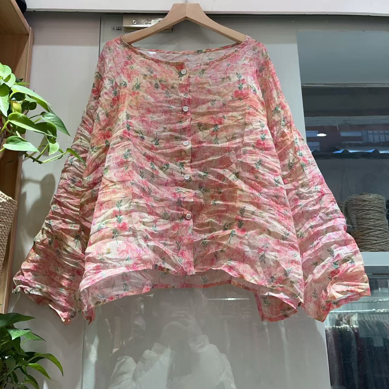 라미 싱글 레이어 라운드 넥 슬릿 셔츠(길이 60) 패셔너블하고 심플한 여름 통기성 및 땀 흡수성 대형 사이즈스토어 가기
