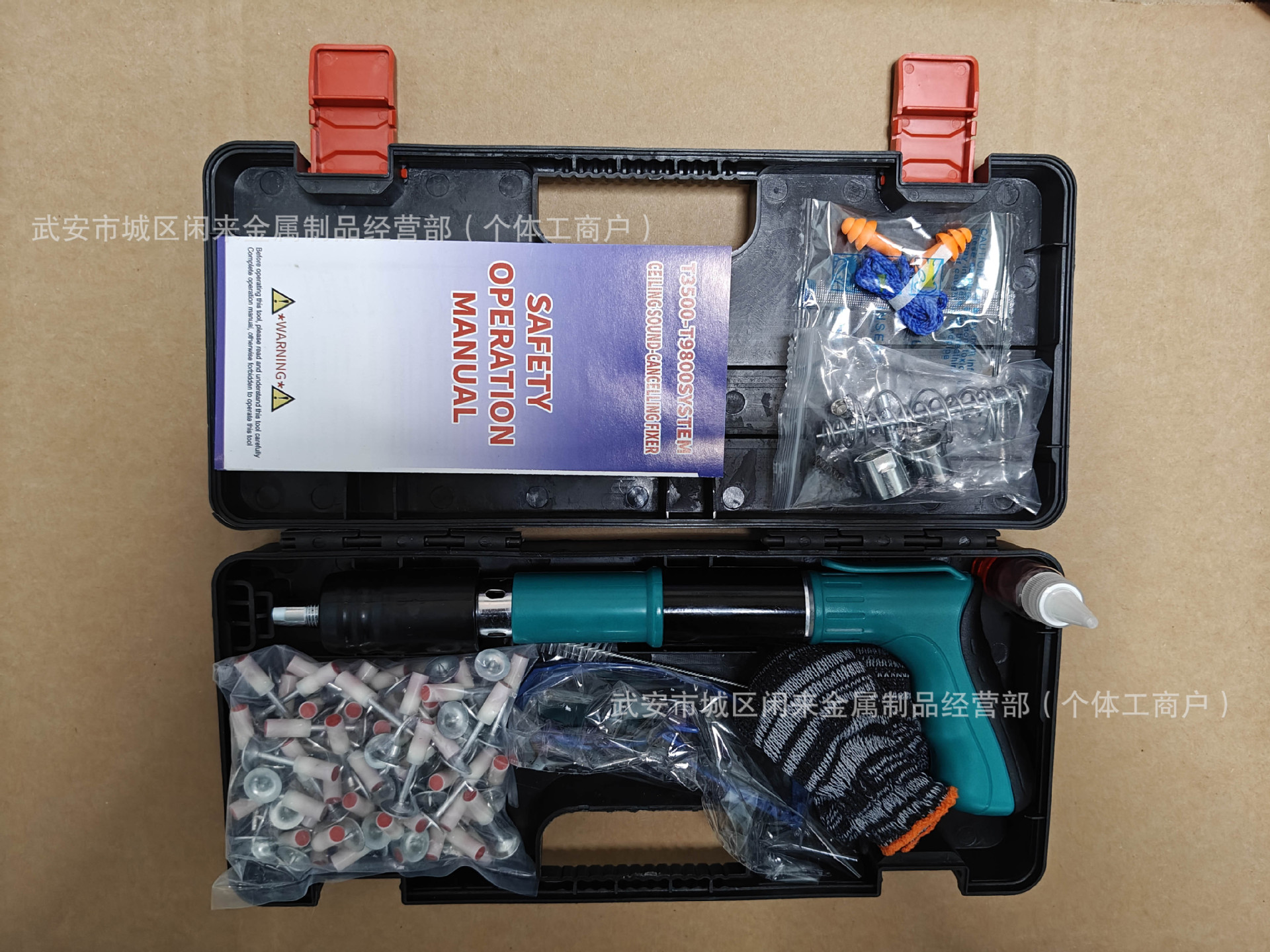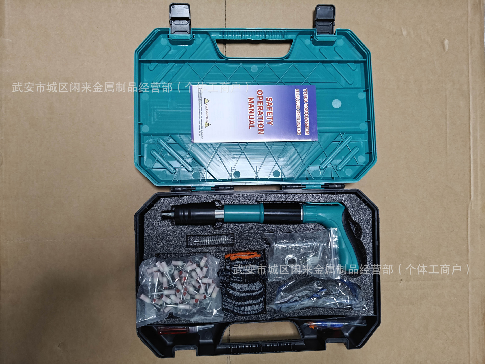 • 녹색 단발 못총 + 부속품 + 못 100개