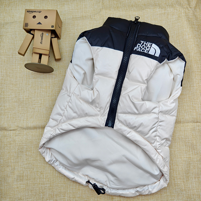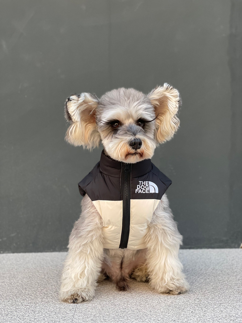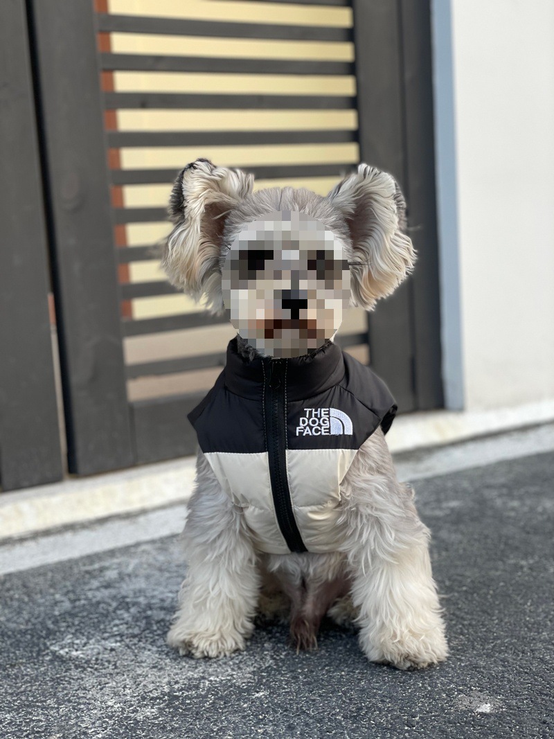 • **화이트 & 블랙 조끼 [DOG FACE 다운 재킷]**
