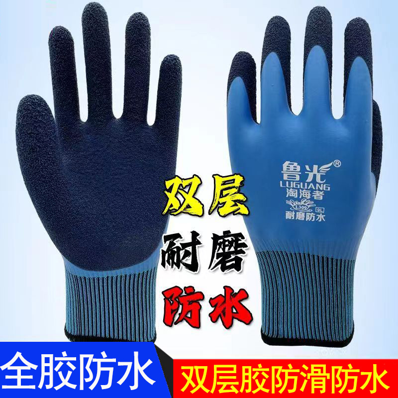방수 노동 장갑 내마모성 미끄럼 방지 풀 가죽 더블 레이어 라텍스 사이트 도매 고무 담그는 바다 운전을위한 특수스토어 가기