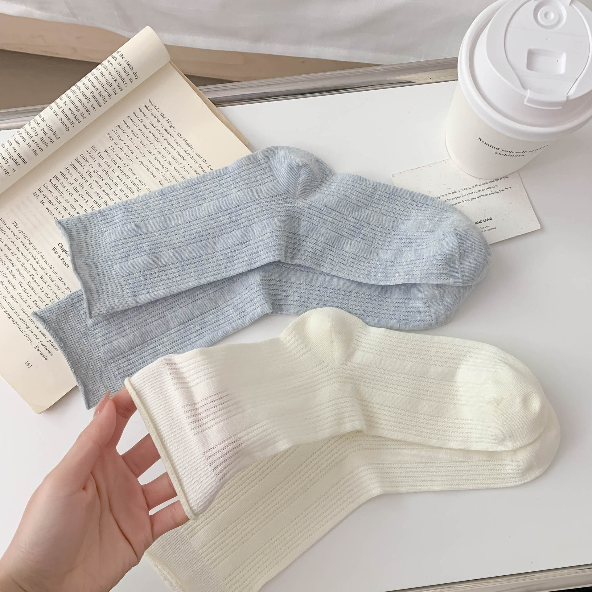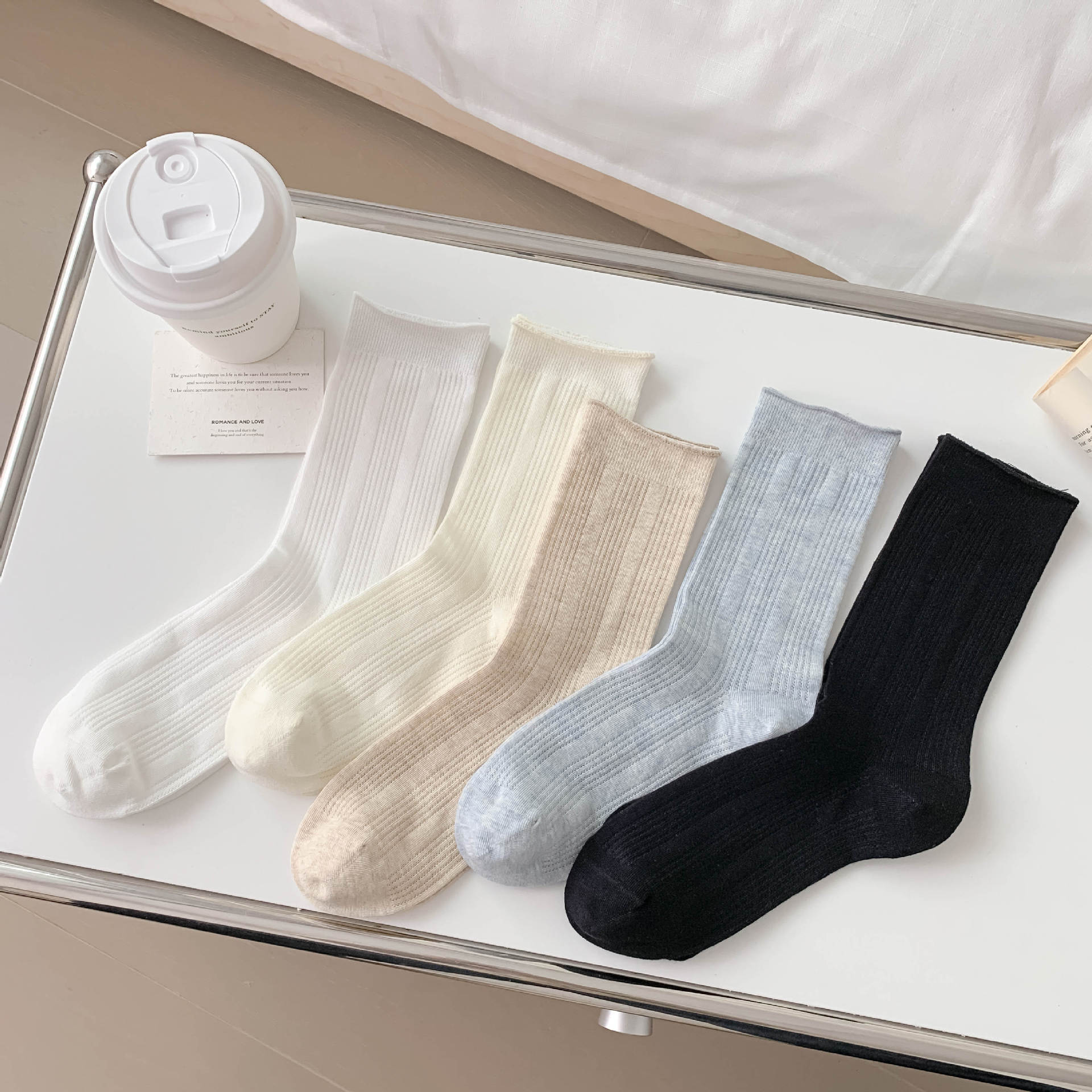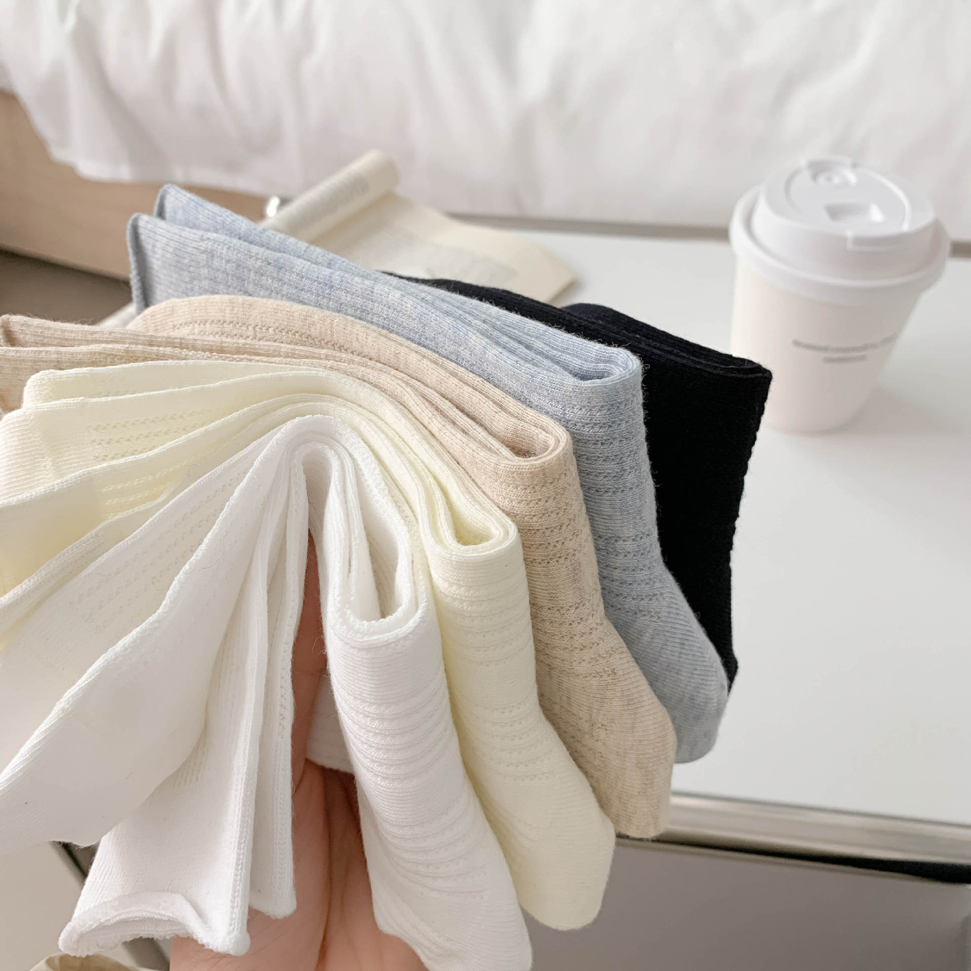 양말 여성의 봄과 여름 새로운 단색 수직 스트립 여성용 양말 간단한 Ins 유행 경량 통기성 메쉬 스택 양말