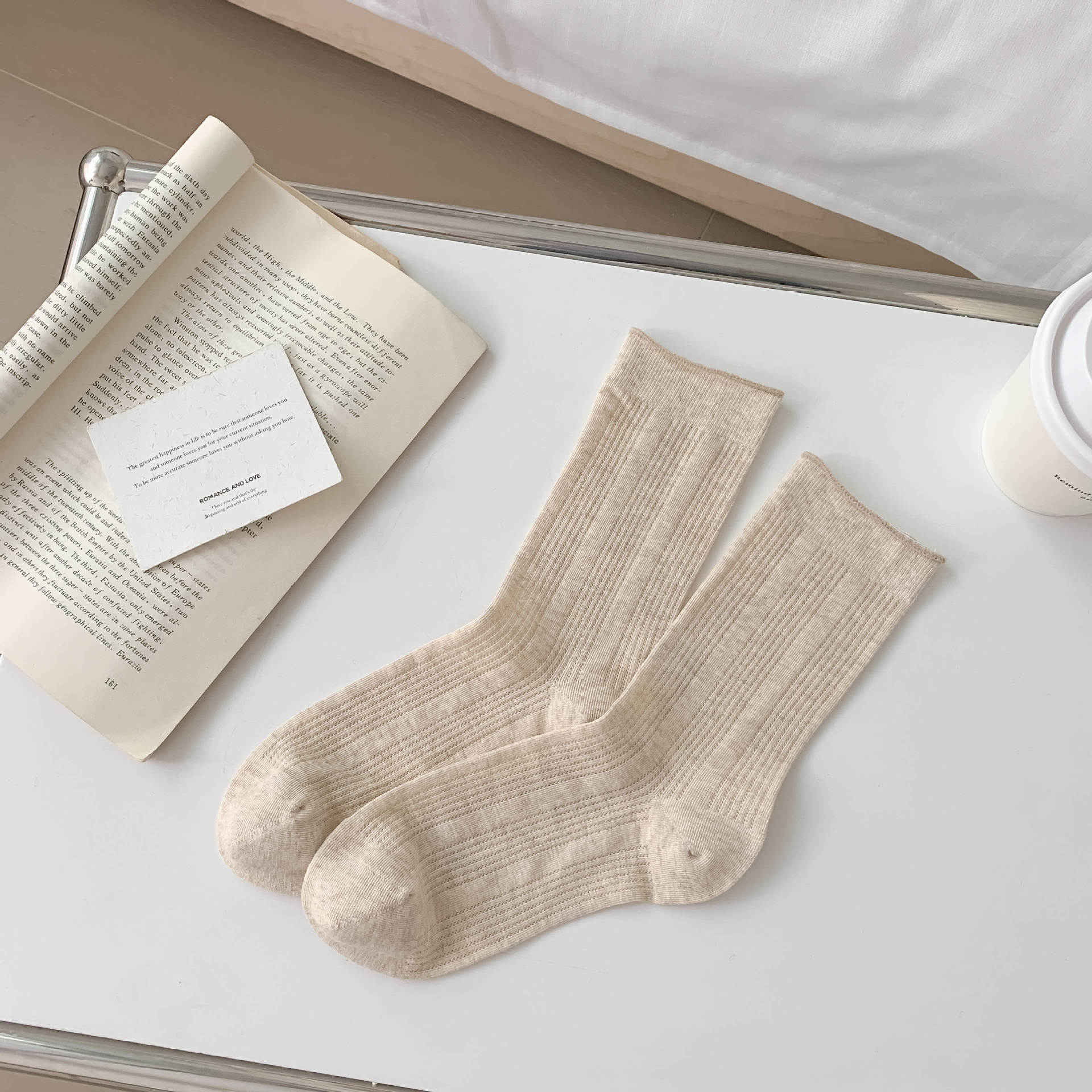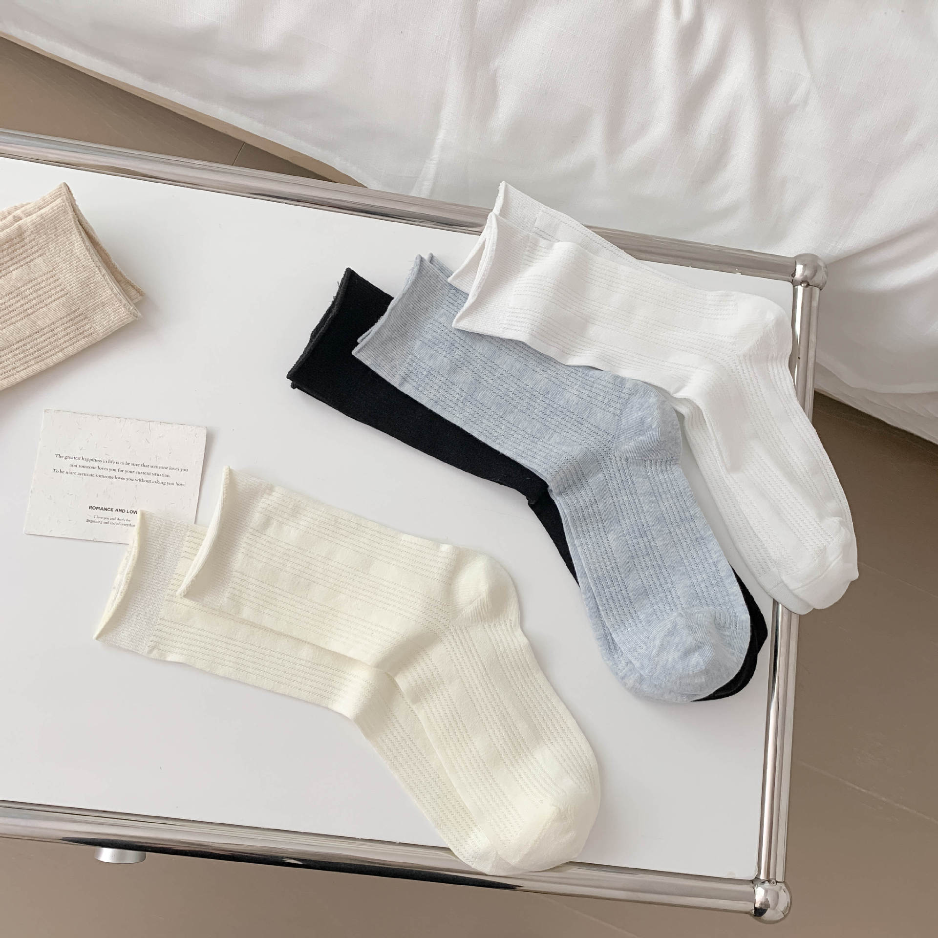 양말 여성의 봄과 여름 새로운 단색 수직 스트립 여성용 양말 간단한 Ins 유행 경량 통기성 메쉬 스택 양말스토어 가기
