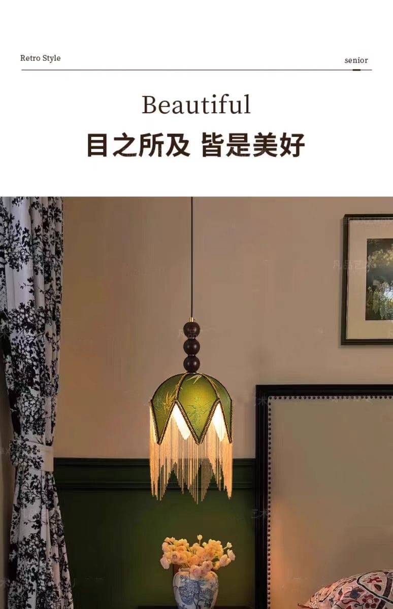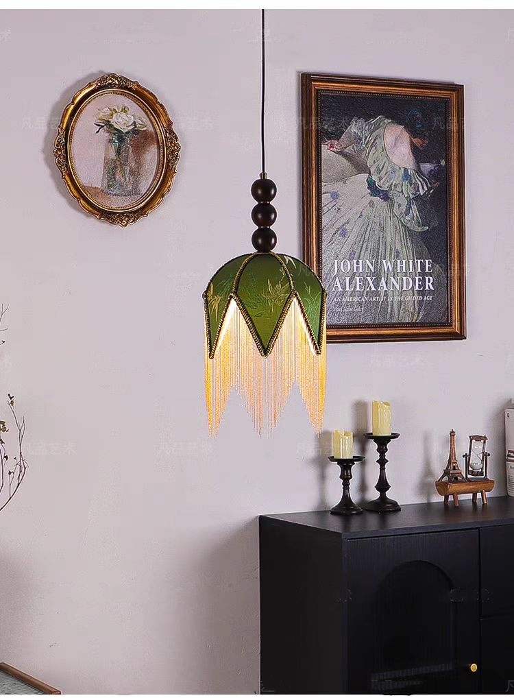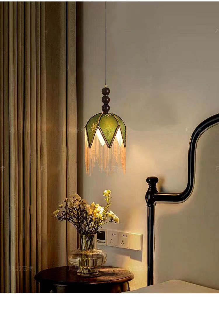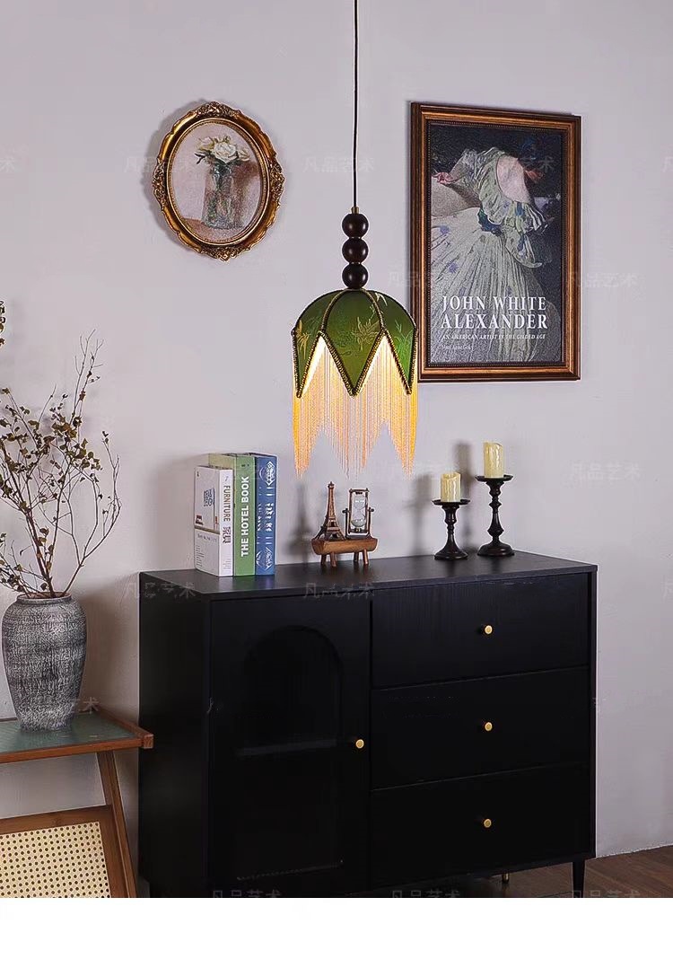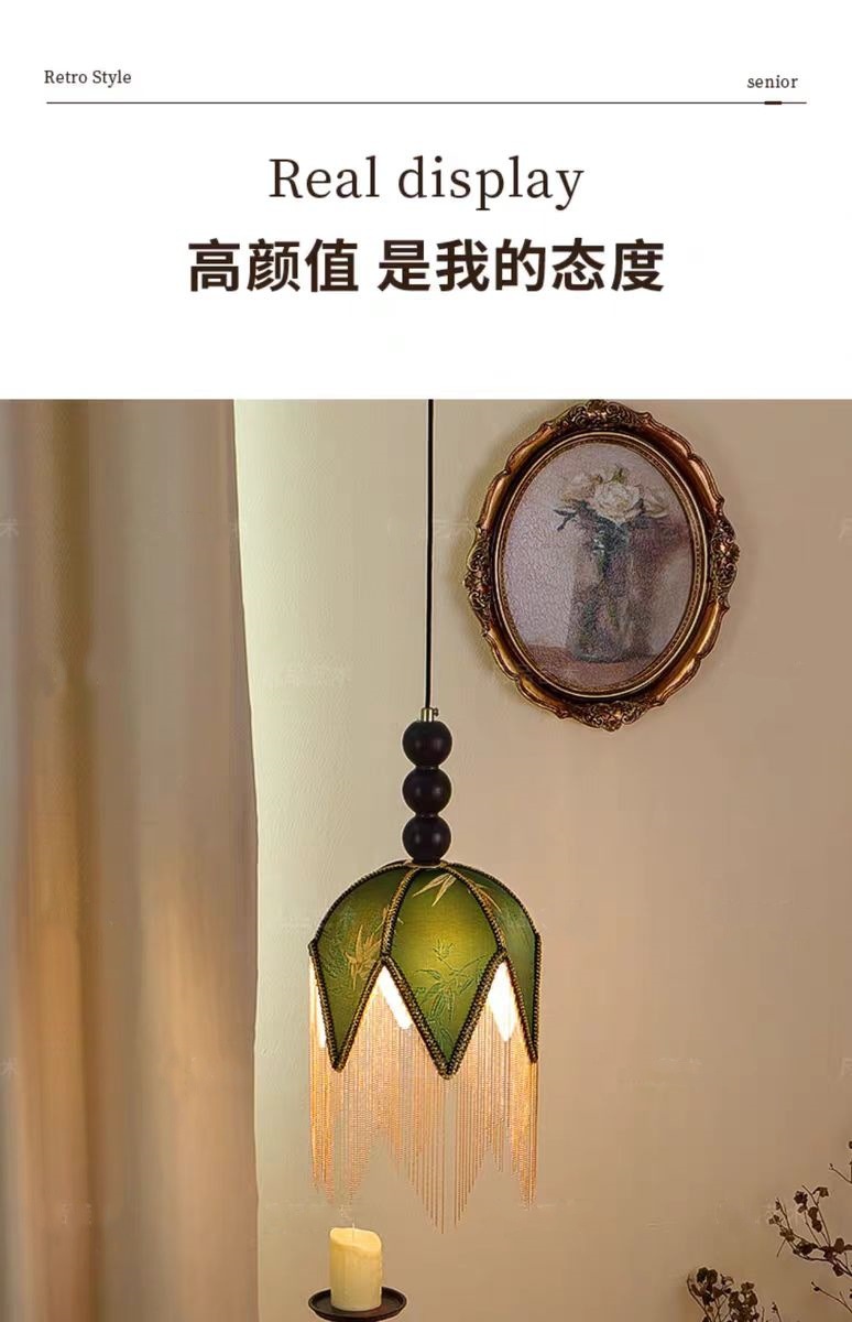 프랑스 레트로 스타일 침실 침실 작은 샹들리에 중미 녹색 술 고급 분위기 입구 바 테이블 램프