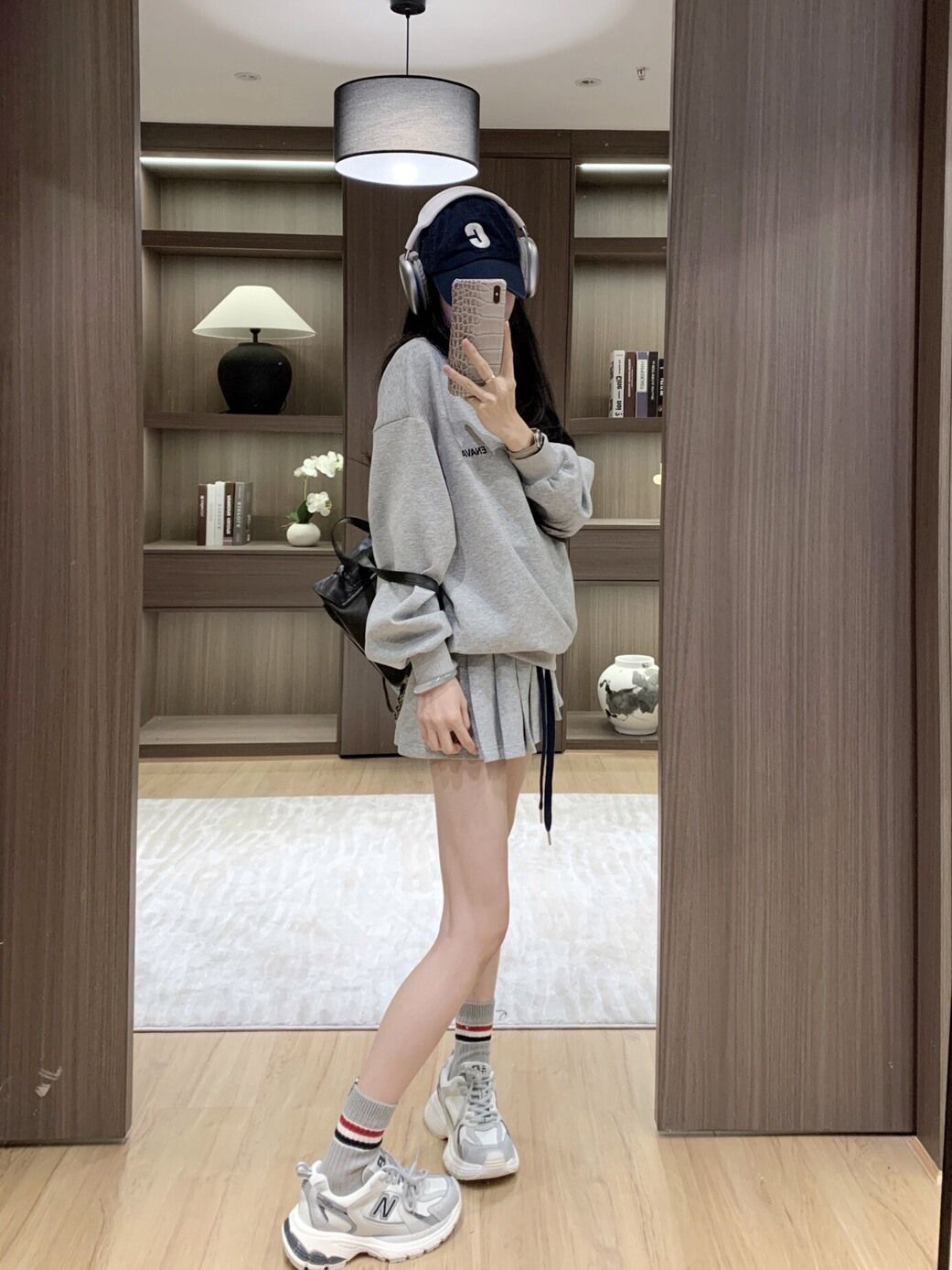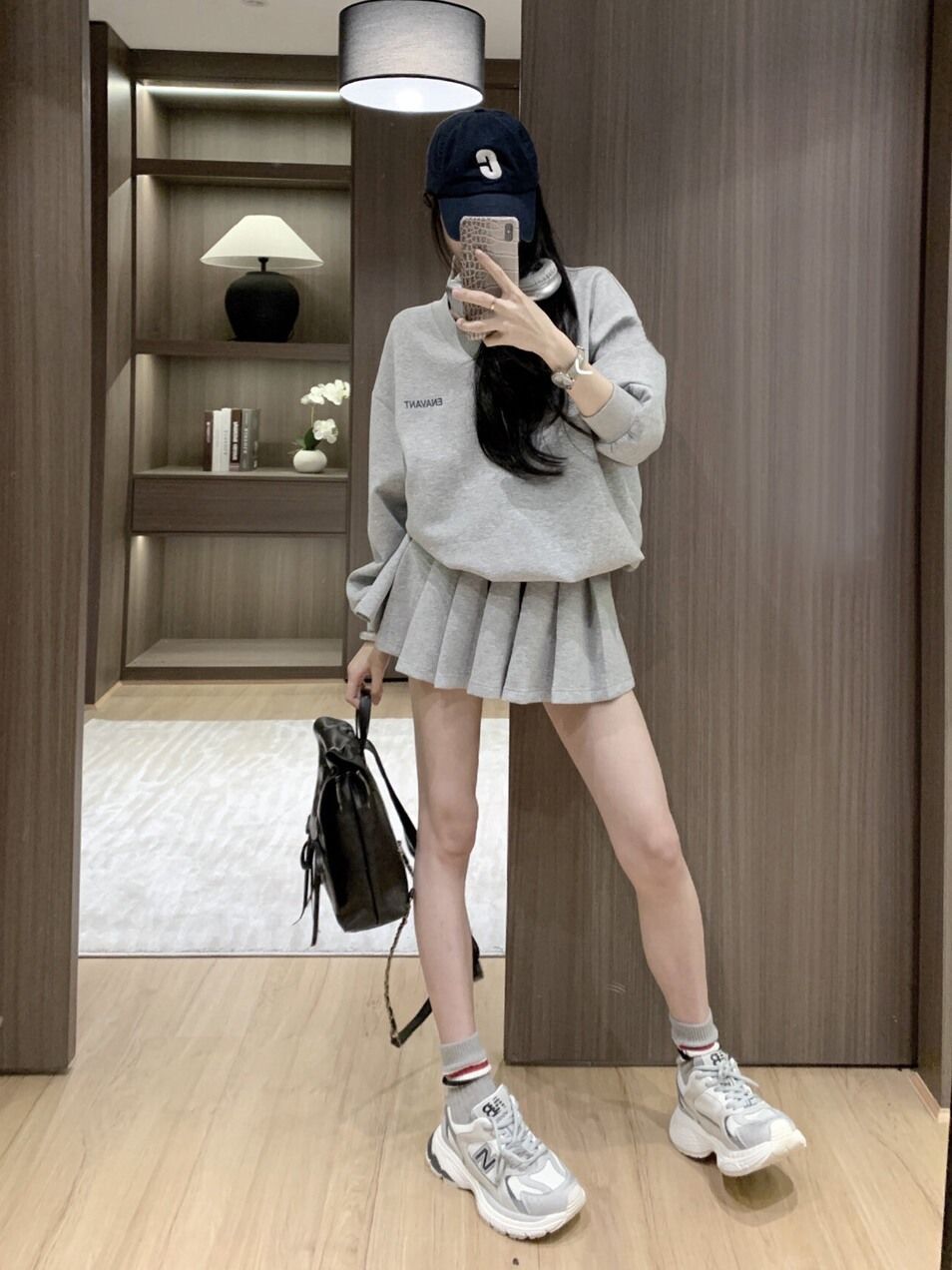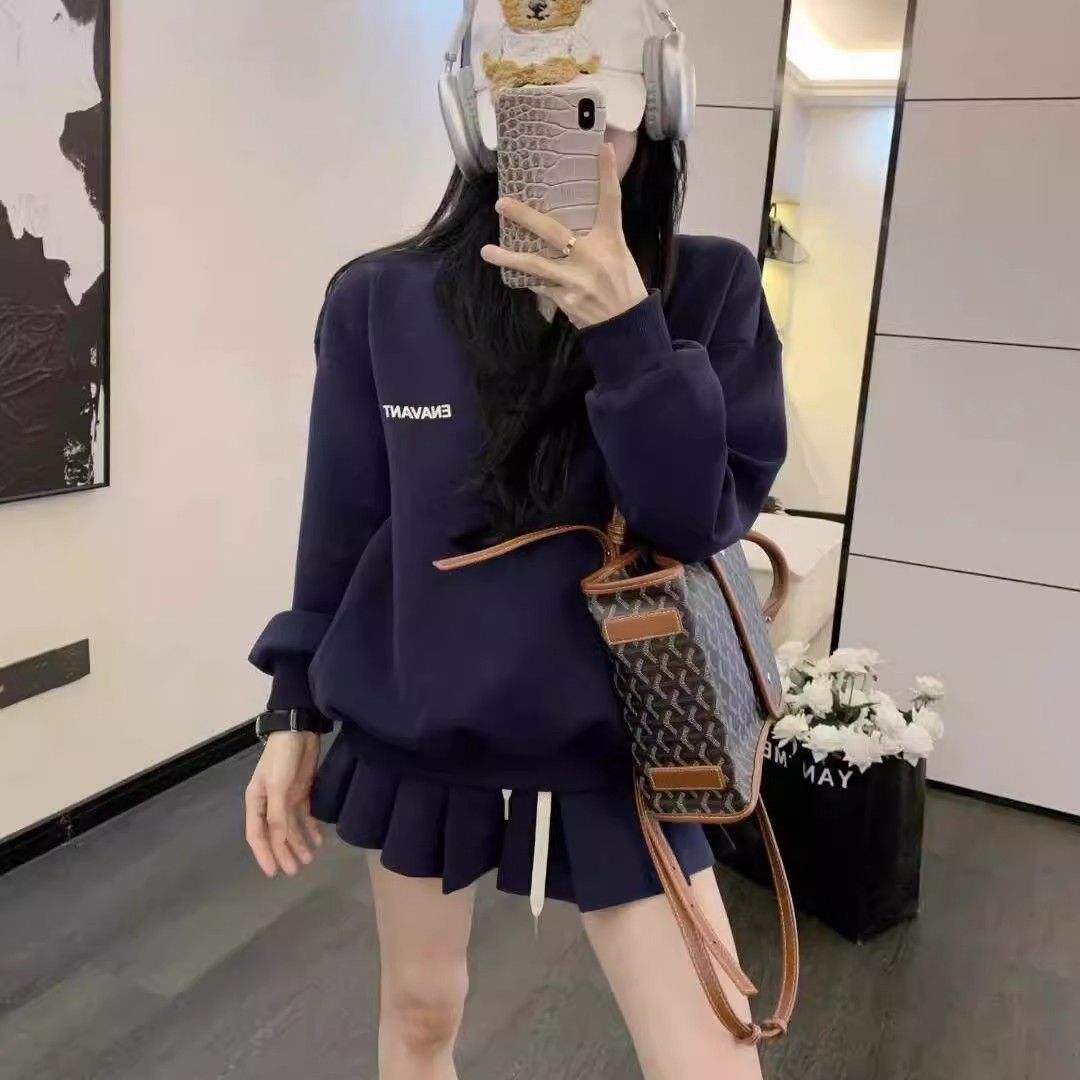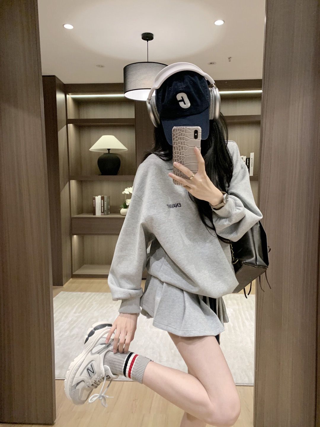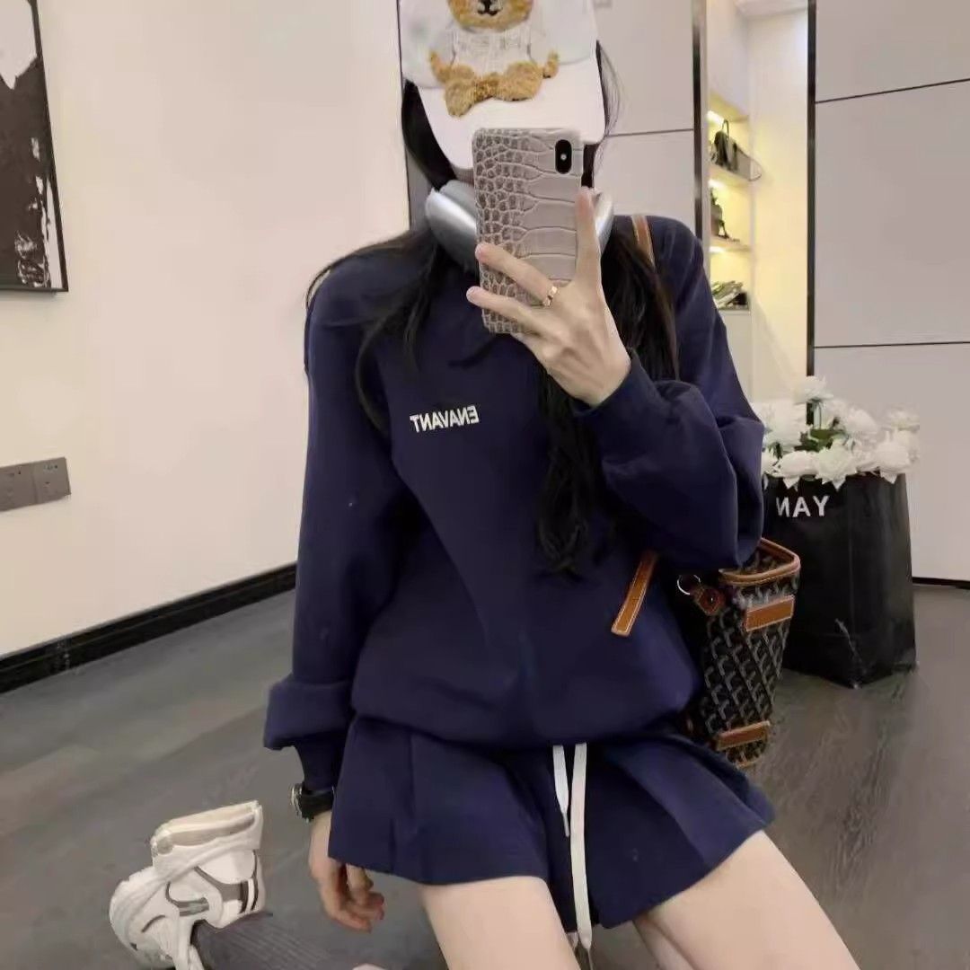 유럽 봄 가을 뉴 세트 여성 한국식 패션 캐주얼 스포츠 V 넥 스웨트 셔츠 플리츠 스커트 에이지 줄이기 투 피스 세트스토어 가기