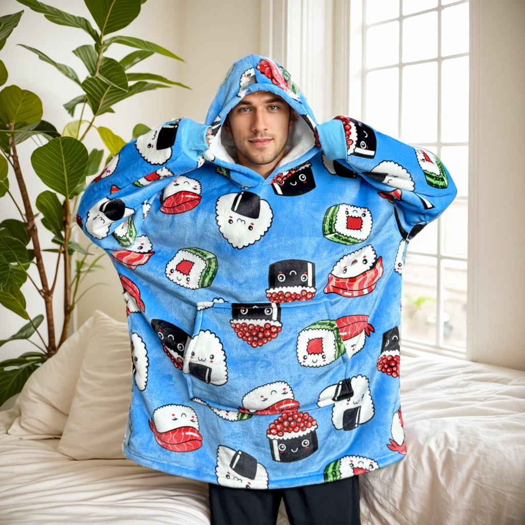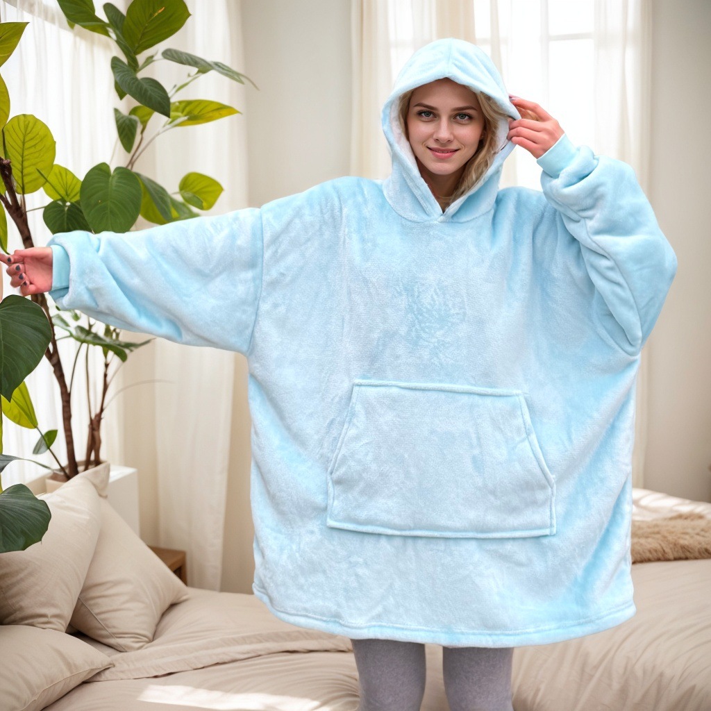 크로스보더 플란넬 두꺼운 양털 잠옷 후드티 텔레비전 담요 방한복 가정용 편안한 의류