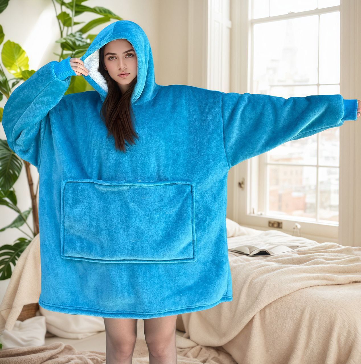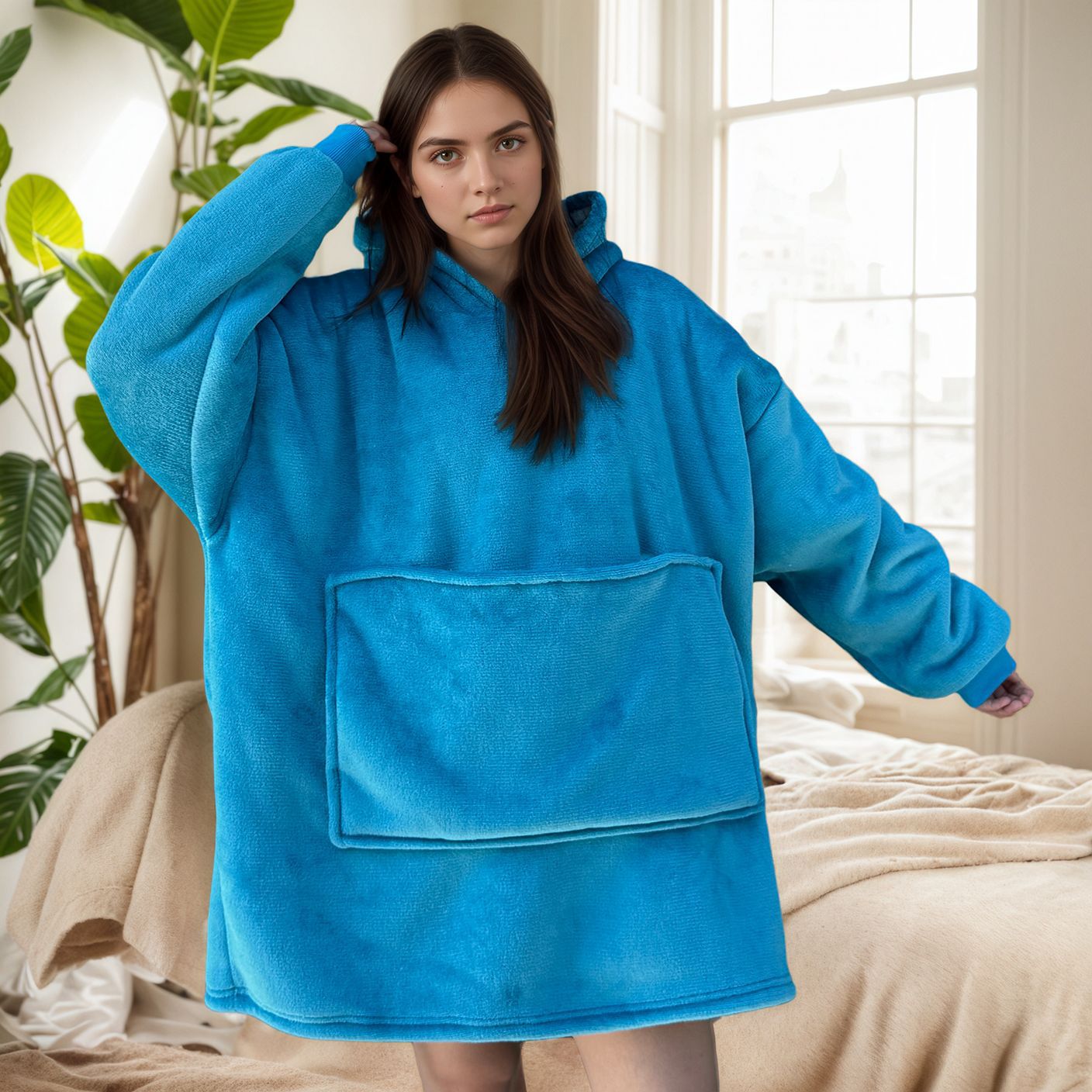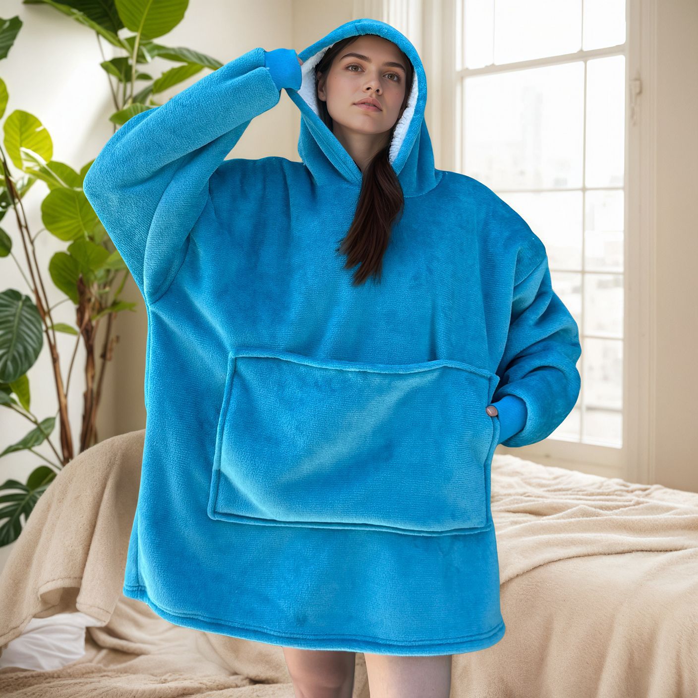 크로스보더 플란넬 두꺼운 양털 잠옷 후드티 텔레비전 담요 방한복 가정용 편안한 의류스토어 가기