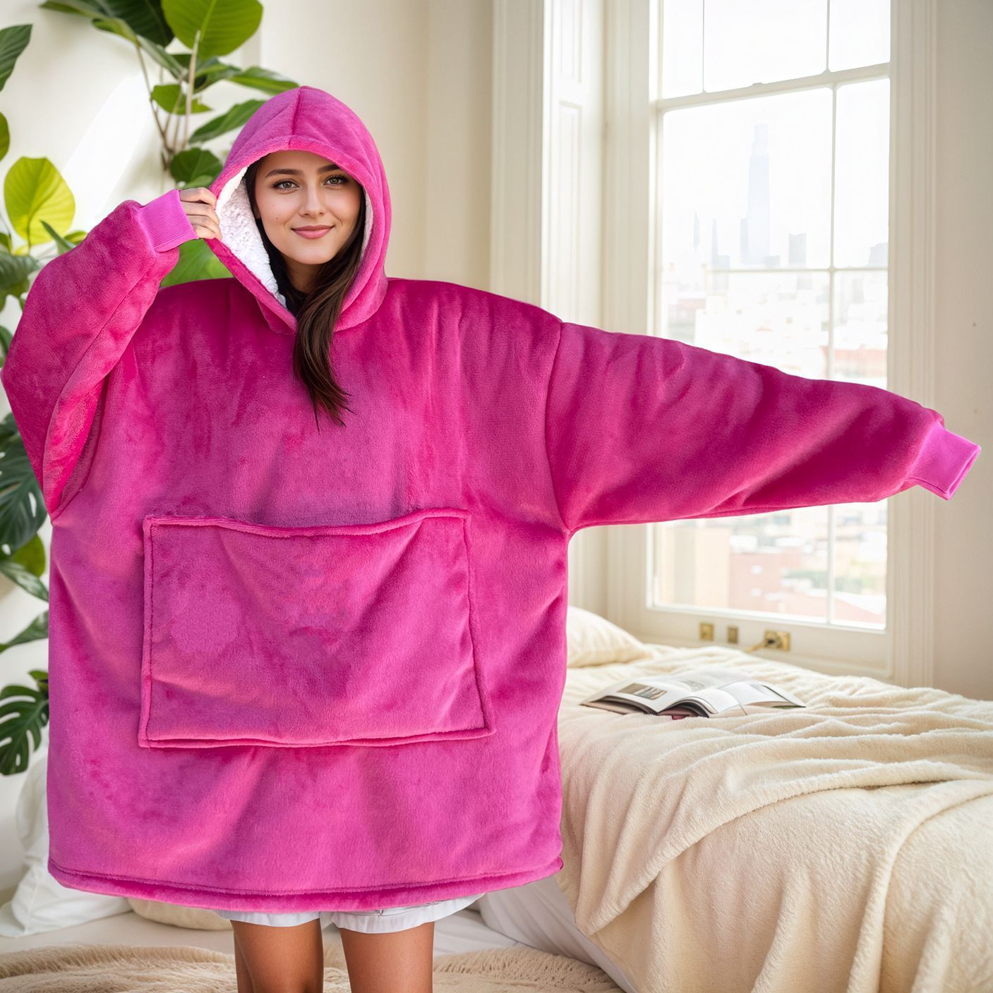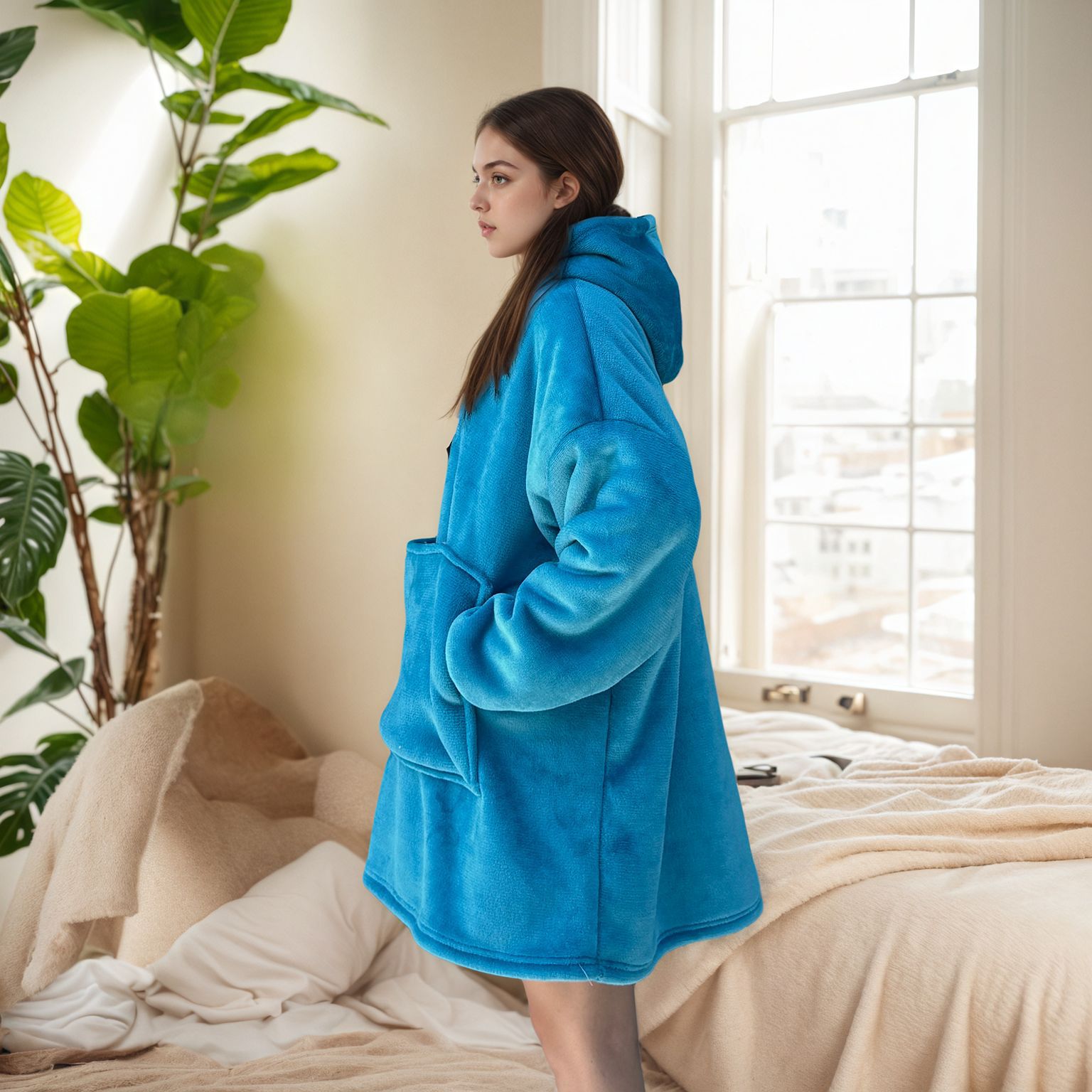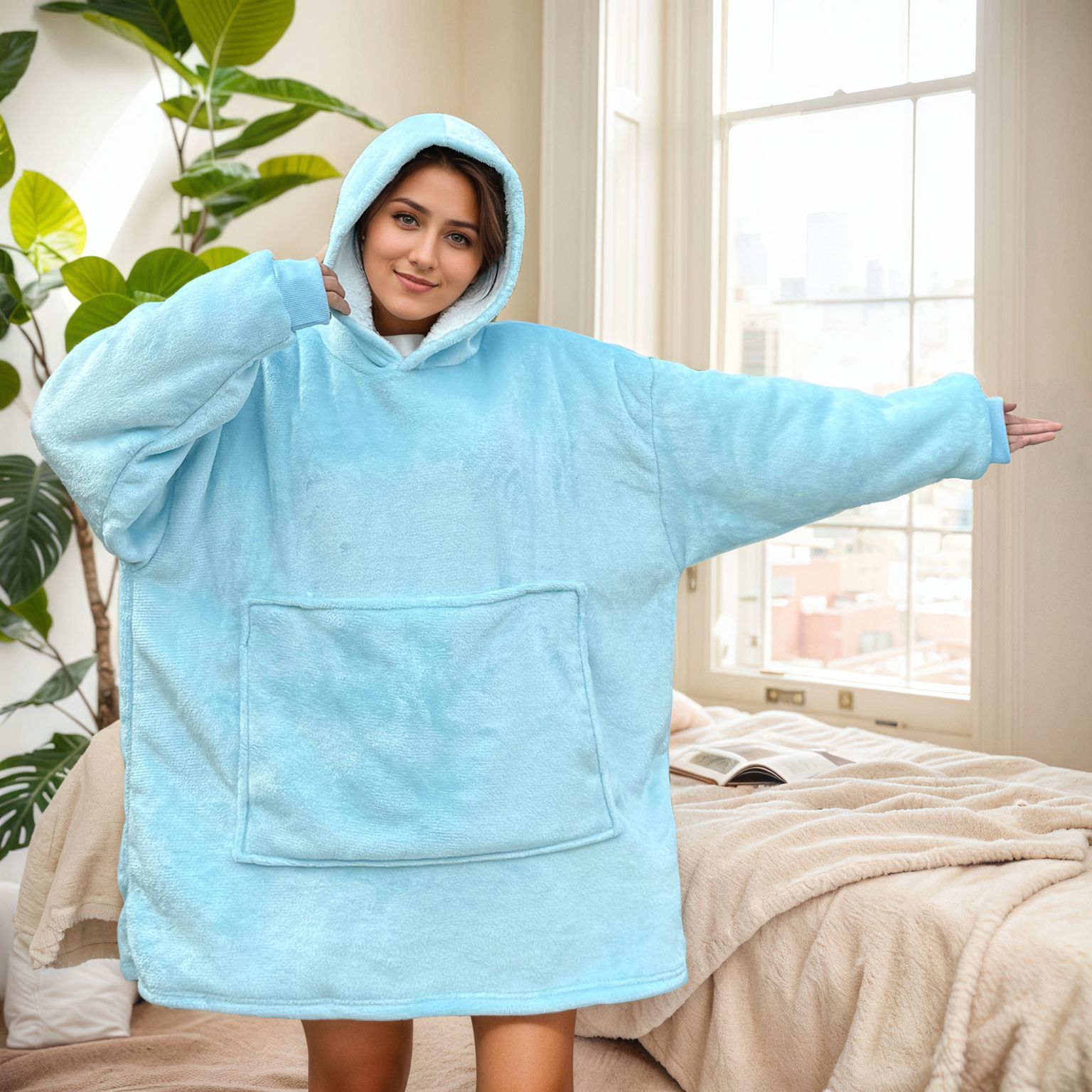 크로스보더 플란넬 두꺼운 양털 잠옷 후드티 텔레비전 담요 방한복 가정용 편안한 의류스토어 가기
