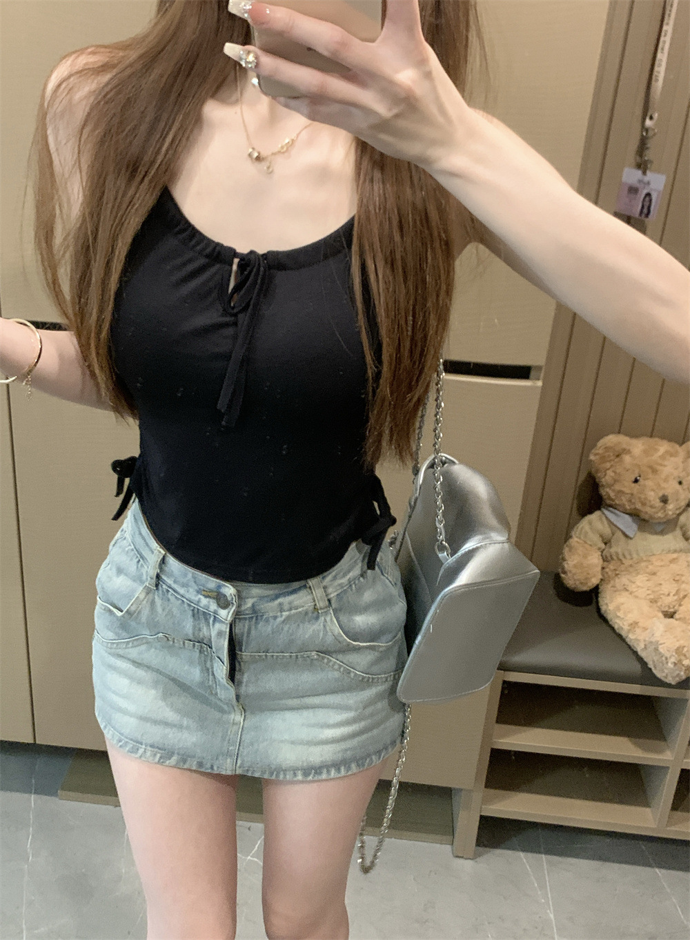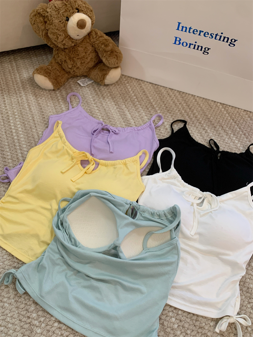 6901 # Sweet Spice Girl Drawstring 레이스 카미솔 여름 슬림 핏 슬림 짧은 외부 착용 민소매 아름다운 백탑스토어 가기