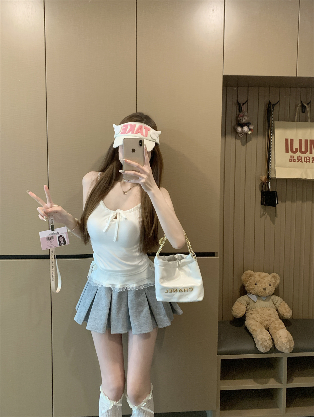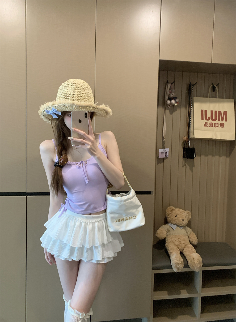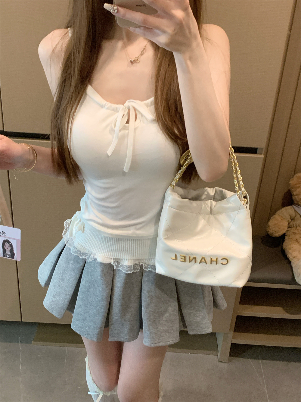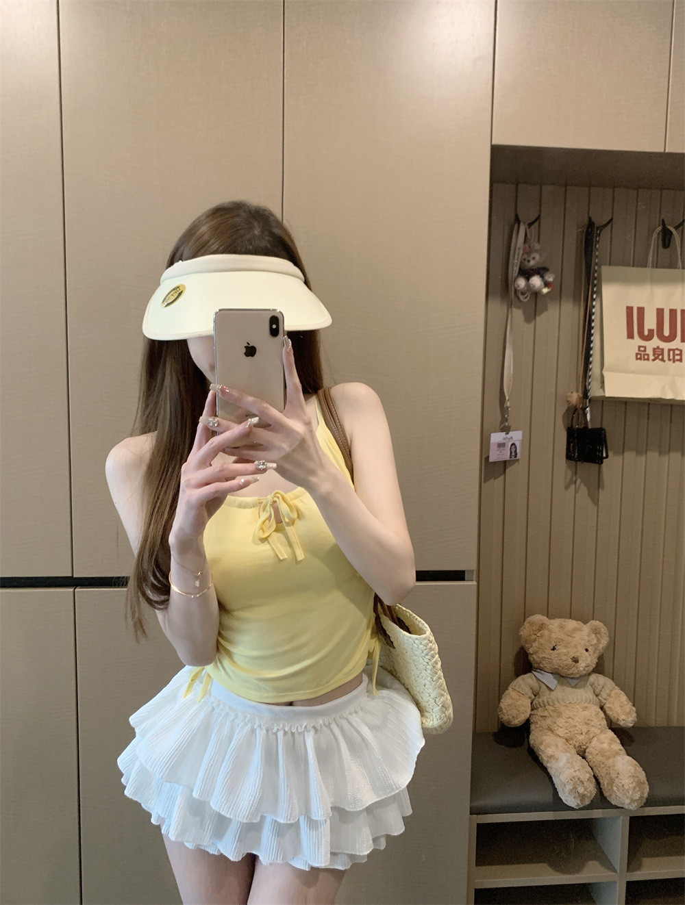 6901 # Sweet Spice Girl Drawstring 레이스 카미솔 여름 슬림 핏 슬림 짧은 외부 착용 민소매 아름다운 백탑