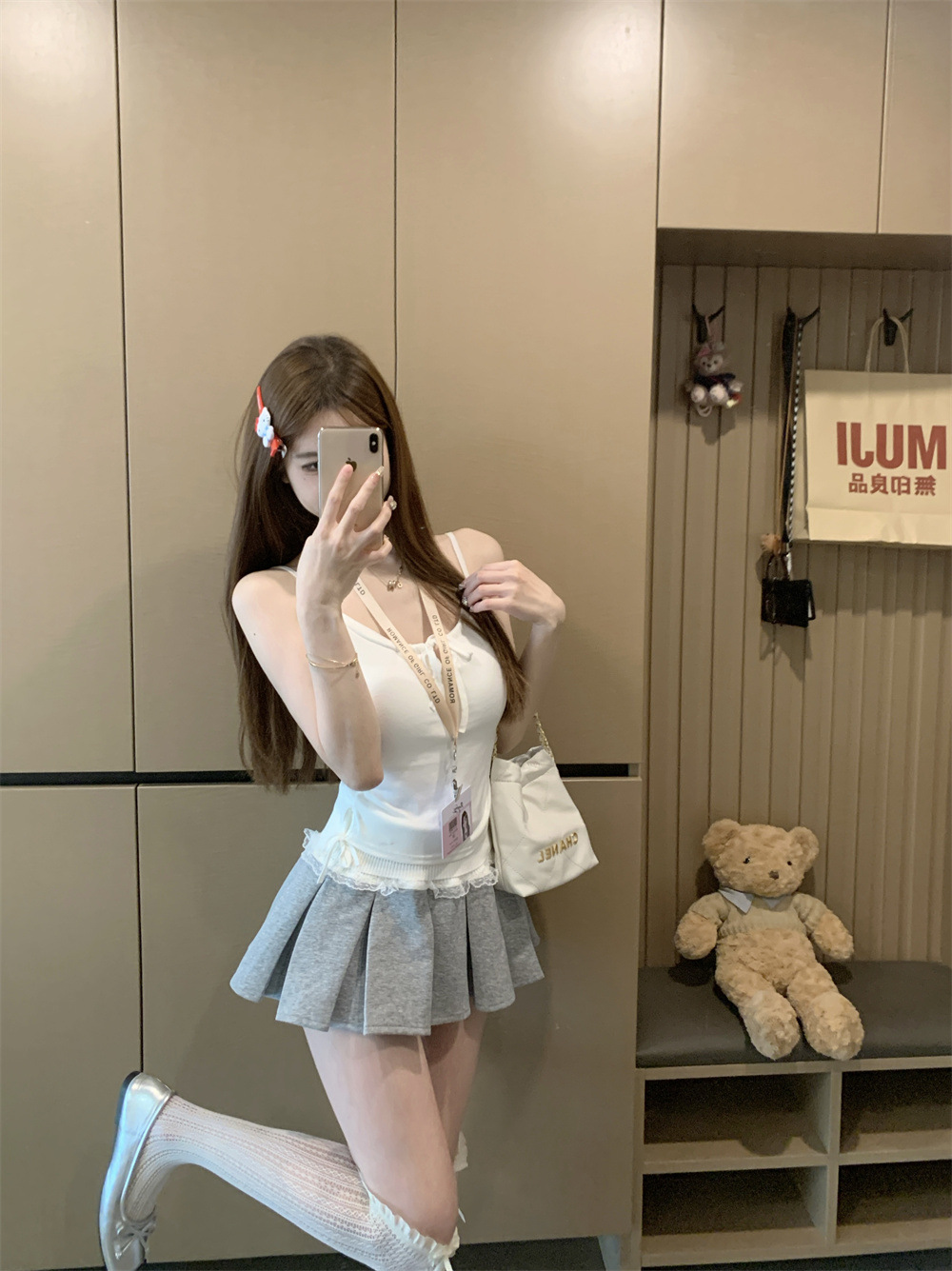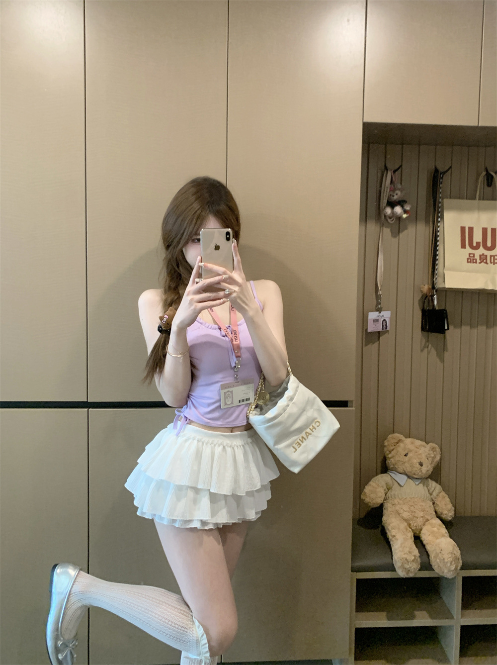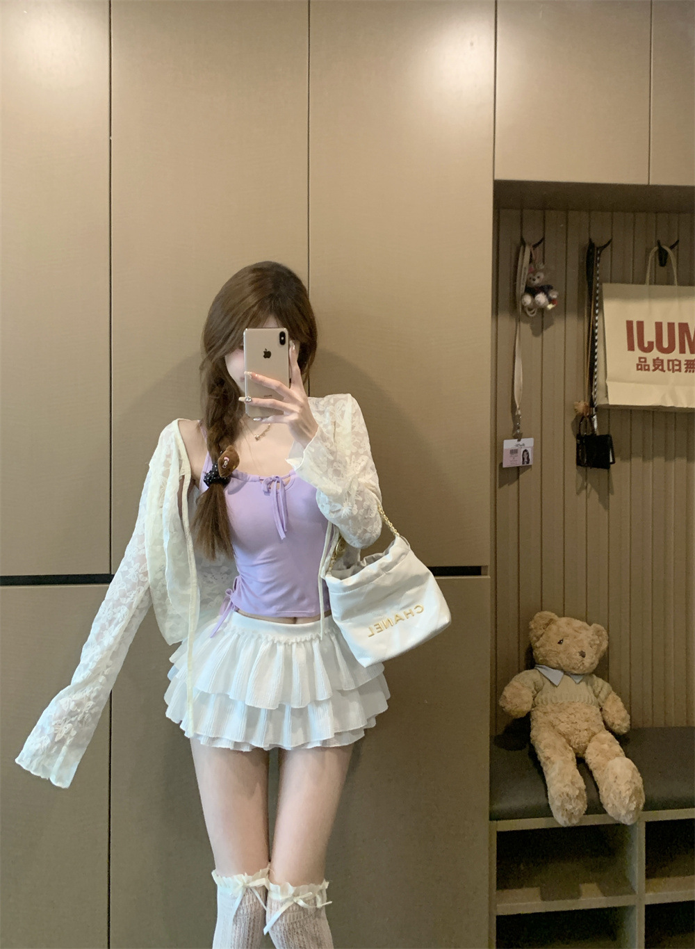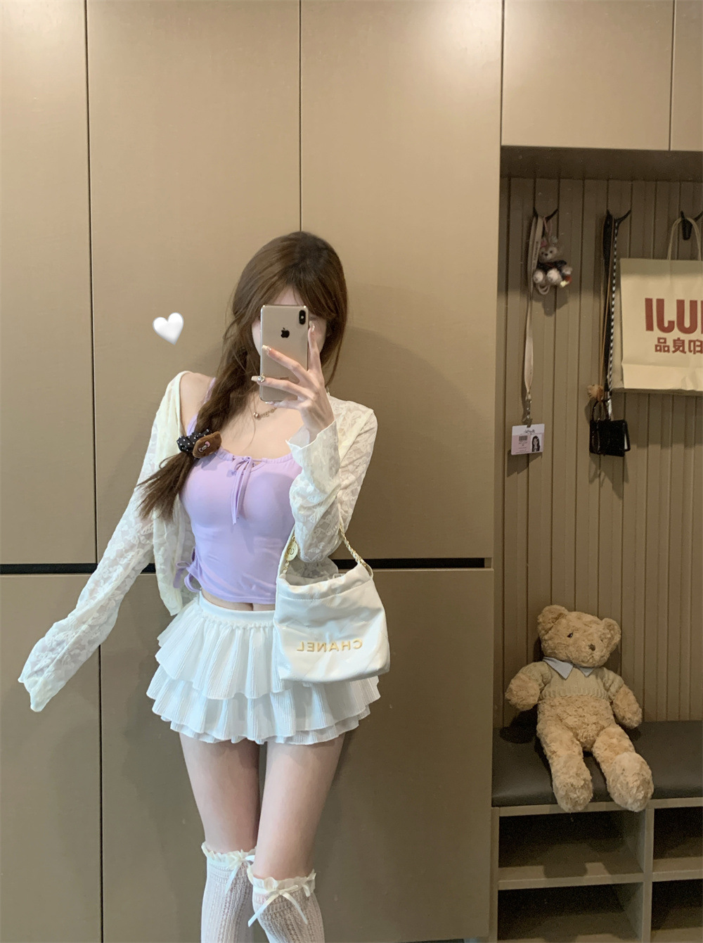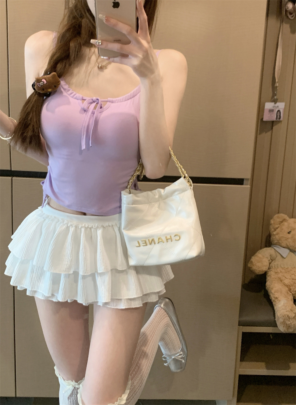 6901 # Sweet Spice Girl Drawstring 레이스 카미솔 여름 슬림 핏 슬림 짧은 외부 착용 민소매 아름다운 백탑
