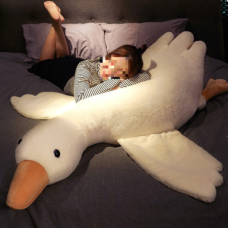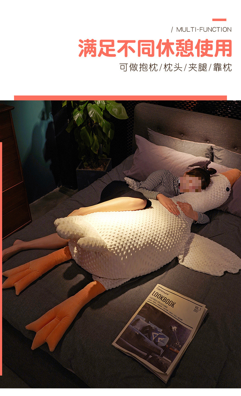큰 흰색 거위 긴 베개 소녀 다리 오리 봉제 장난감 인형 소녀 침대 인형스토어 가기