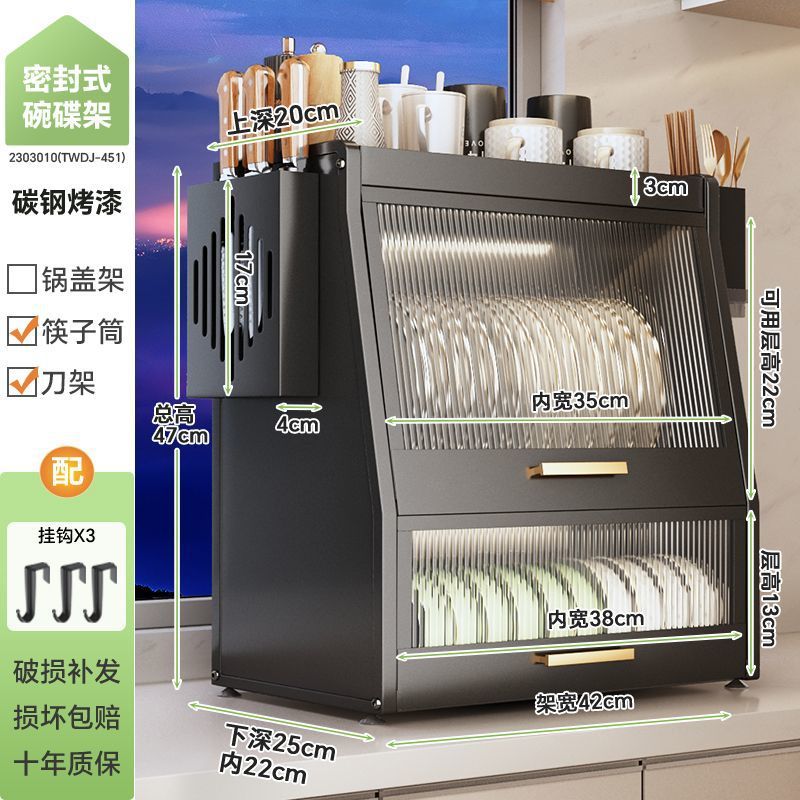 새로운 주방 접시 저장 랙 가정용 다기능 테이블 상단 저장 판 젓가락 저장 랙 방진 찬장스토어 가기