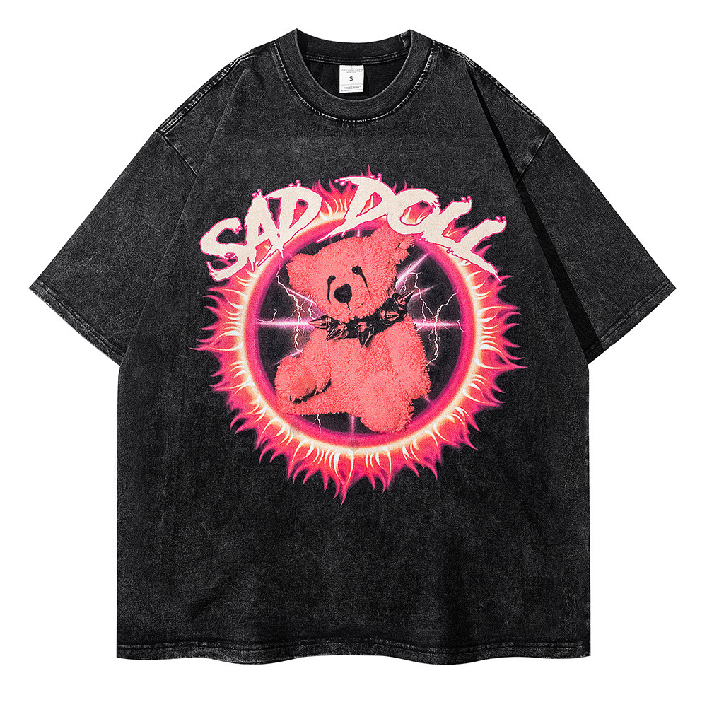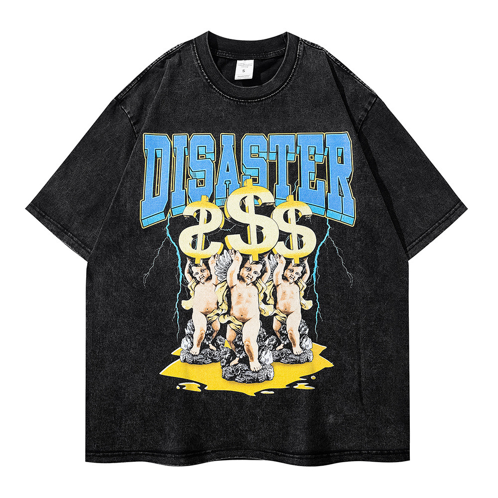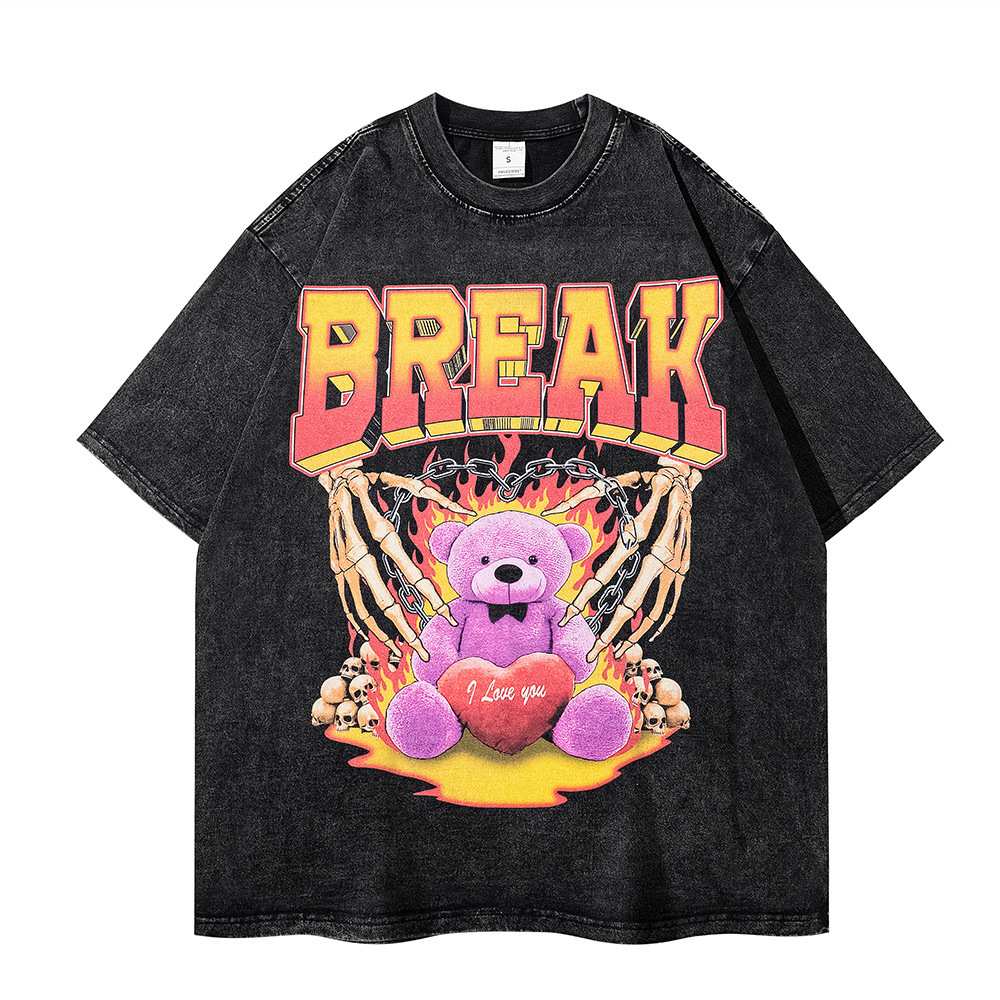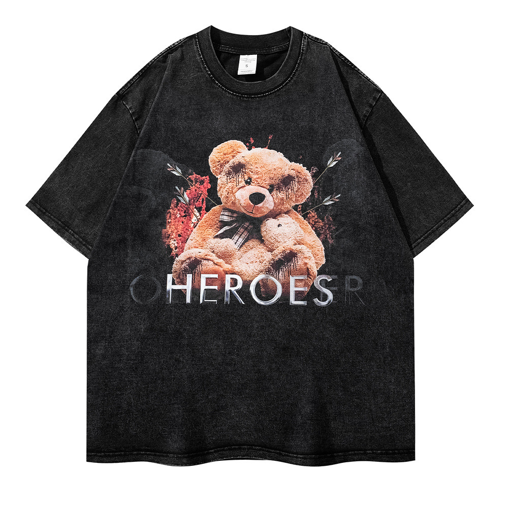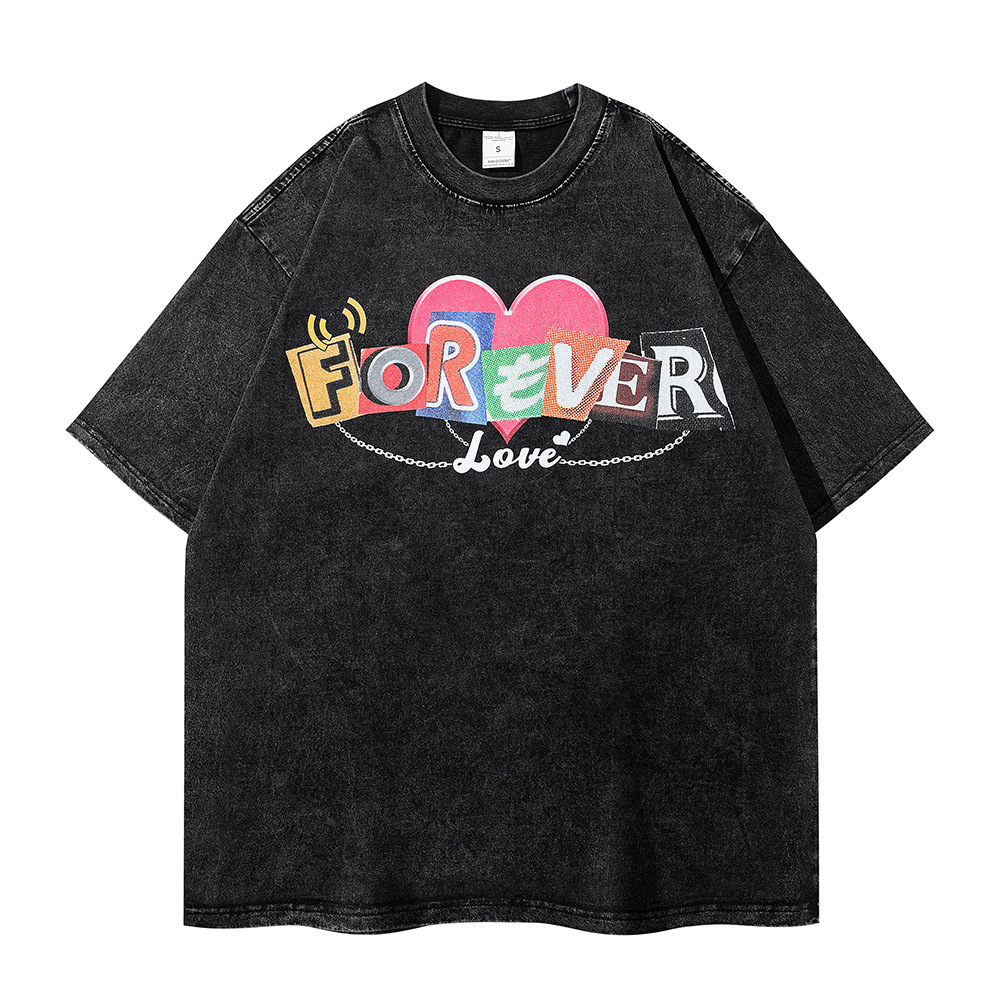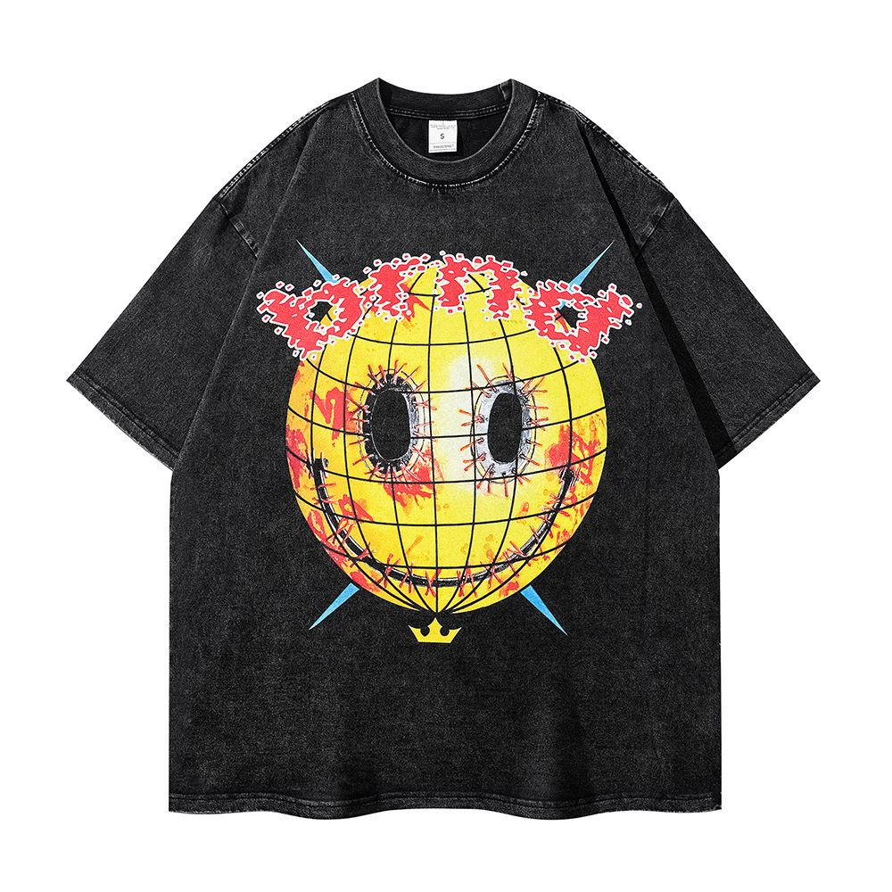 만화 반팔 티셔츠 남성 여름 미국 복고풍 패션 브랜드 워시 올드 루즈 힙합 하이 스트리트 반팔 티셔츠 남성과 여성
