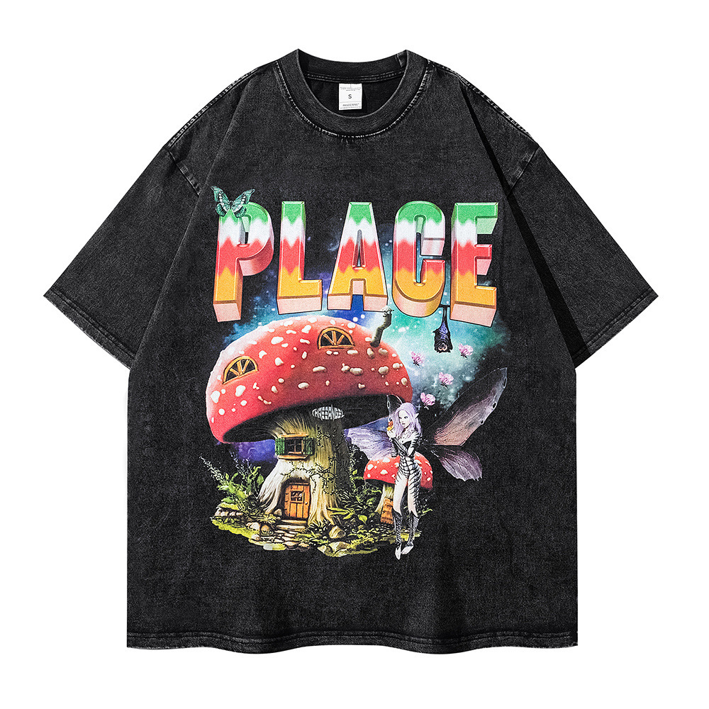 만화 반팔 티셔츠 남성 여름 미국 복고풍 패션 브랜드 워시 올드 루즈 힙합 하이 스트리트 반팔 티셔츠 남성과 여성스토어 가기