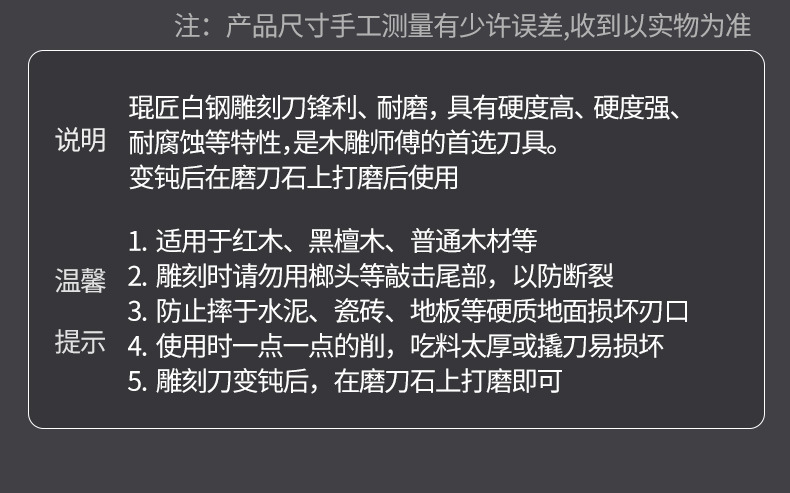 M & 조각 칼 손 조각 목수 세트 단단한 나무 조각 핵 조각 도구 화이트 스틸 나이프 씰 카버