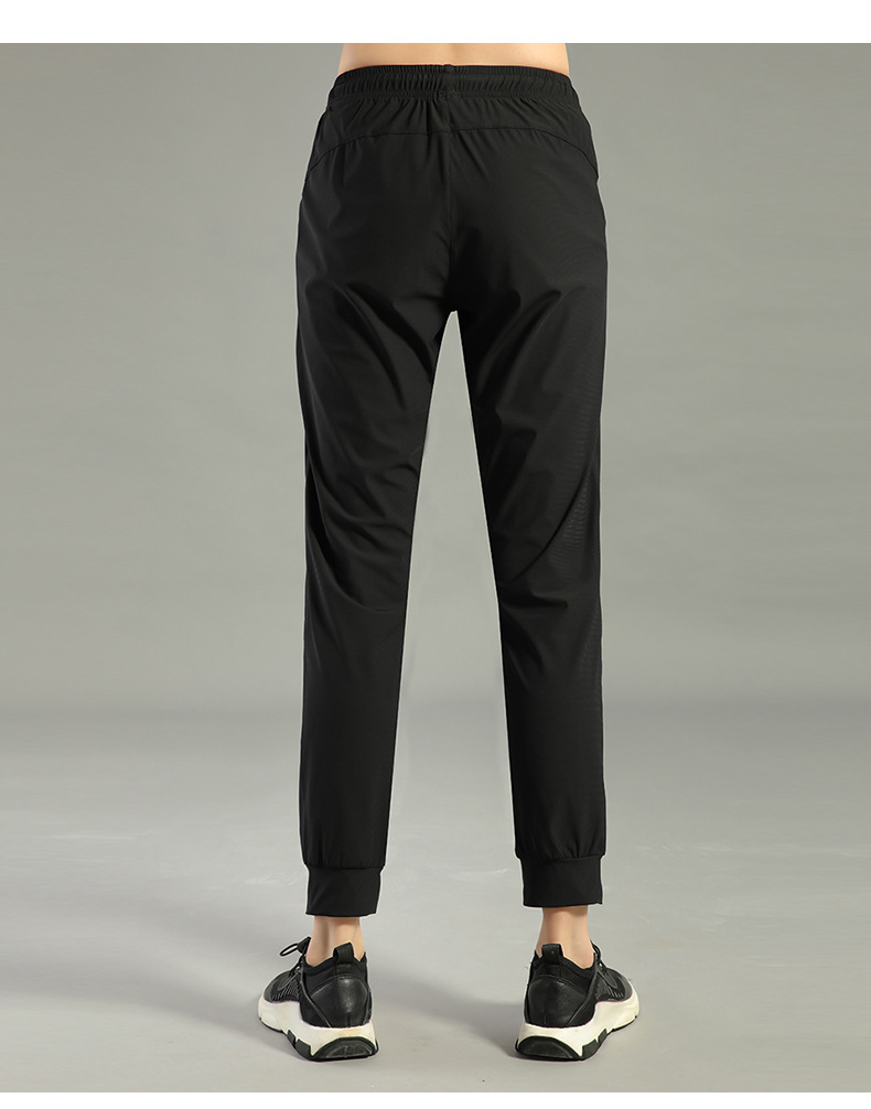 여름 얇은 커플 야외 스포츠 아이스 실크 에어컨 바지 남자 통기성 느슨한 탄성 빠른 건조 캐주얼 바지 여자