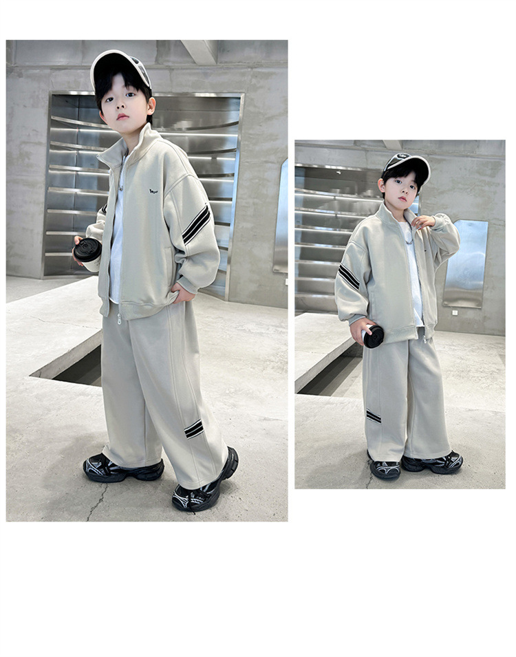 소년의 봄 가을 세트 2025 새로운 중대형 어린이 서양식 캐주얼 2 피스 땀 봄 옷 어린이 야구 옷