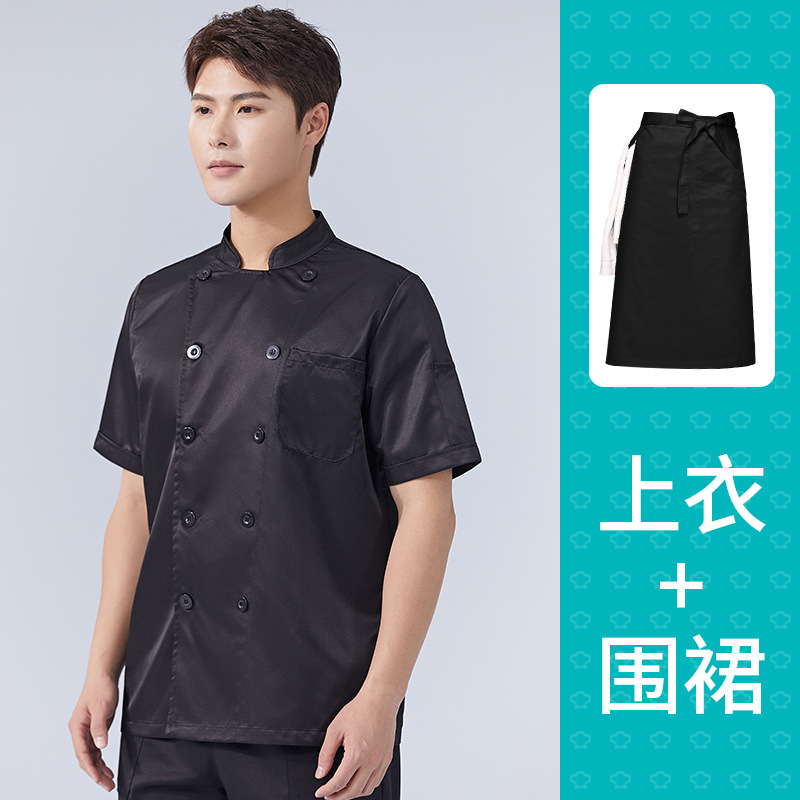 • [아이스실크 청량감_반팔] LS-C20 셰프복 블랙 + 블랙 방수대형 앞치마