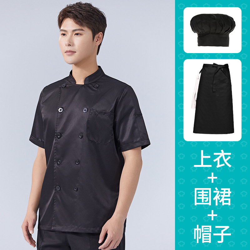 • [아이스실크 청량감_반팔] LS-C20 셰프유니폼 블랙 + 블랙 방수대형 앞치마 + 블랙 버섯모자