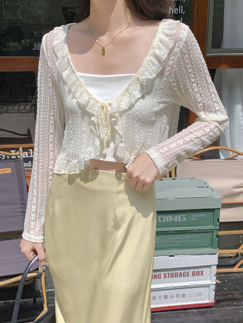 보헤미안 스타일 블라우스 달리 사이버 인기 작은 목도리 리장 할로우 그리드 여성용 여름 태양 보호 비치 여름복스토어 가기