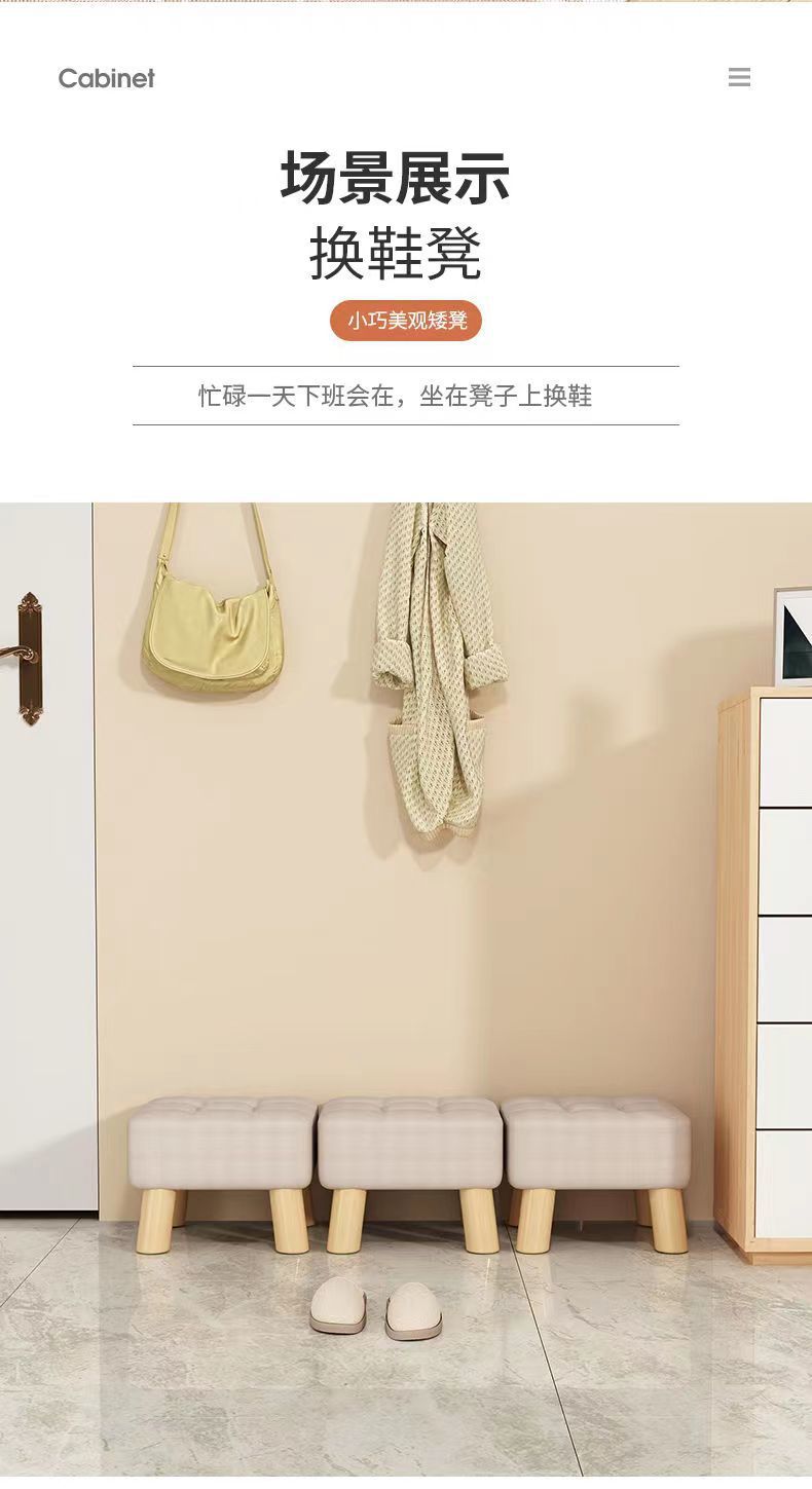 가벼운 고급 작은 의자 부드러운 가방 문 신발 의자 거실 소파 의자 솔리드 우드 작은 벤치 창조적 인 발 커피 테이블 의자