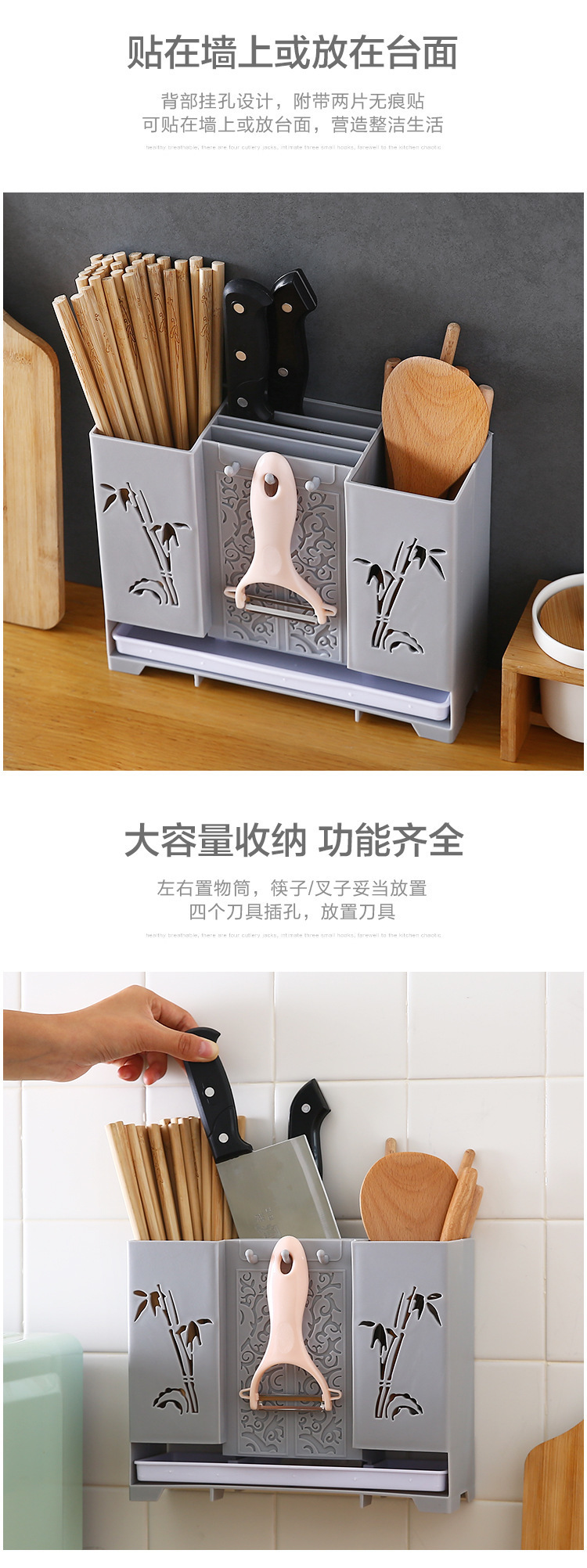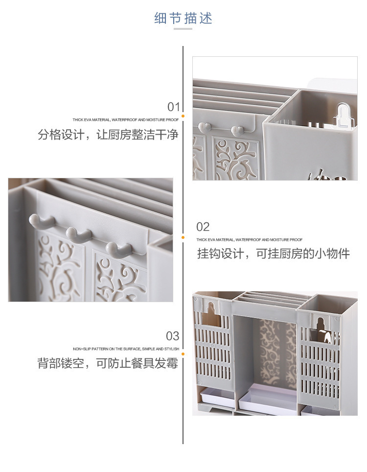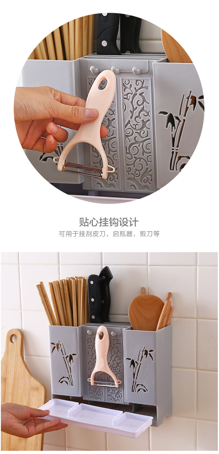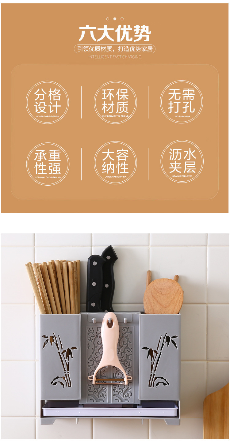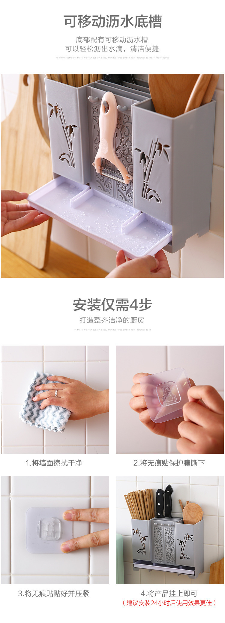 쌀밭 벽에 장착 된 가정용 젓가락 케이지 펀치 프리 젓가락 홀더 배수 두꺼운 주방 회색 베이지 기타 플라스틱