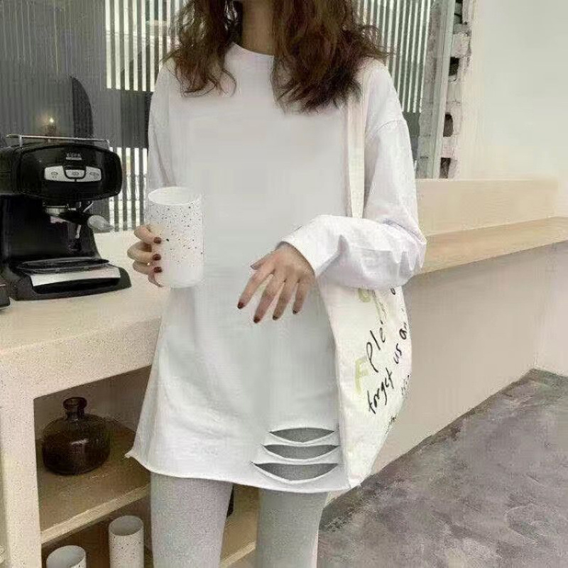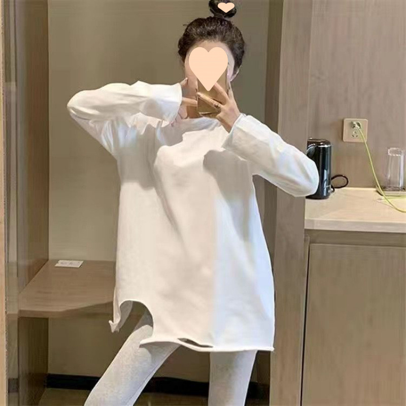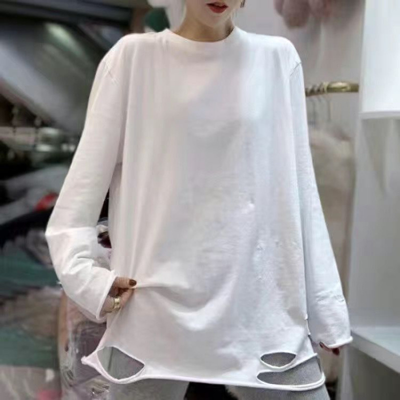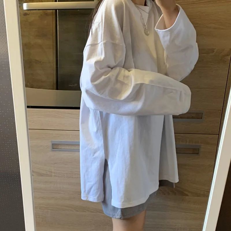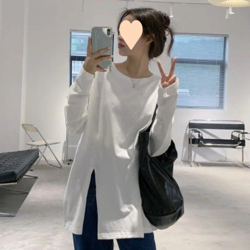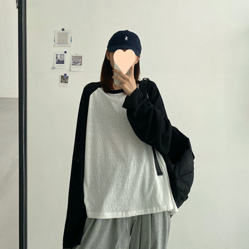 화이트 베이스 셔츠 여성의 봄과 가을 새로운 긴팔 내부 탑 한국 느슨한 면 검은 목 셔츠스토어 가기