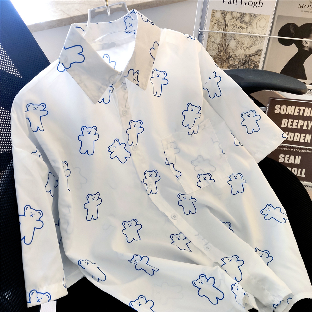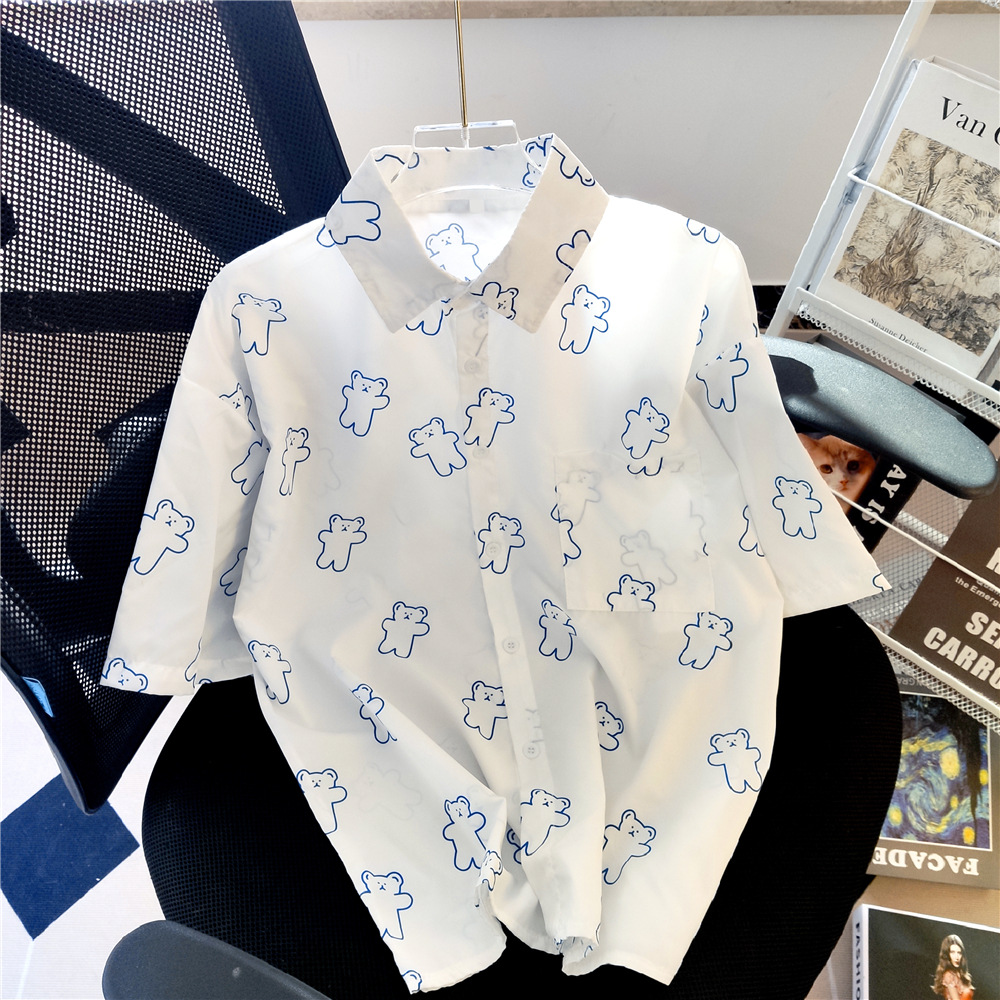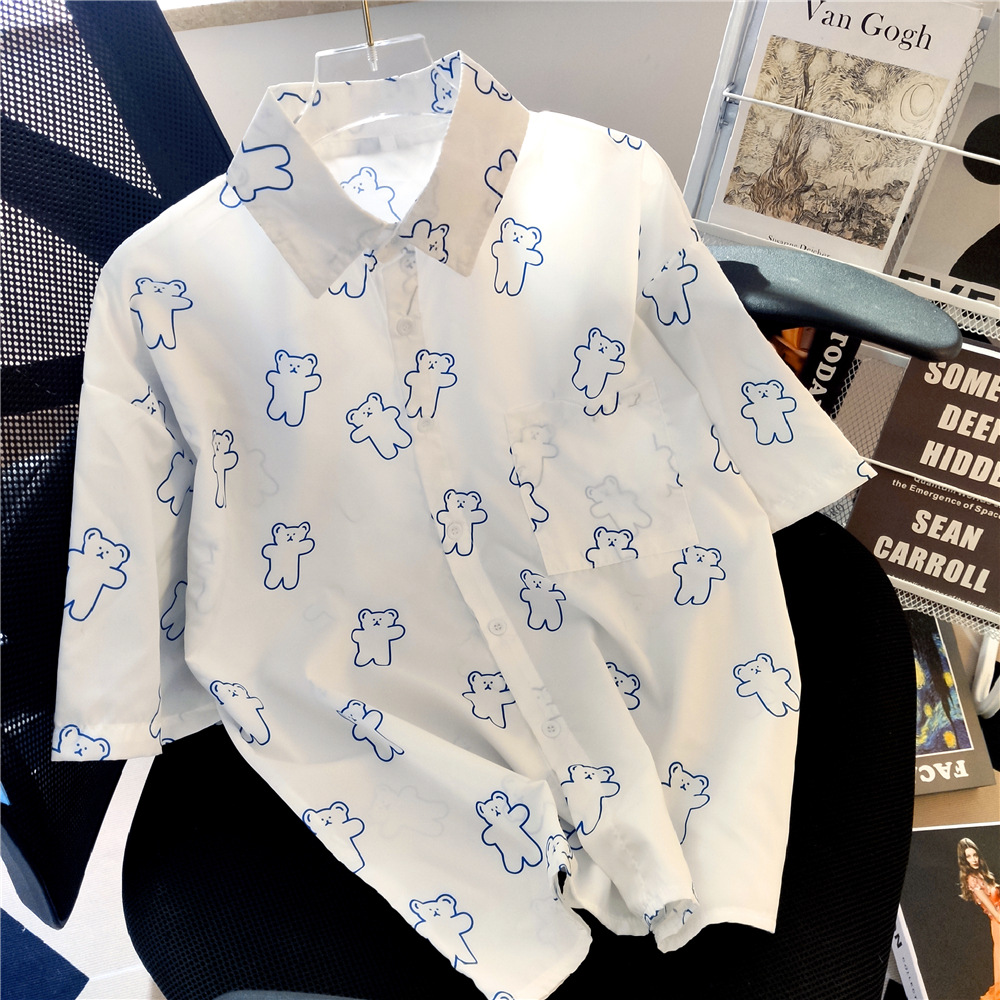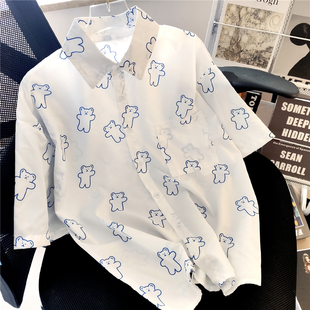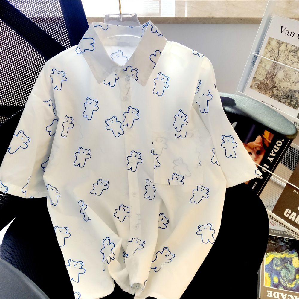 실제 샷 재고 외부 착용 연령 감소 반 소매 셔츠 여성용 최고 짧은 소매 셔츠 카디건 얇은 쉬폰 셔츠 여름스토어 가기