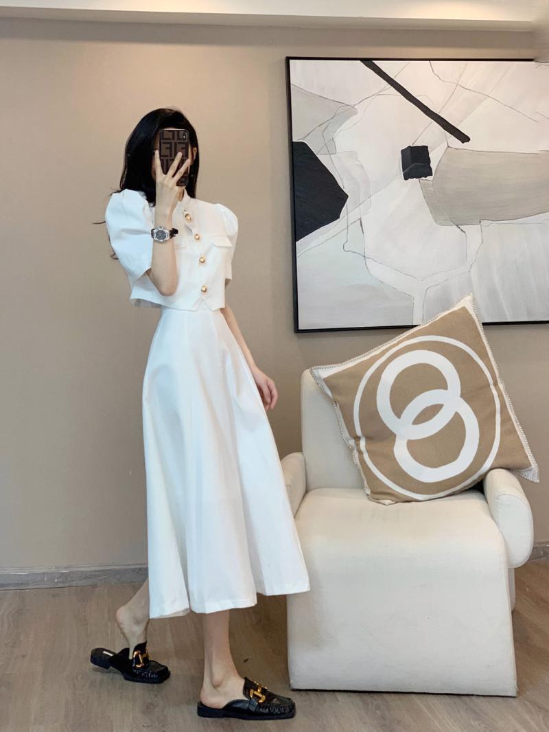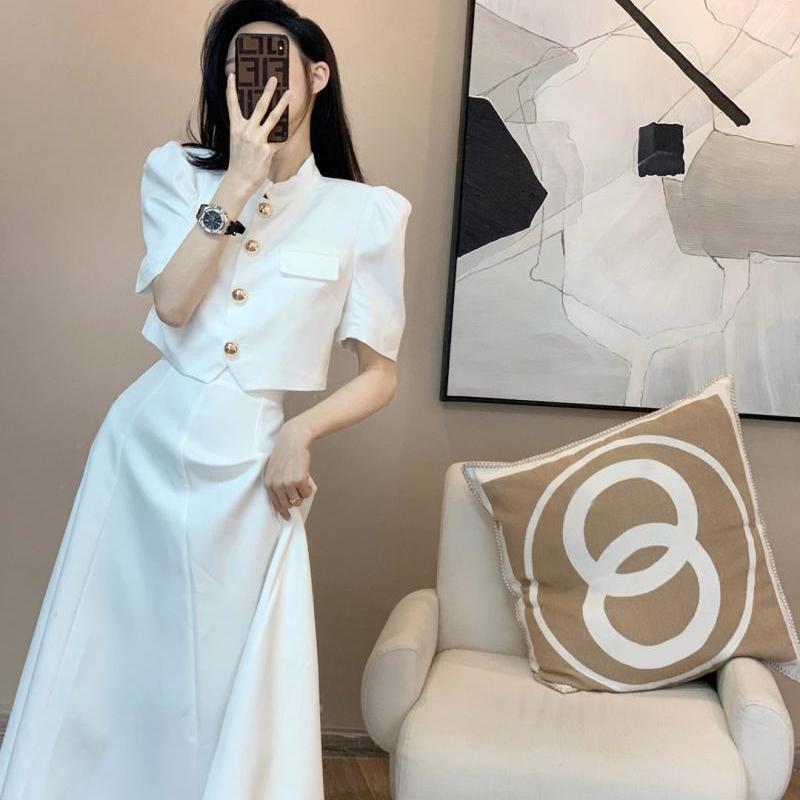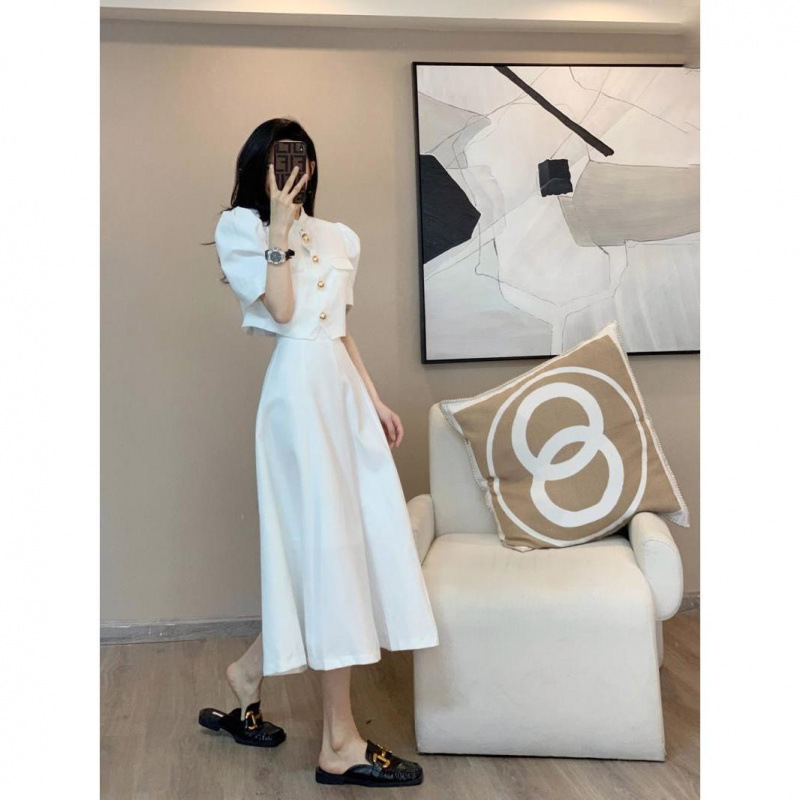 2025 여름 새로운 화이트 하이 엔드 센스 작은 스타일 캐주얼 패션 나이 감소 스커트 투피스 세트 여성 의류스토어 가기