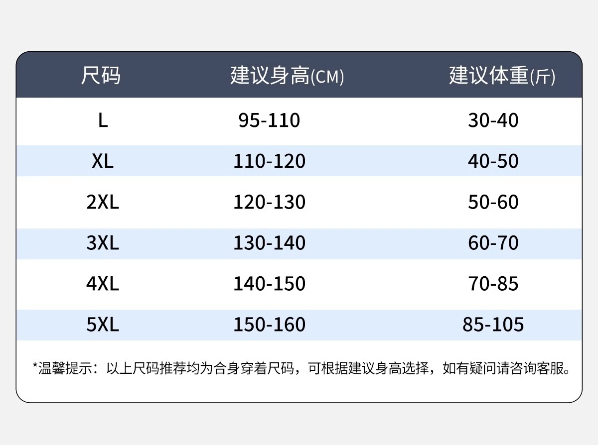 • 4XL [권장 키 140-150cm, 몸무게 35-42.5kg ]