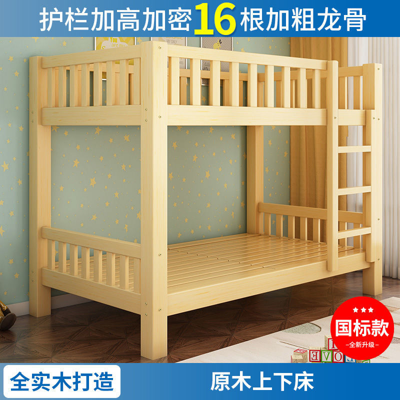 국가 표준 단단한 나무 상하 침대 더블 침대 직원 기숙사 높고 낮은 어린이 어머니 침대 2 층 어린이 상하 침대 침대 침대