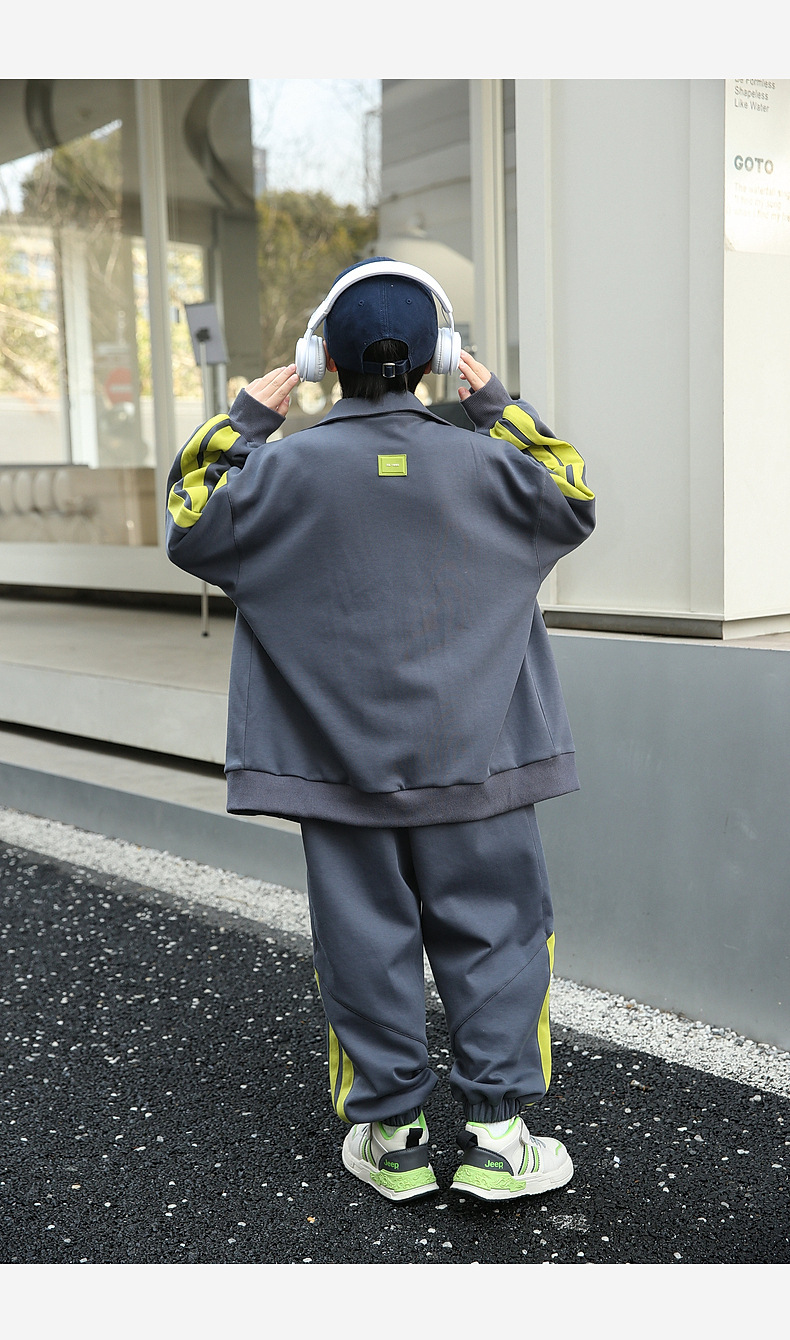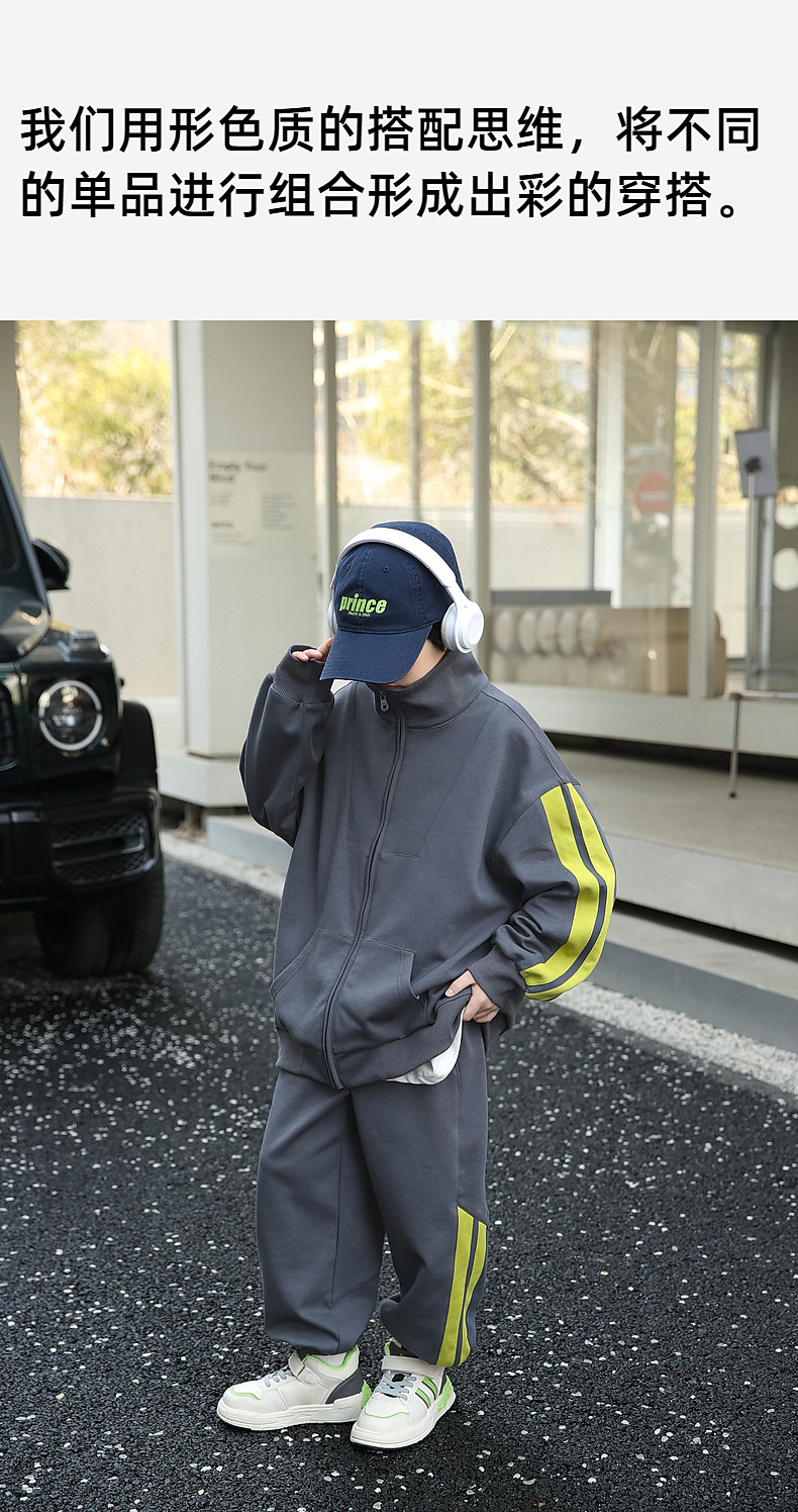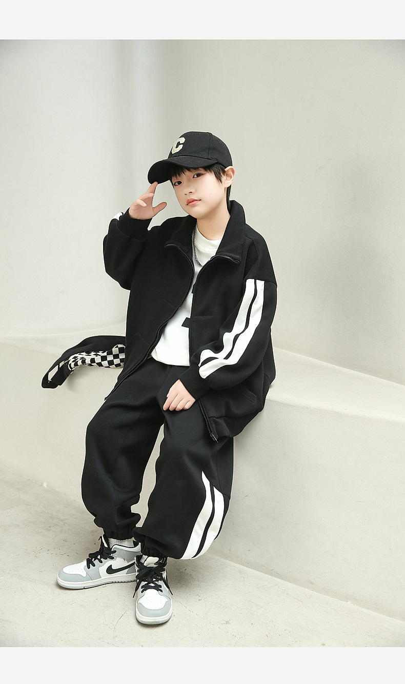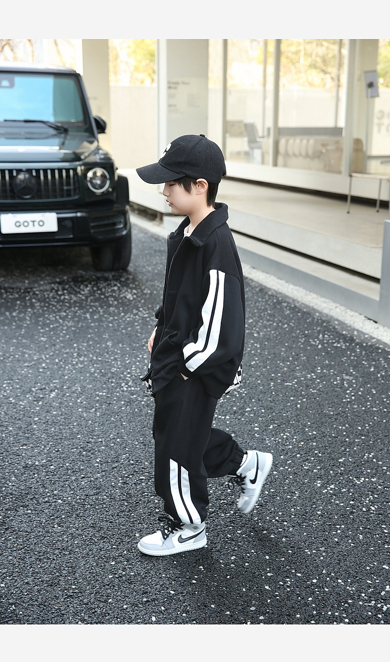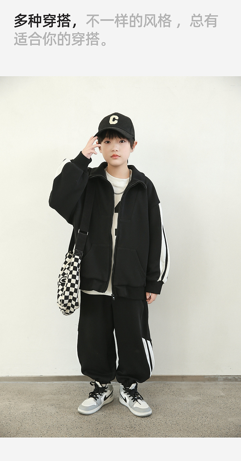 팬더 원원 배색 스트라이프 남아 가을 세트 고급 양면 브라켓 지퍼 스웨트셔츠 자켓 바지 투피스 세트스토어 가기