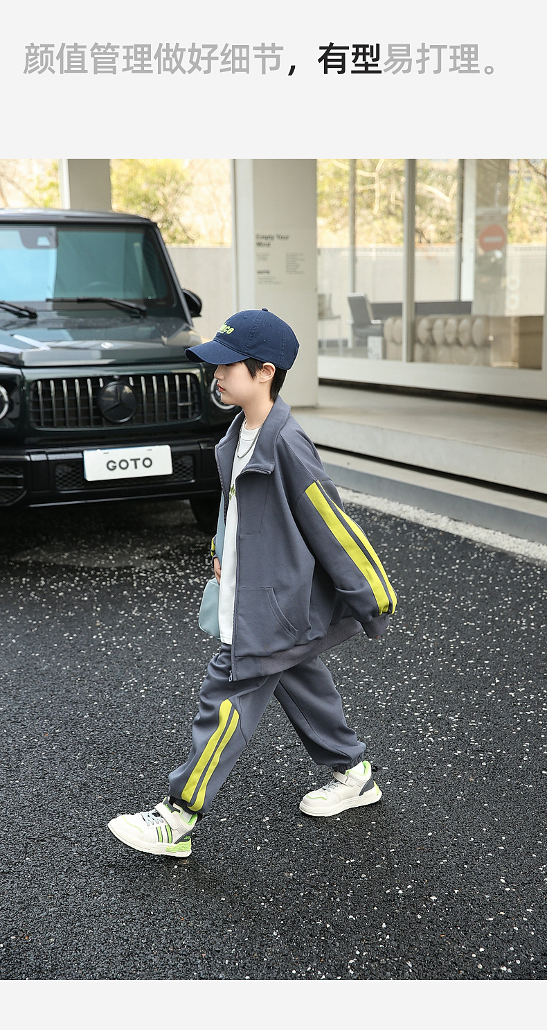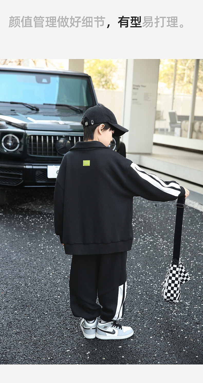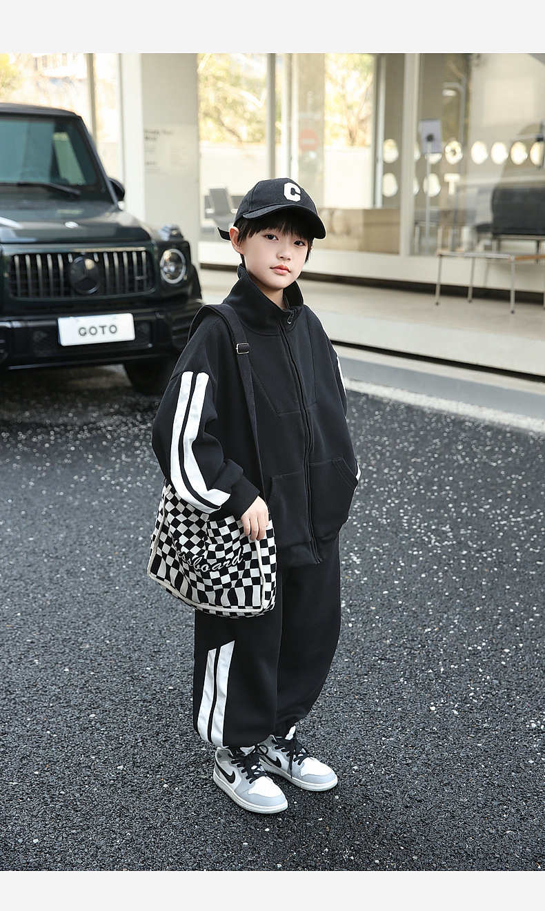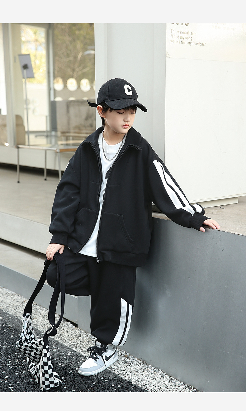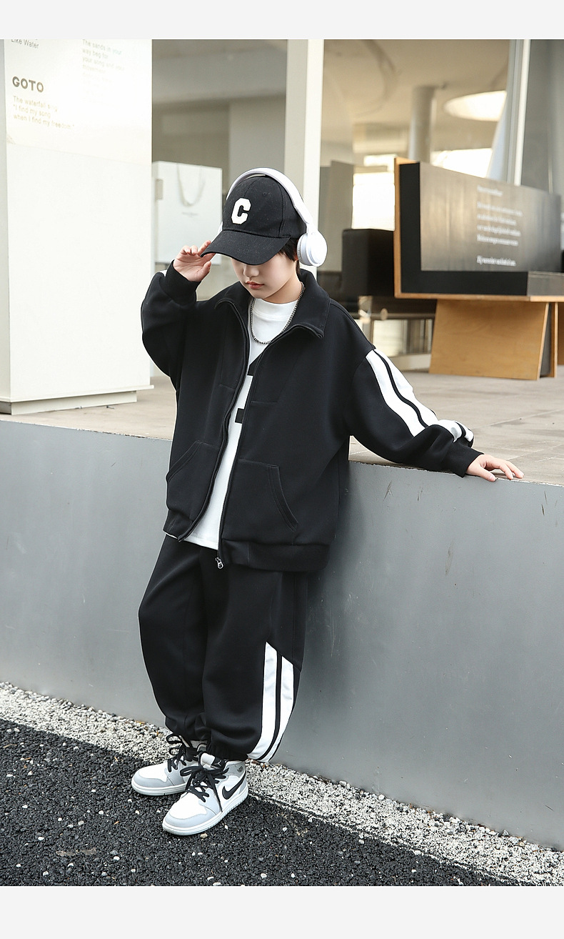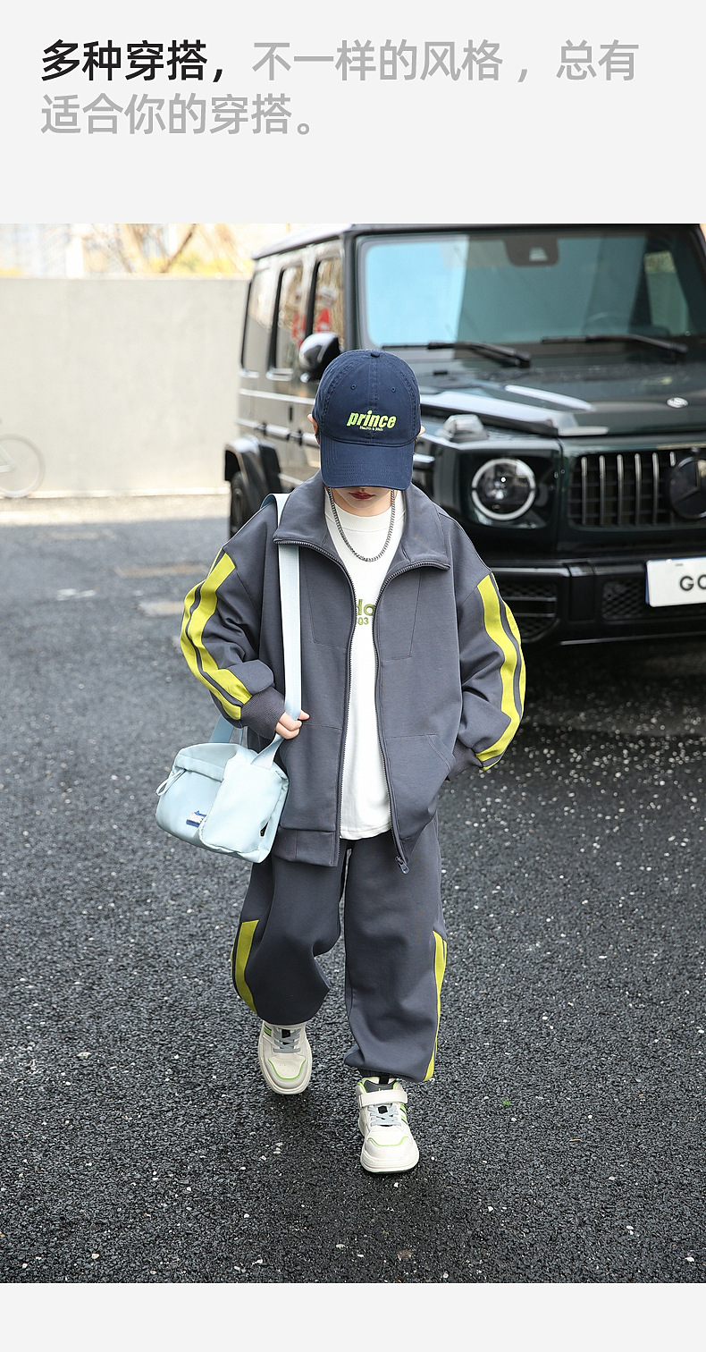 팬더 원원 배색 스트라이프 남아 가을 세트 고급 양면 브라켓 지퍼 스웨트셔츠 자켓 바지 투피스 세트스토어 가기