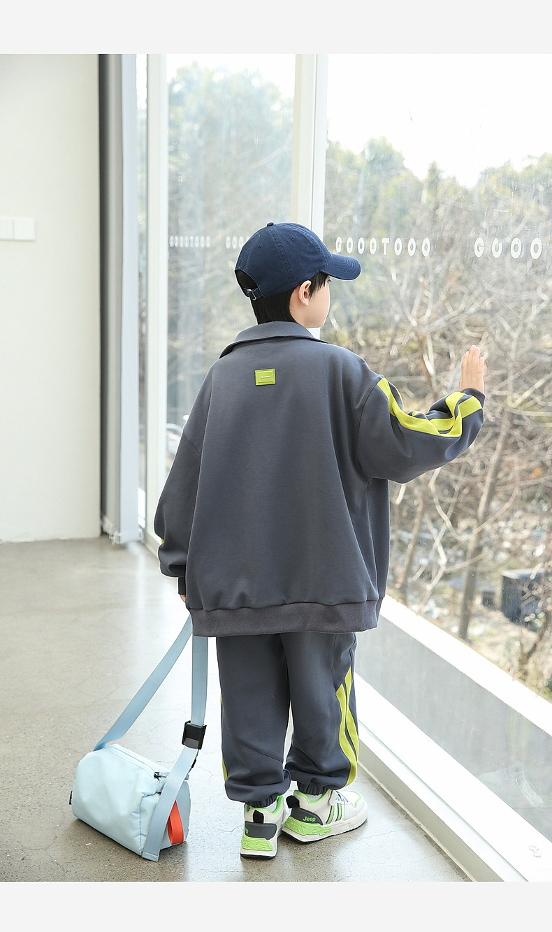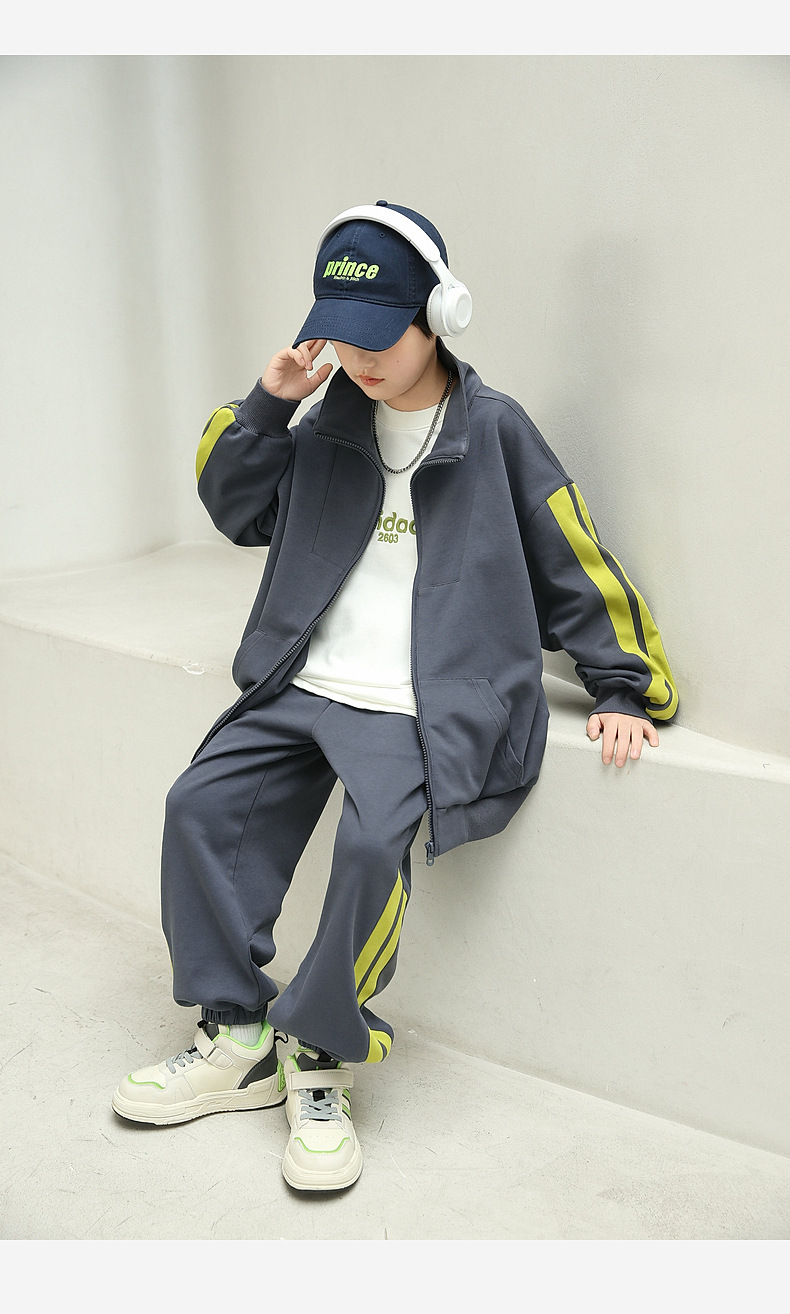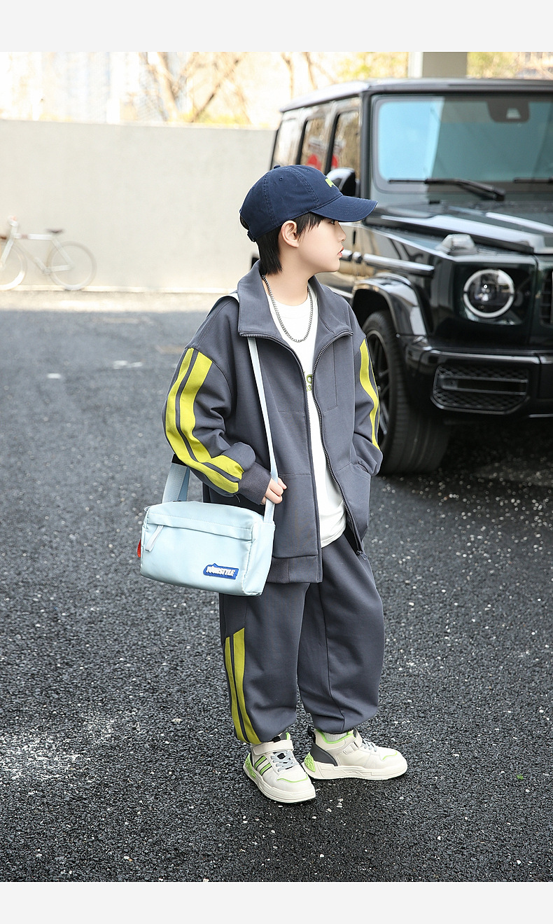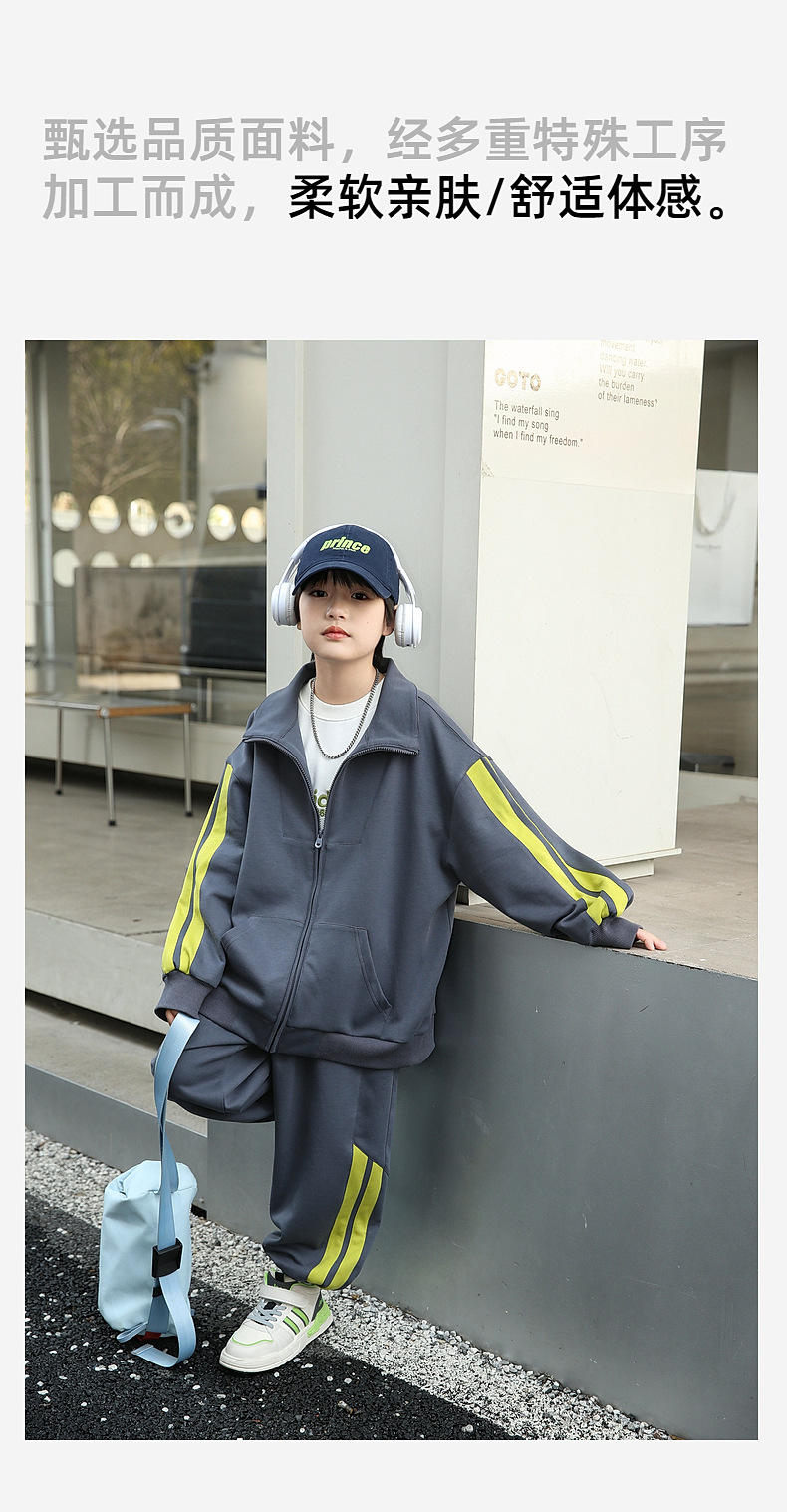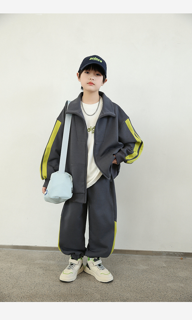 팬더 원원 배색 스트라이프 남아 가을 세트 고급 양면 브라켓 지퍼 스웨트셔츠 자켓 바지 투피스 세트