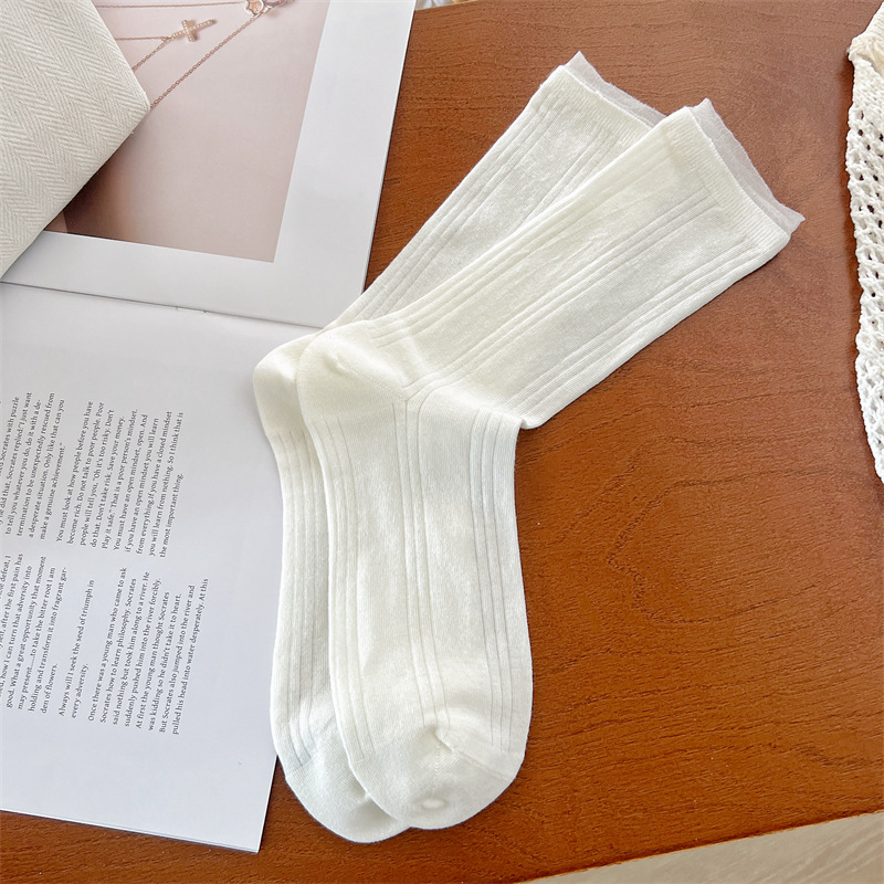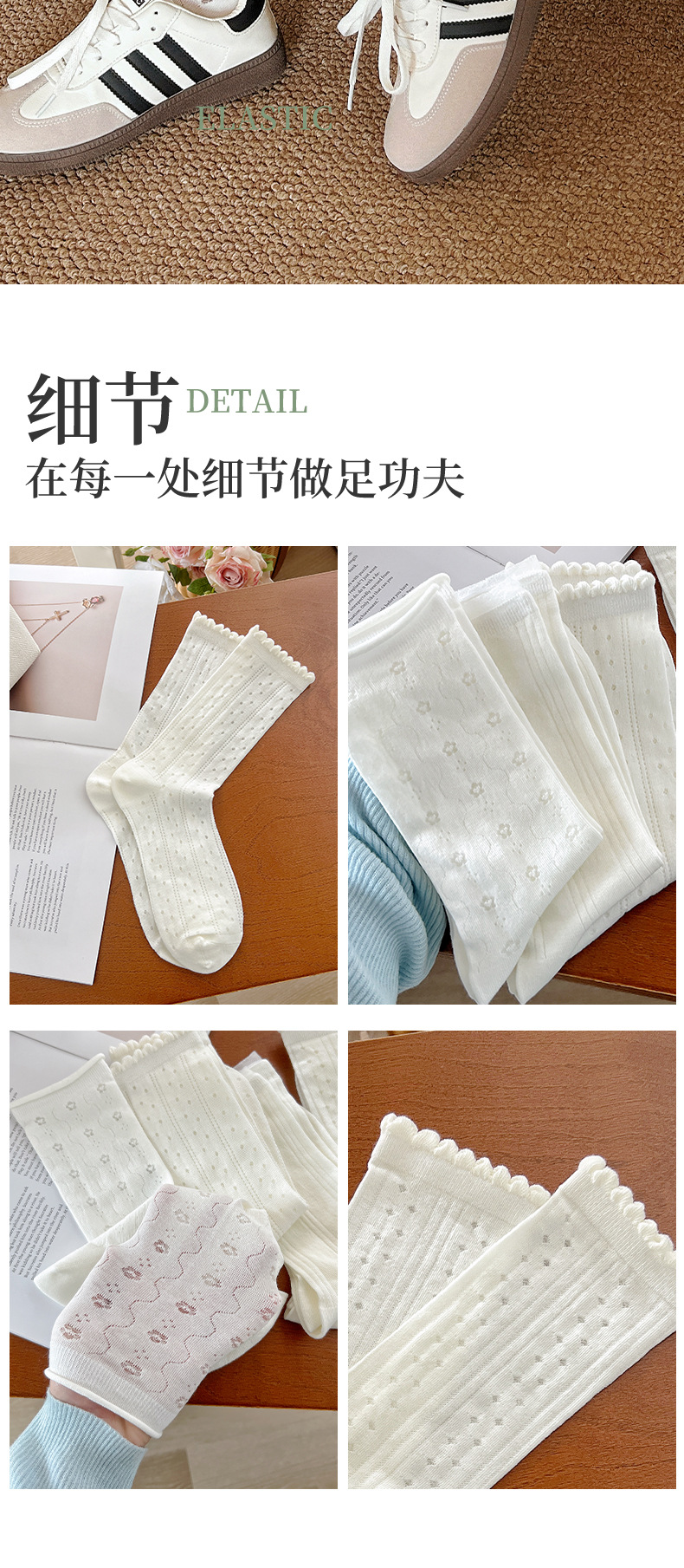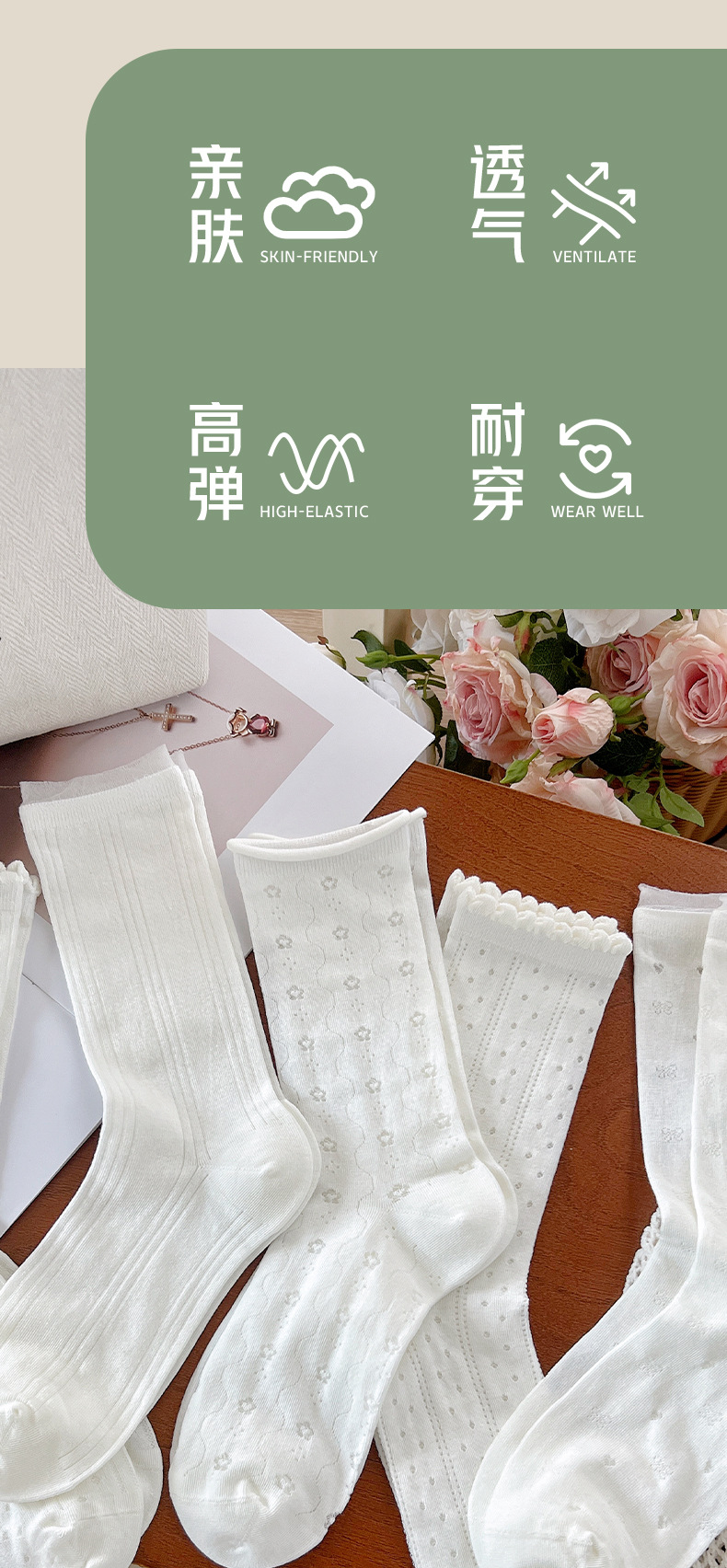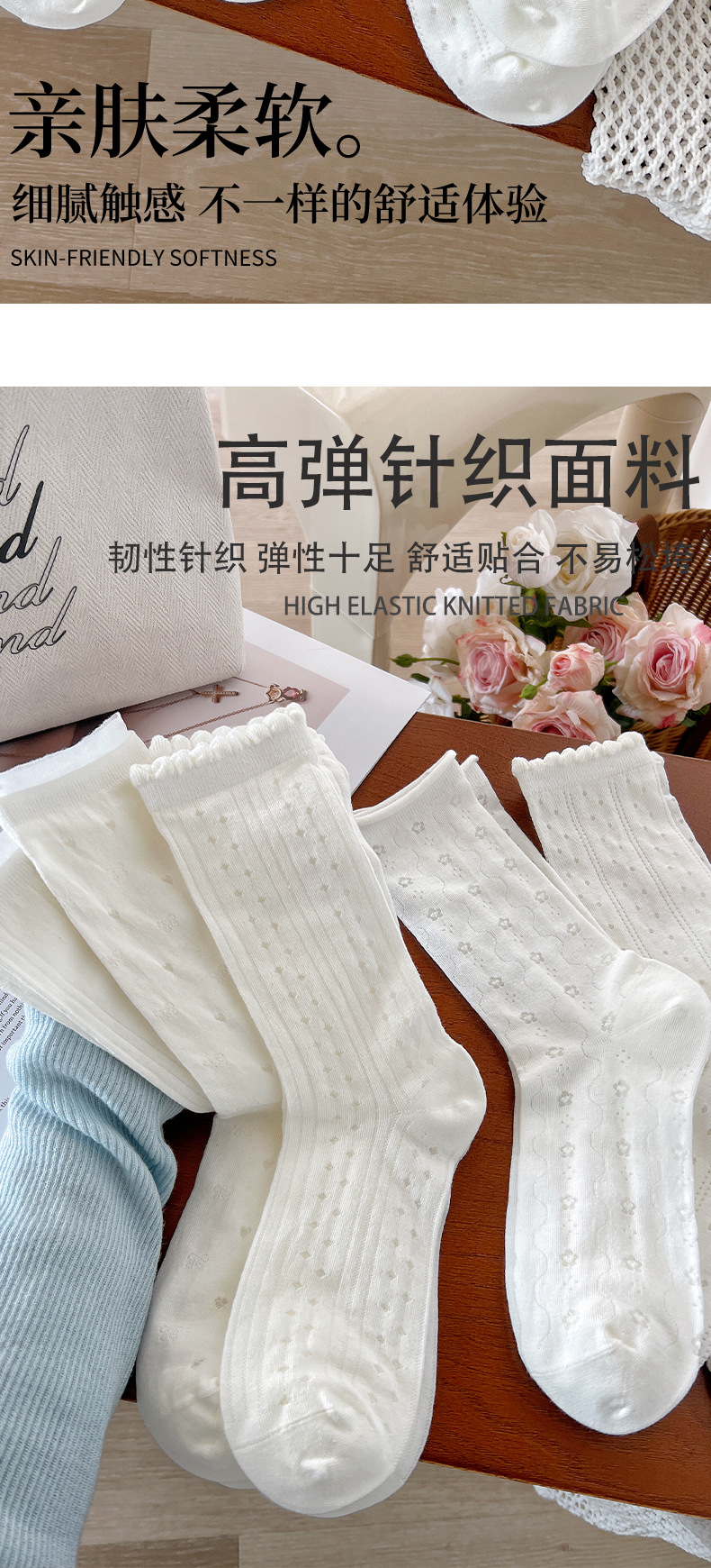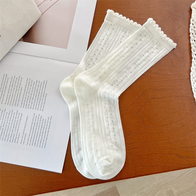 화이트 발레 스타일 할로우 양말 여성 중간 길이 양말 Instagram 유행 여름 얇은 더미 양말 일본 스타일 귀여운 JK 스타킹스토어 가기