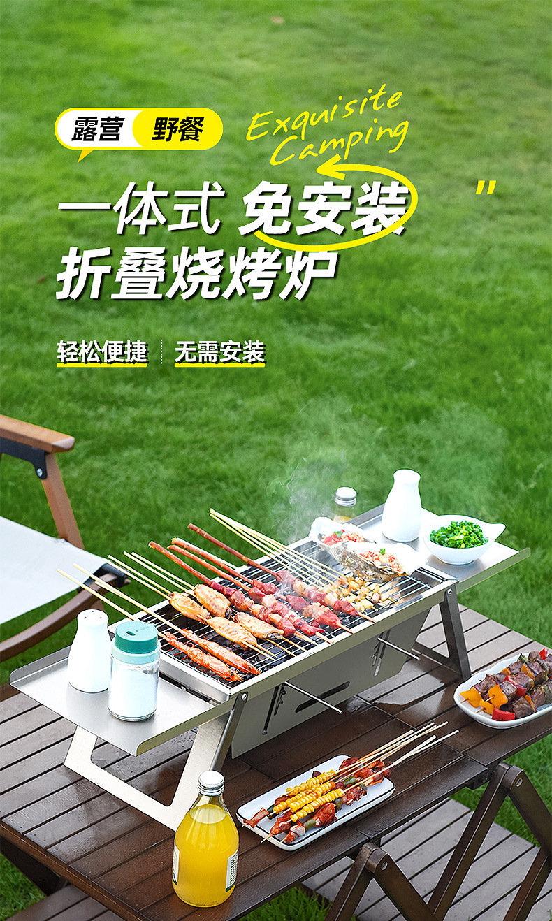 新型烧烤炉家用室内户外露营木炭不锈钢便携式折叠一体式烤肉架子