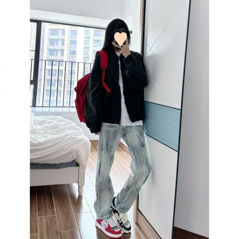 미국 타이 다이 청바지 여성의 가을 디자인 하이 스트리트 스트레이트 루즈 슬리밍 넓은 다리 바지