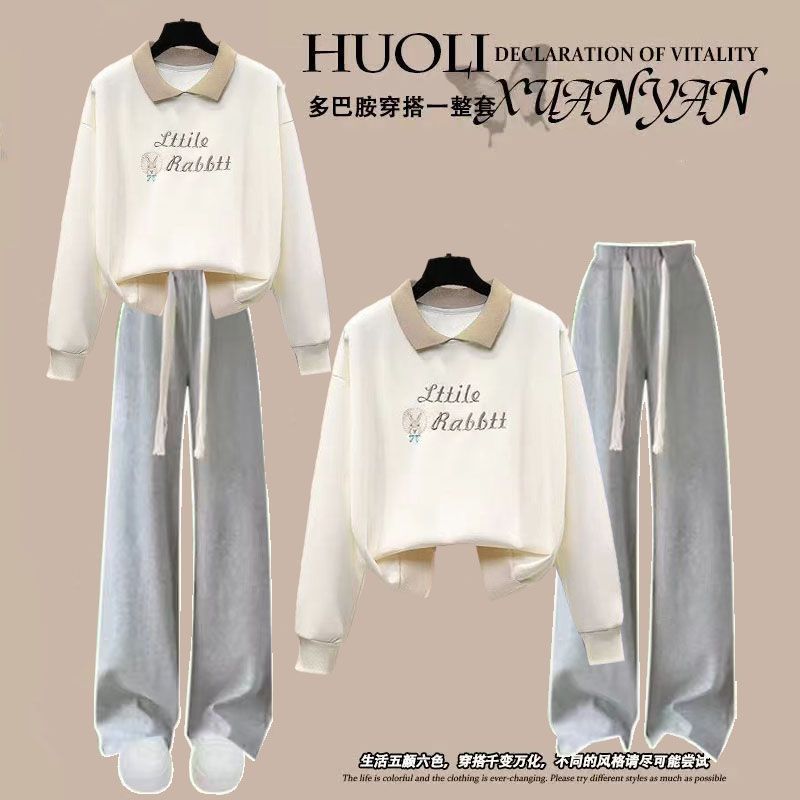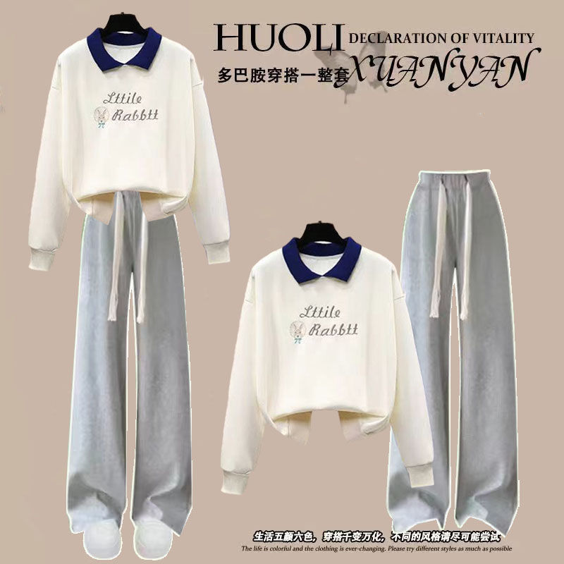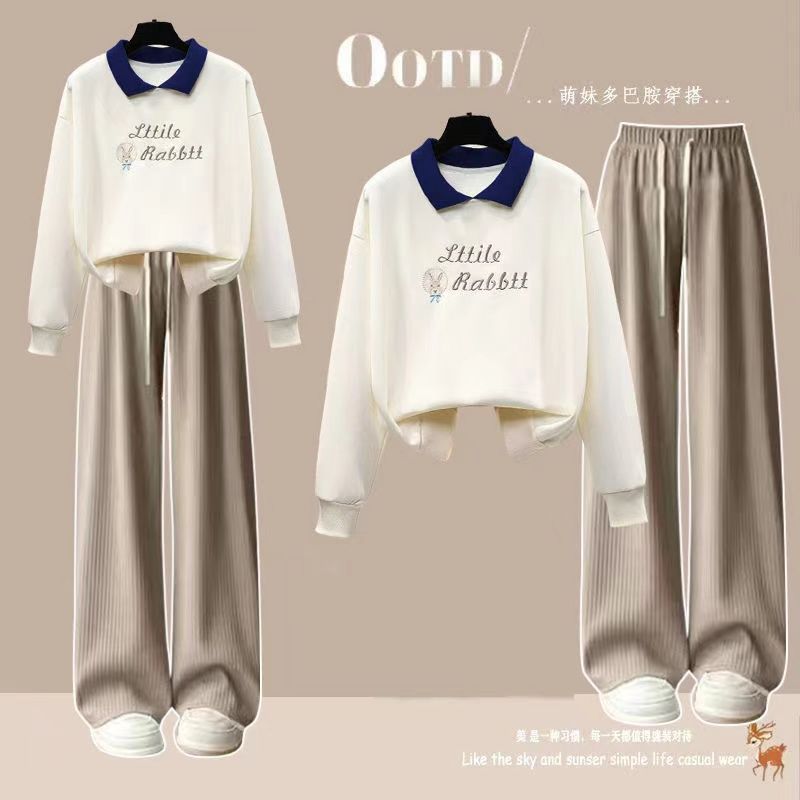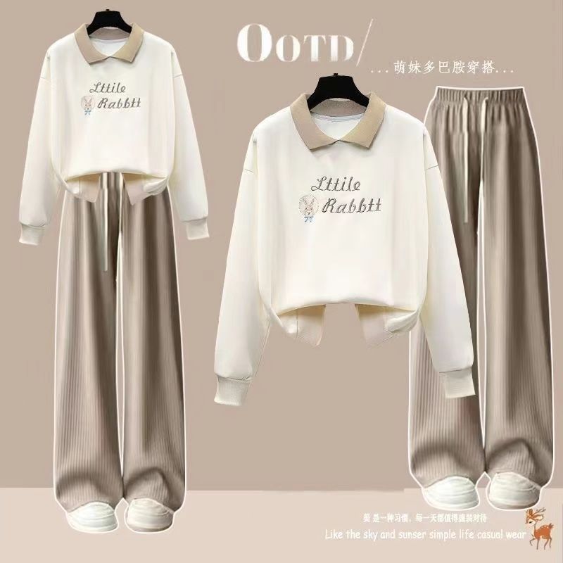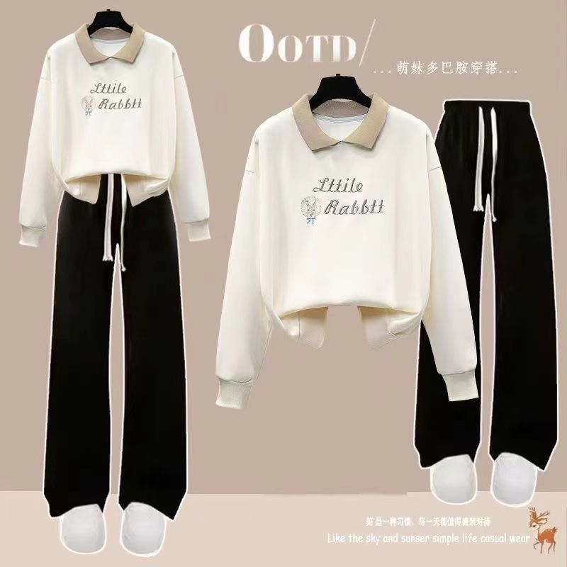 소녀 인터넷 연예인 느슨한 땀 세트 가을 2025 새로운 스타일 큰 어린이 서양식 넓은 다리 바지 투피스 소녀 가을 옷스토어 가기