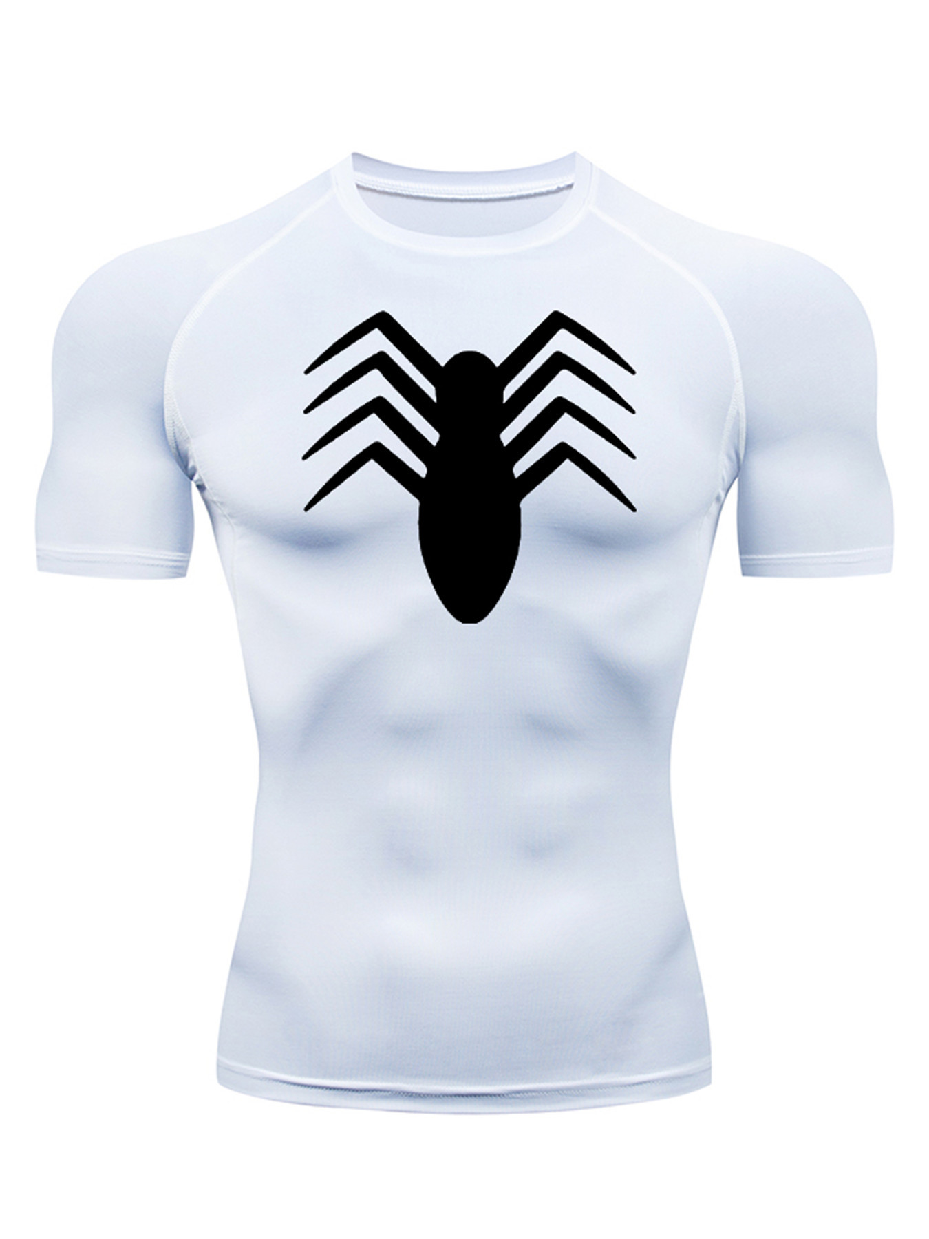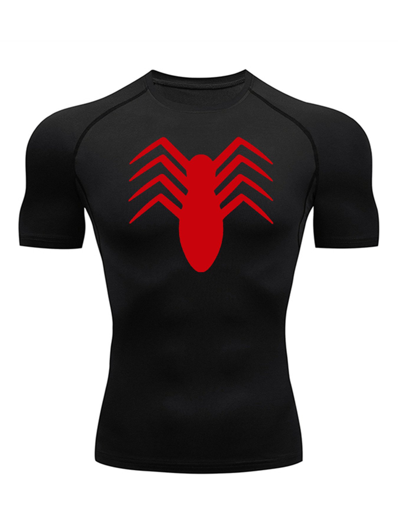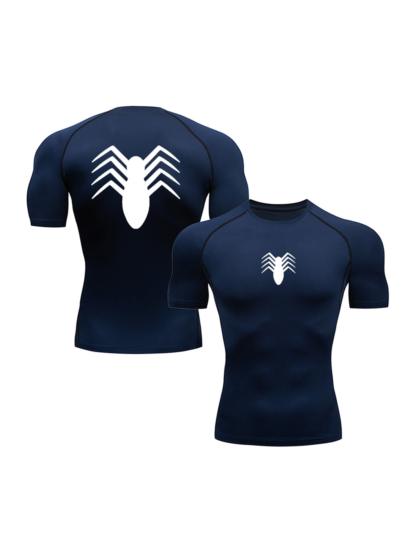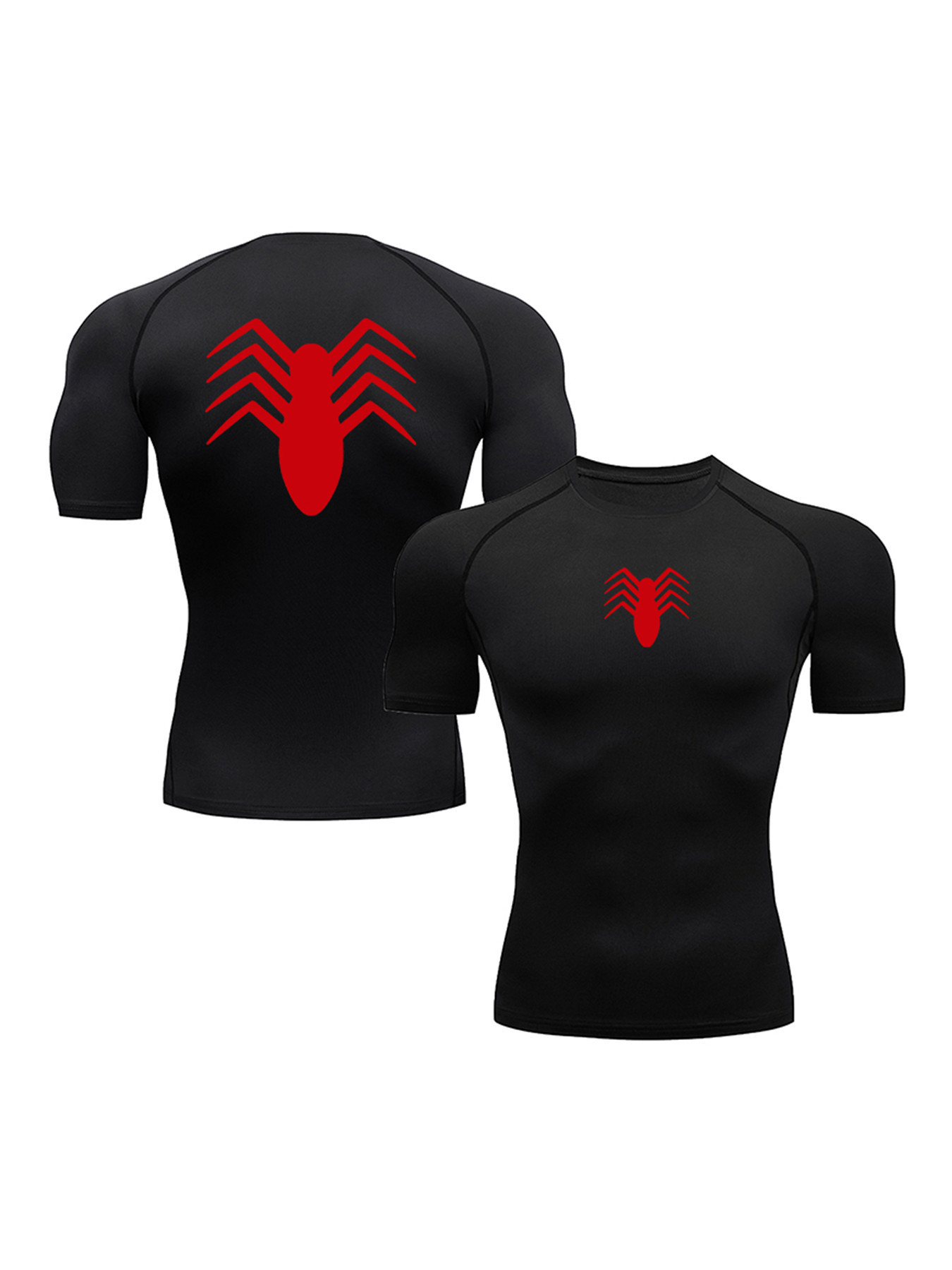 남자의 새로운 스포츠 짧은 소매 피트니스 티셔츠, 달리기 티셔츠, 타이트한 최고 남자 스파이더 맨 인쇄 그림