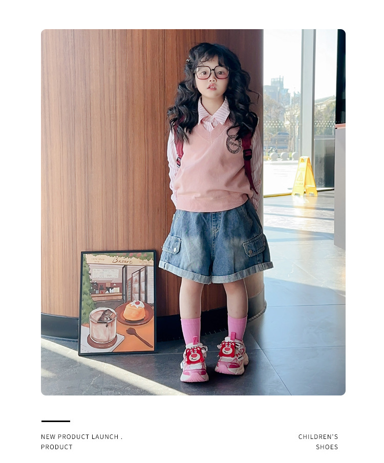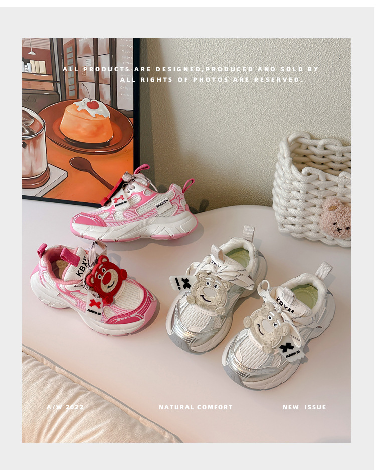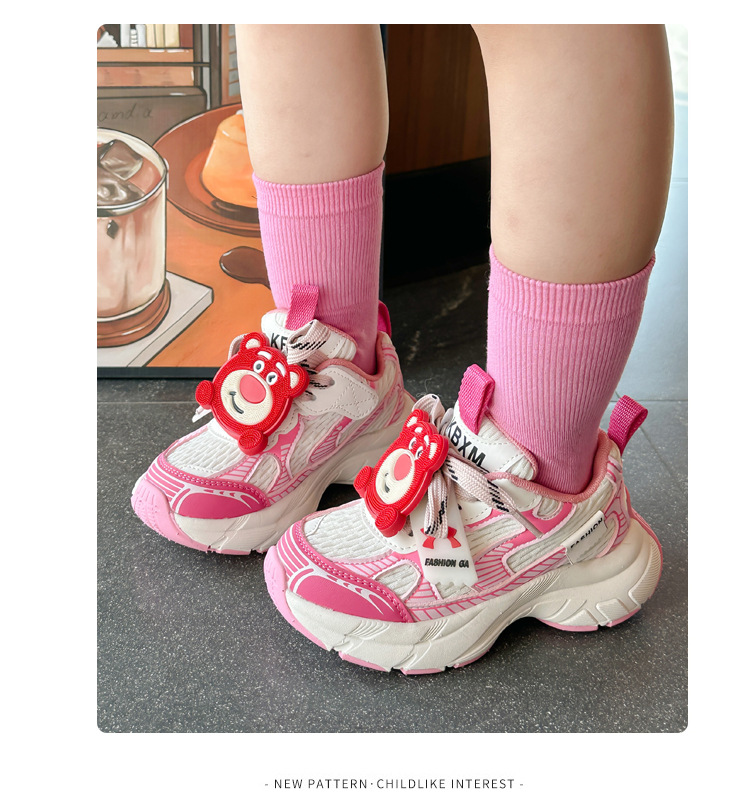 어린이 딸기 곰 운동화 소녀 도파민 토레 신발 2025 봄과 가을 새 소년 메쉬 운동화 조수